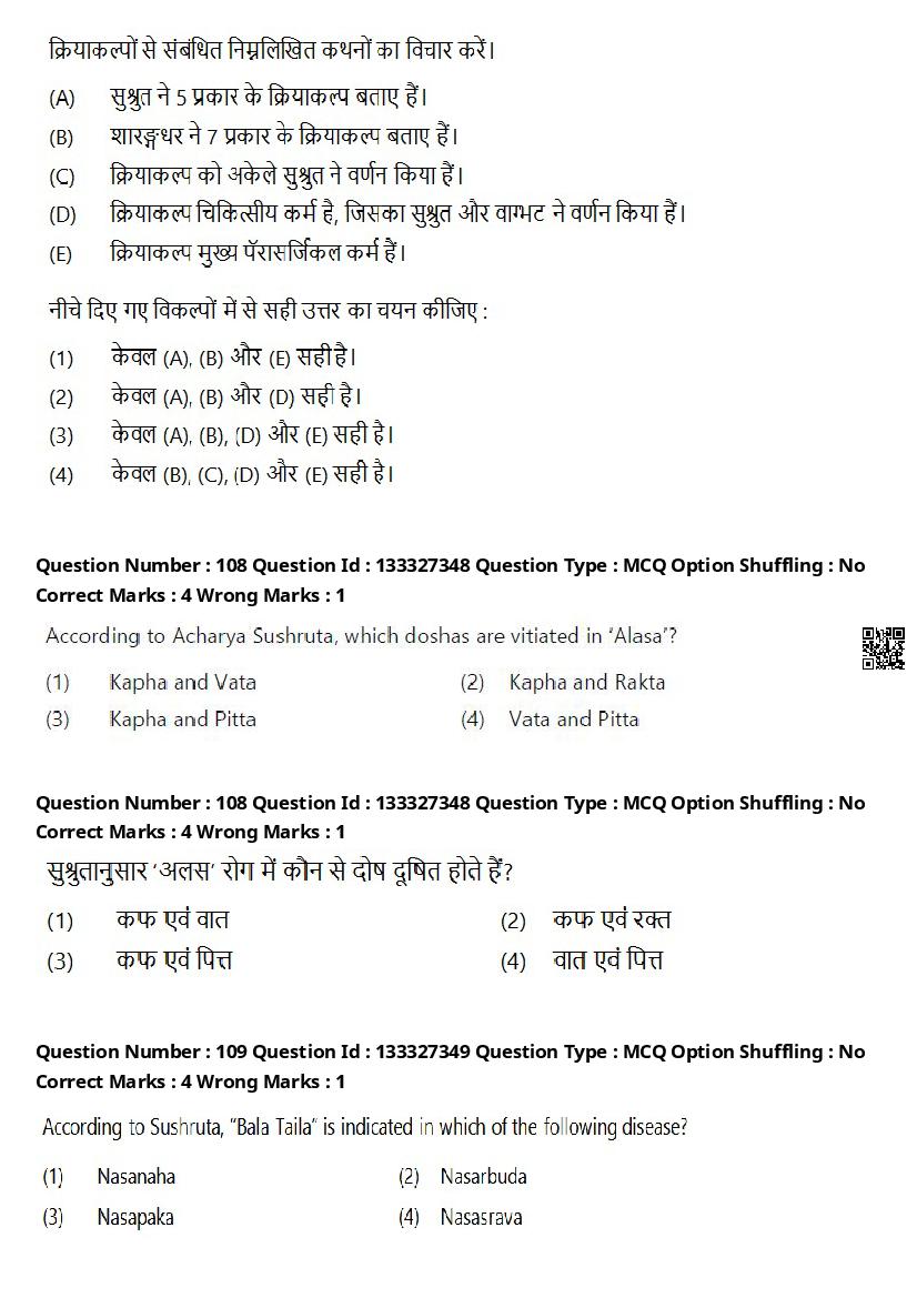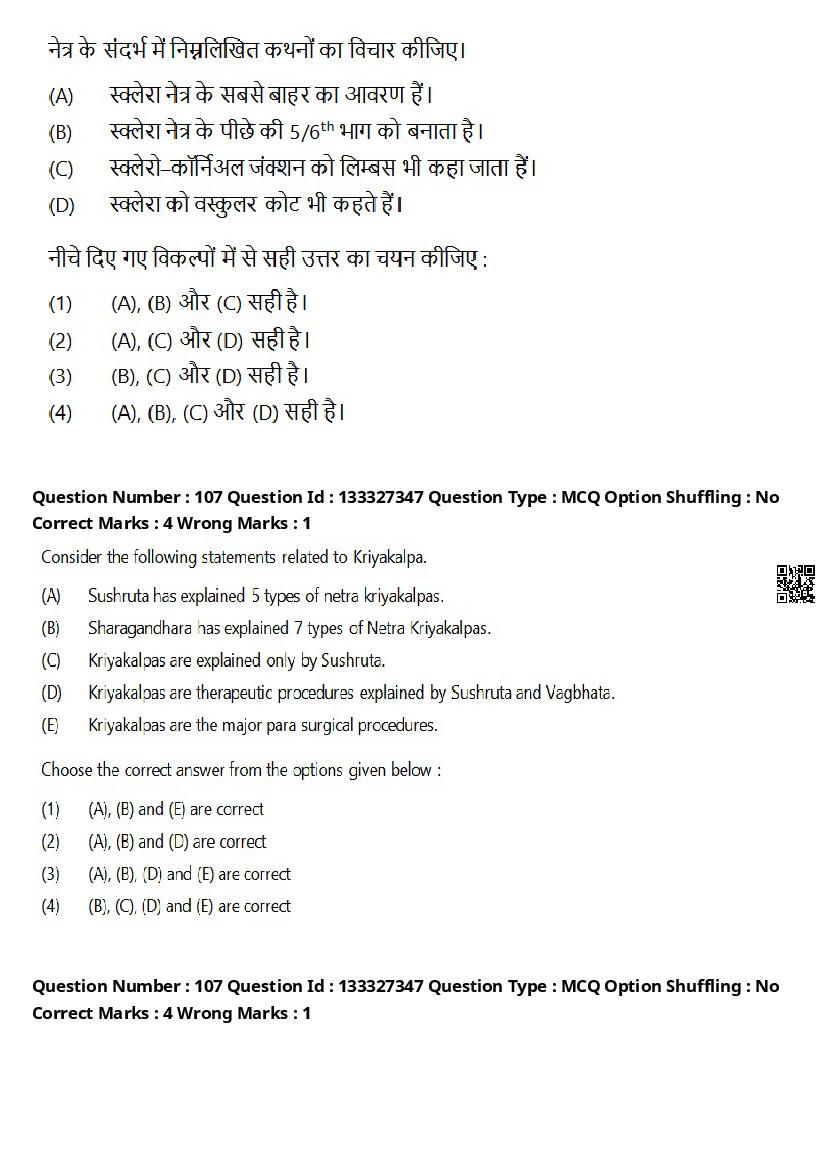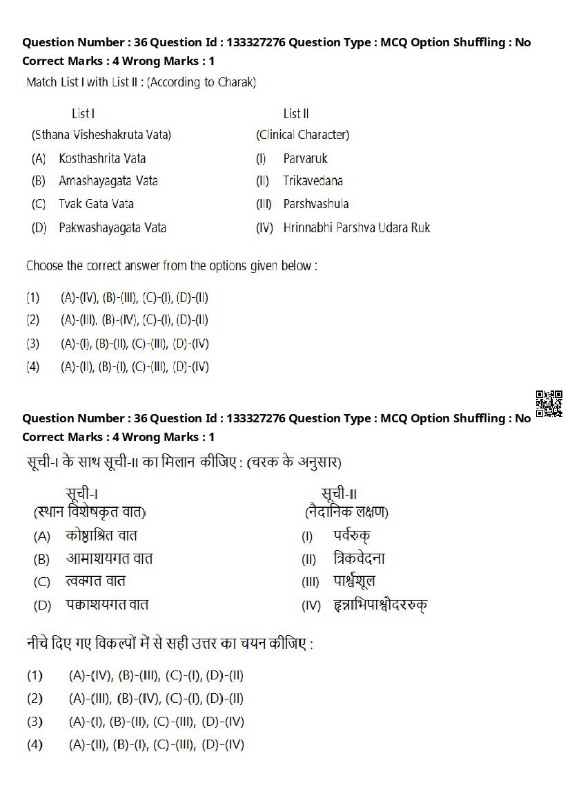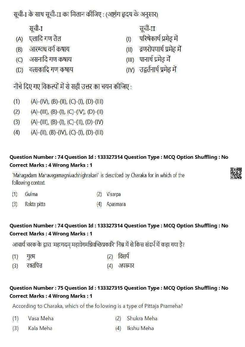 The key highlights of this All India Ayush Post Graduate Entrance Test (AIAPGET) 2024 question papers are as follows.
