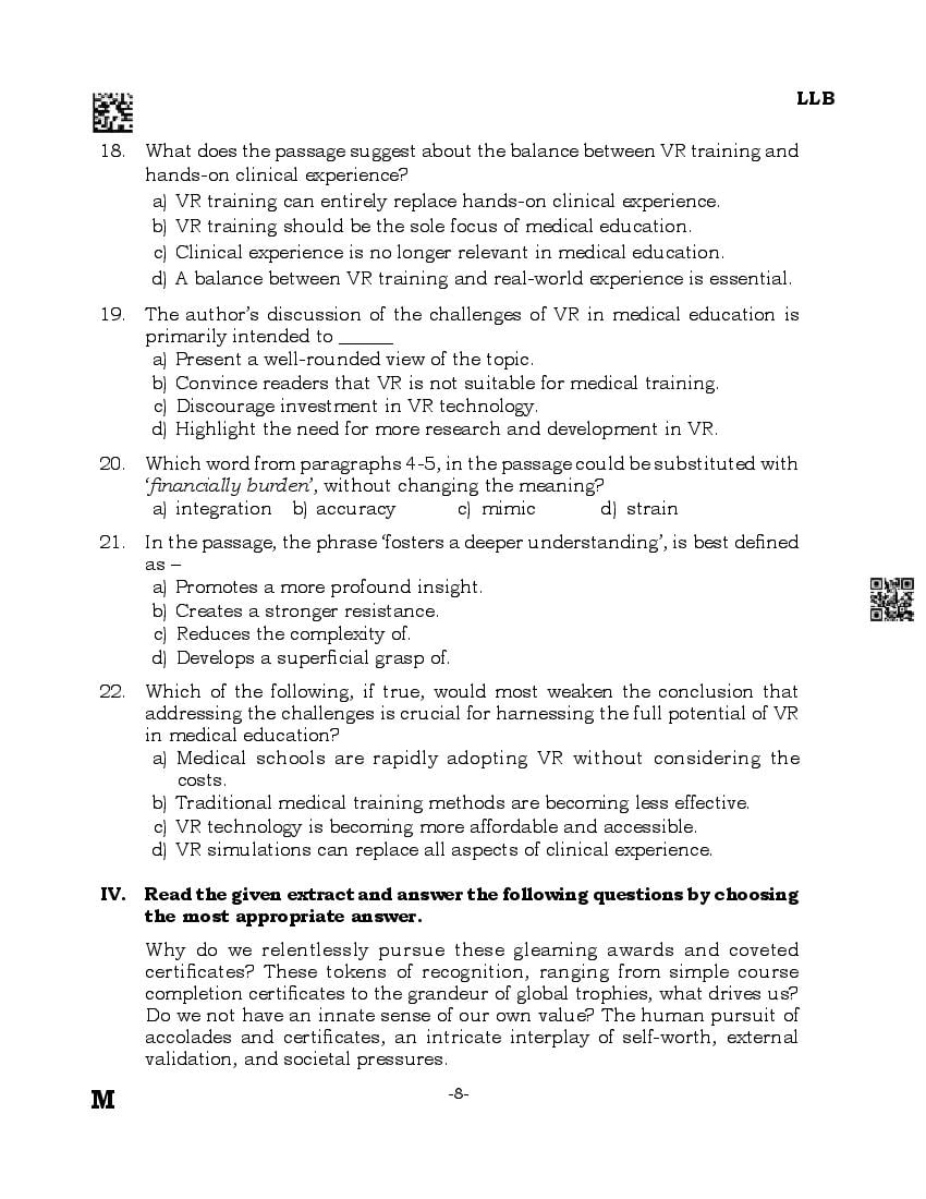Ans. If you appeared in AILET 2024, then the question paper helps you match answers with answer key to calculate marks and predict rank. Otherwise it helps you prepare for next All India Law Entrance Test.