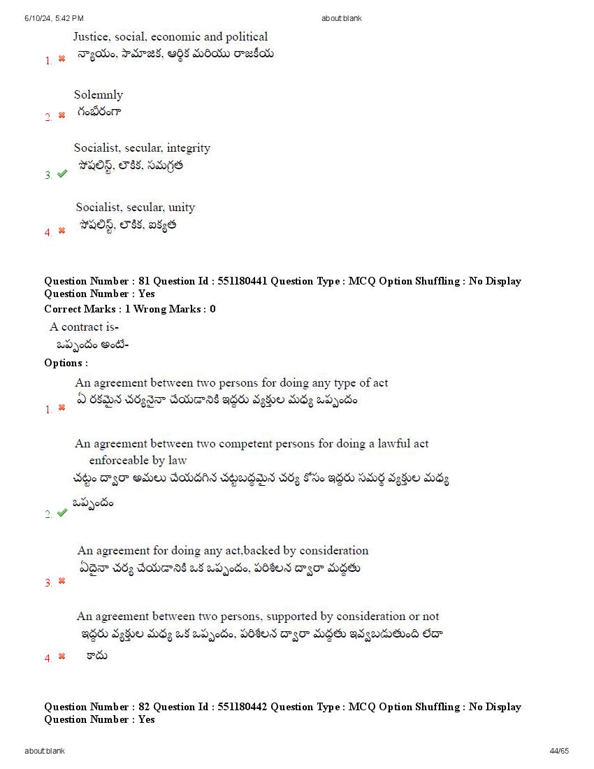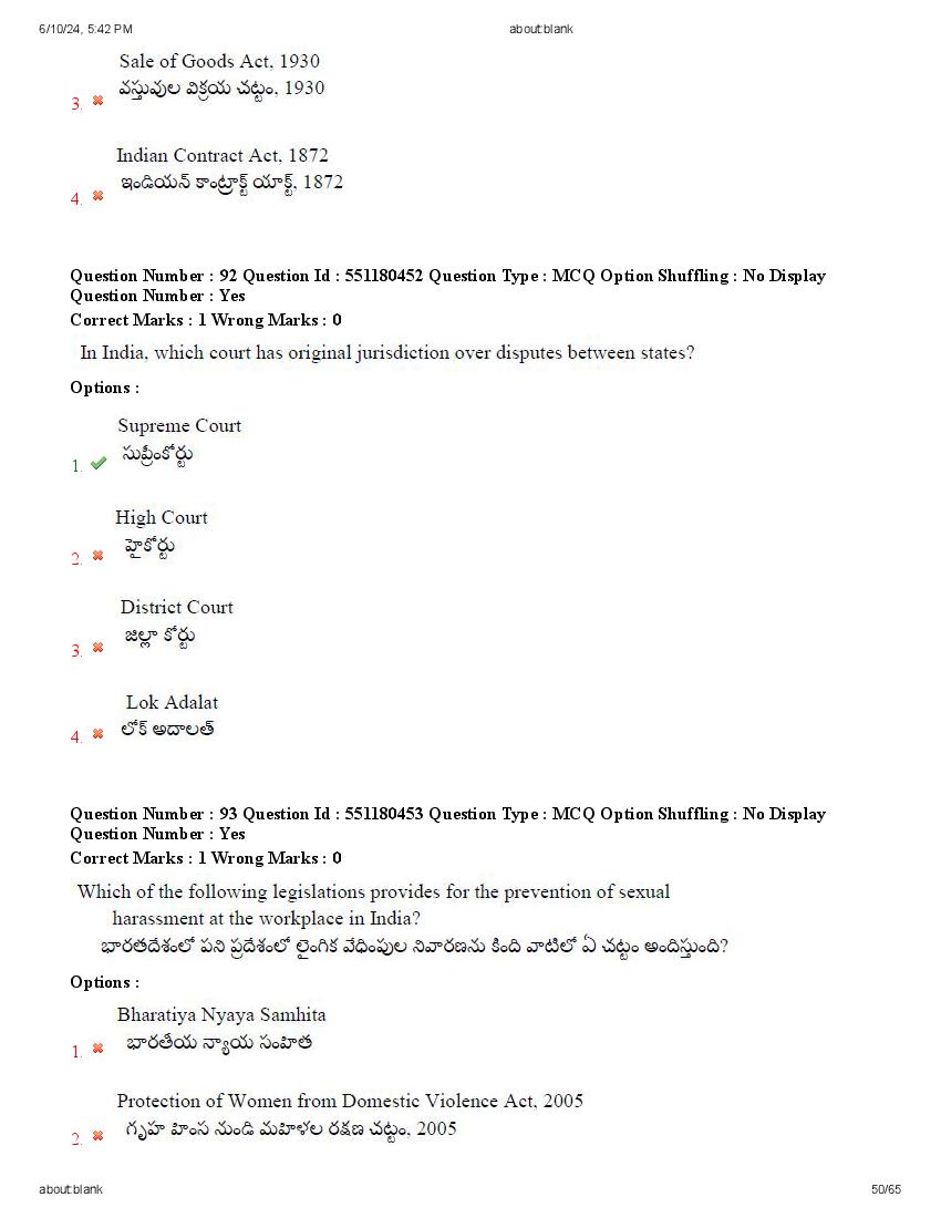 The question paper of AP LAWCET 2024 is as follows. Andhra Pradesh Law Common Entrance Test (AP LAWCET) is the State level Law entrance exam for admission to 3 Year LLB, 5 Year LL.B. Courses in State Universities, their Departments or Constituent Colleges and Affiliated Colleges in the State of Andhra Pradesh.