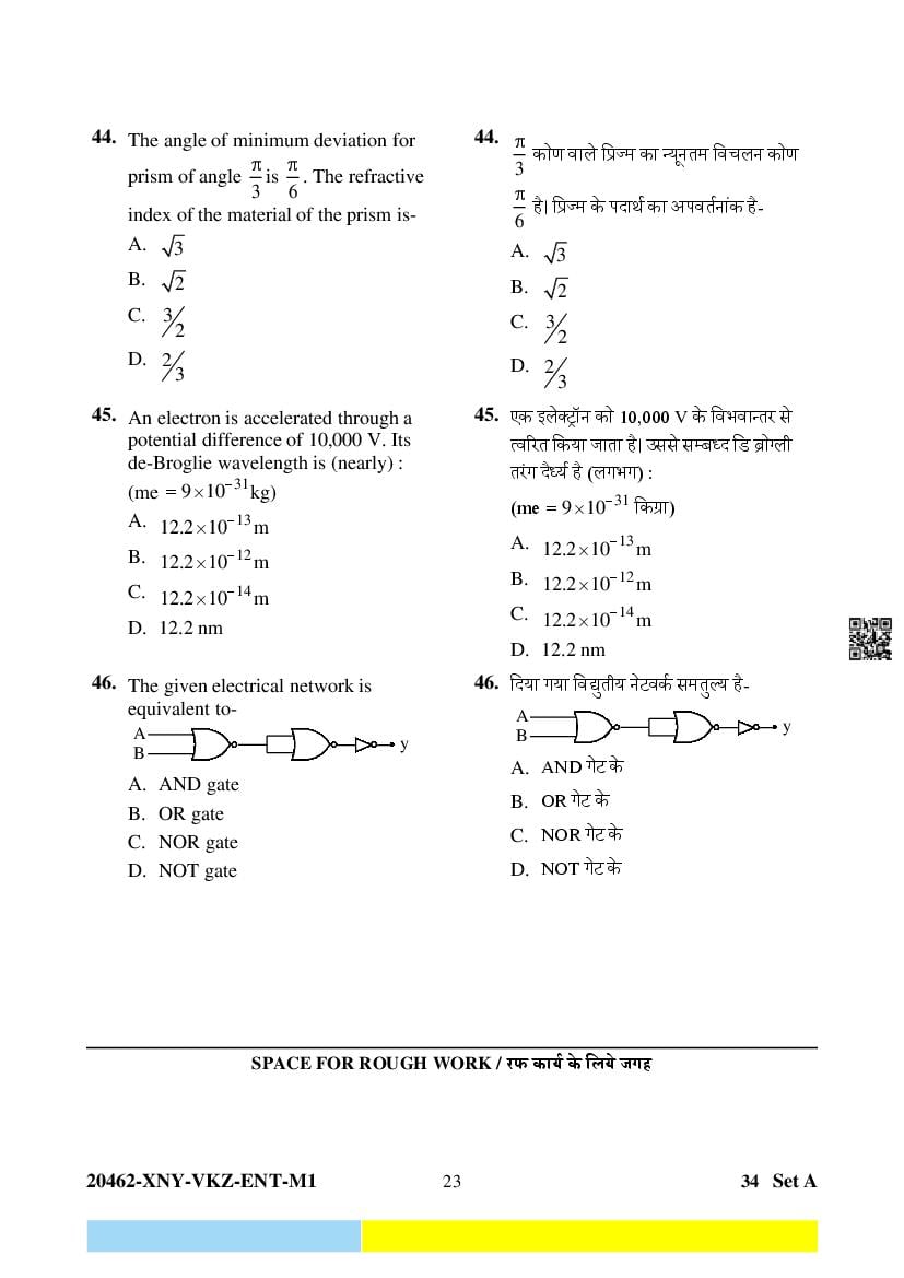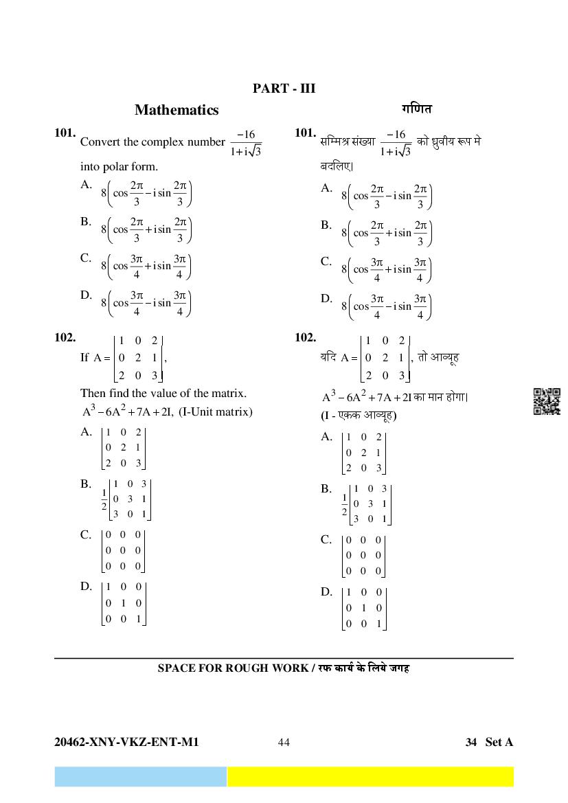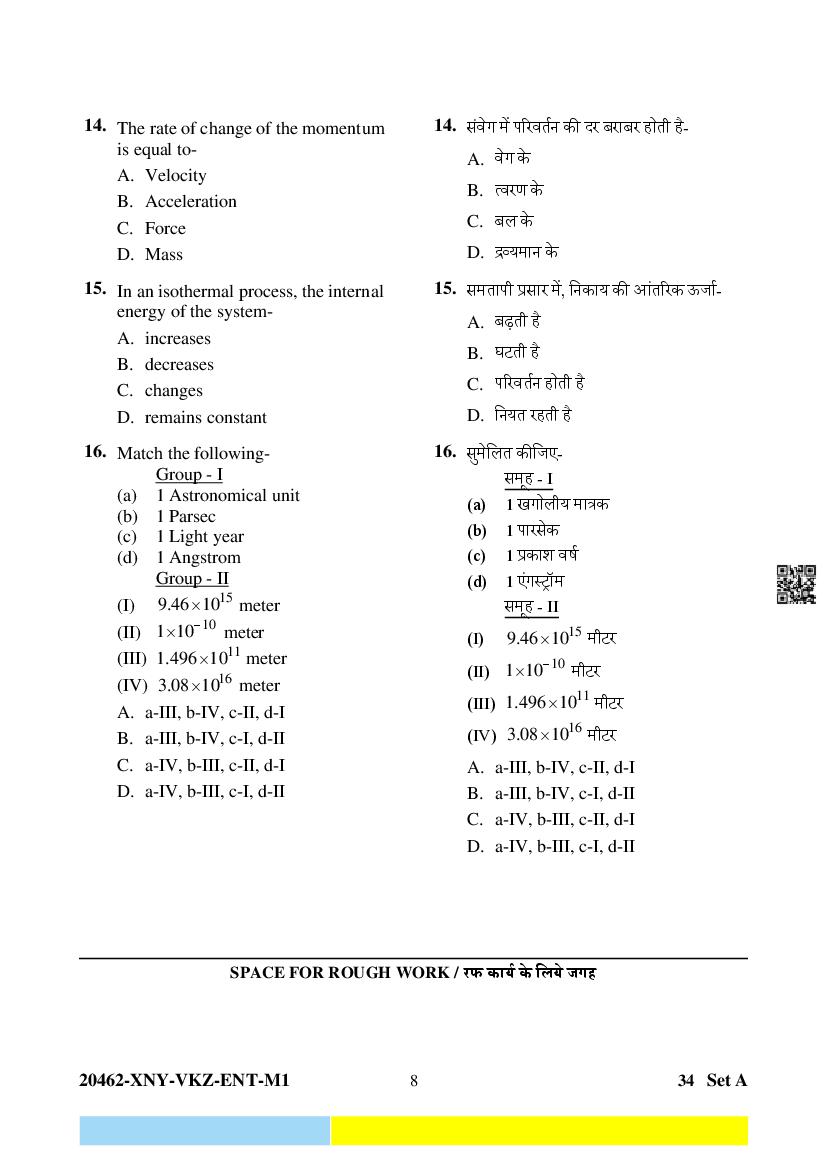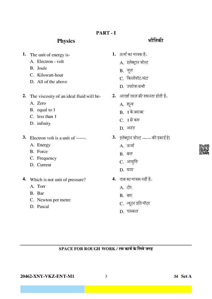 The question paper of CG PET 2024 is as follows. Chhattisgarh Pre Engineering Test (CG PET) is the State level Engineering entrance exam for admission to BE, B.Tech, B.Tech Agriculture Engineering, B.Tech Food Tech, B.Tech Dairy Technology, Diploma in Dairy Technology in Various colleges in Chhattisgarh.