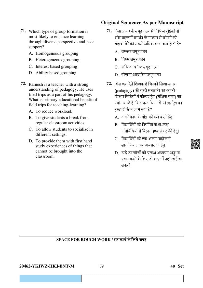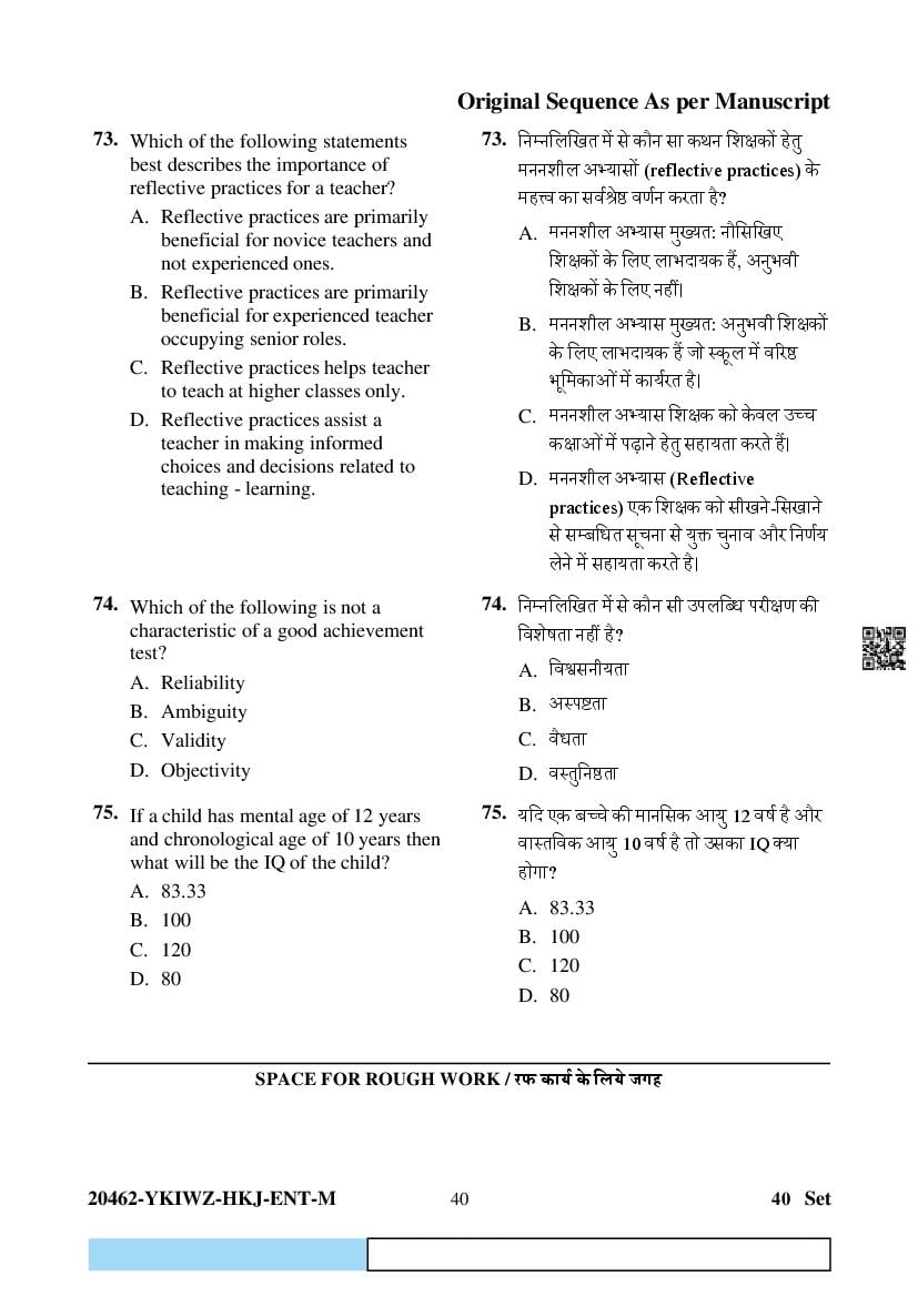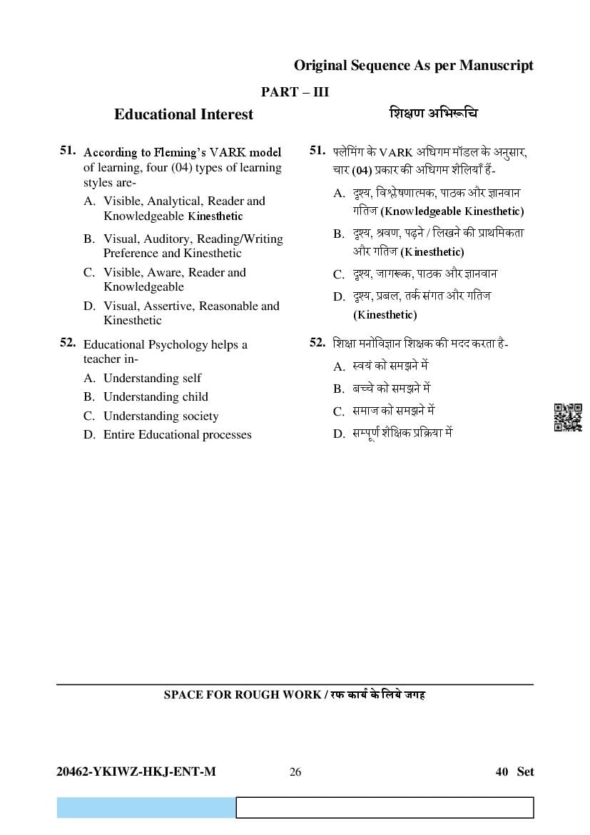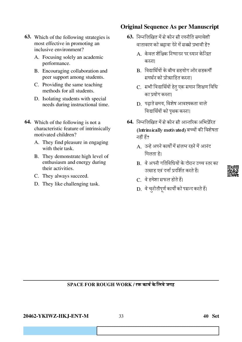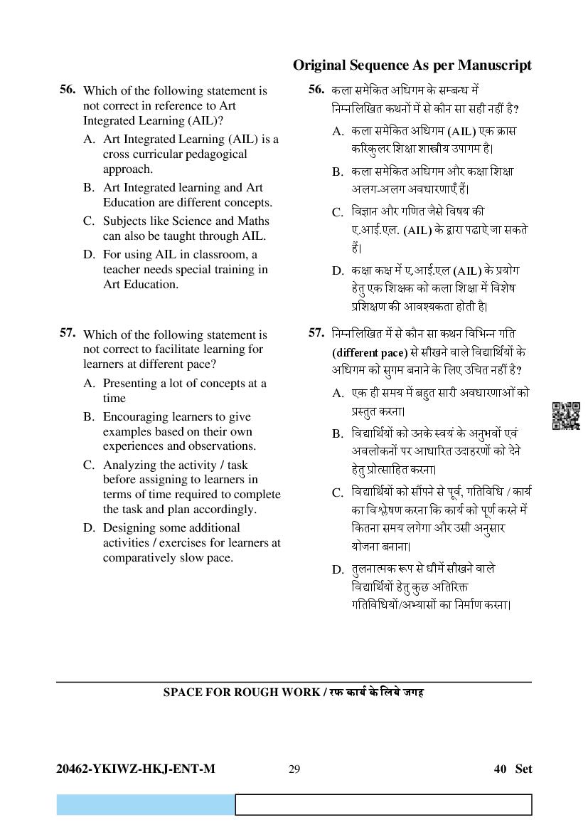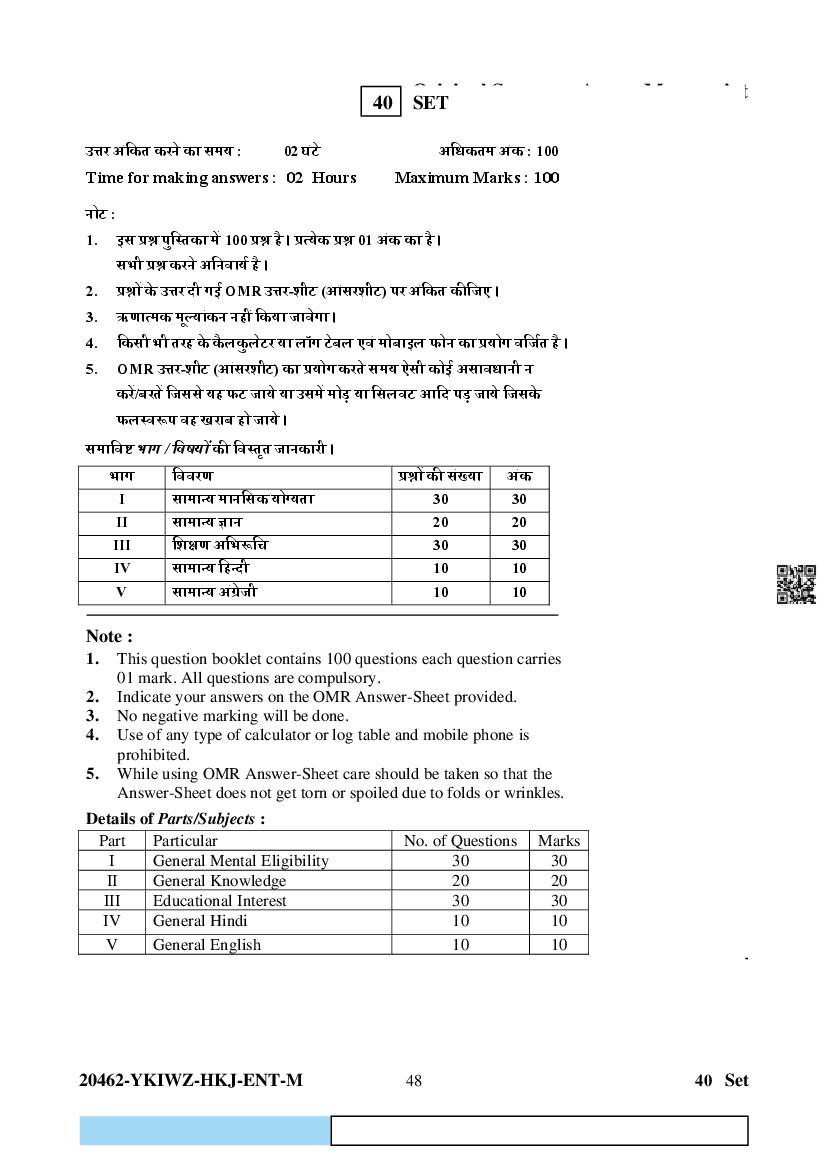The question paper of CG Pre B.Ed 2024 is as follows. Chhattisgarh Bachelor in Education Entrance Exam (CG Pre B.Ed) is the State level Education entrance exam for admission to B.Ed in Government and Private colleges of Chhattisgarh which run B.Ed cuorse.
