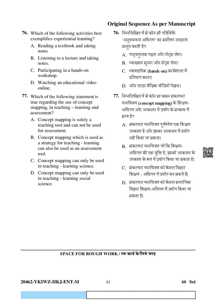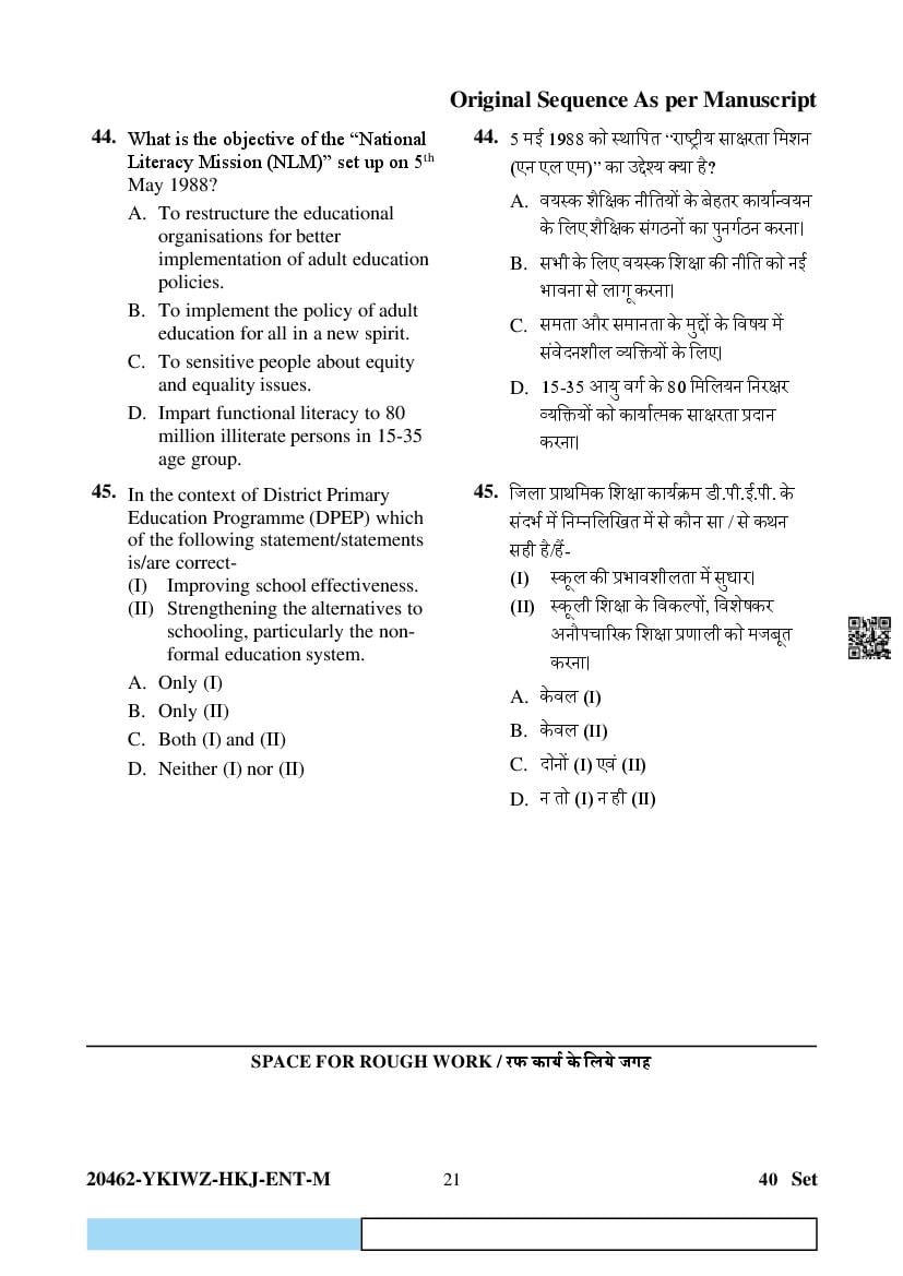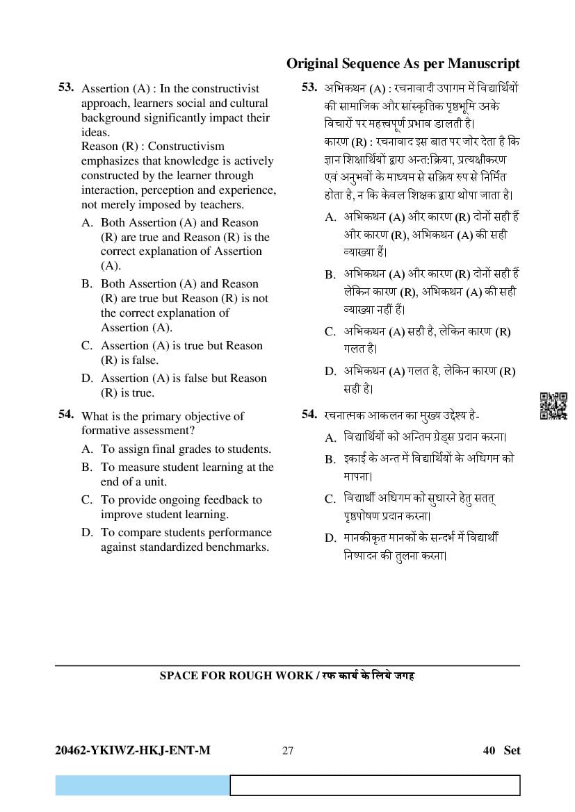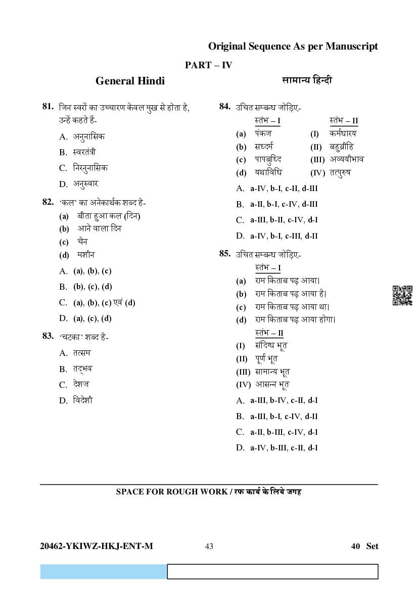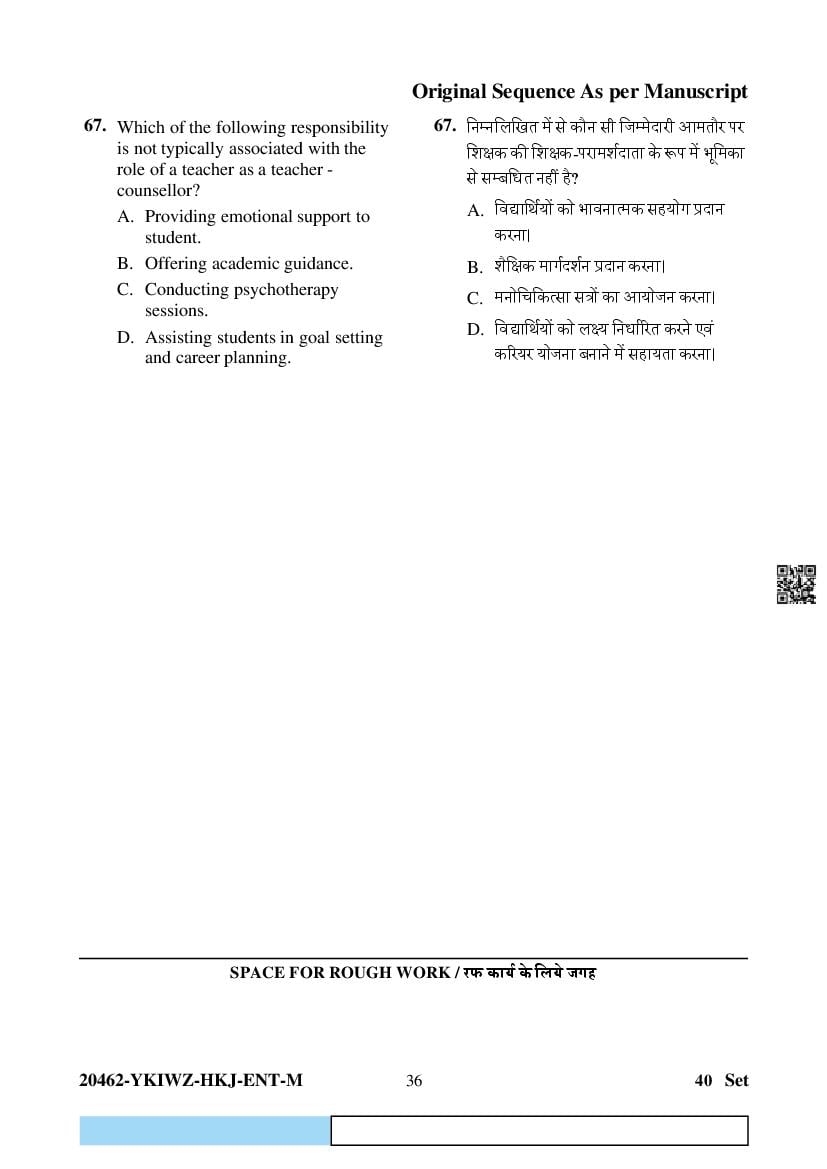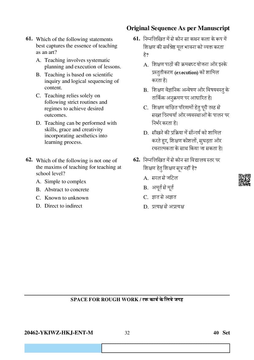 The question paper of CG Pre B.Ed 2024 is as follows. Chhattisgarh Bachelor in Education Entrance Exam (CG Pre B.Ed) is the State level Education entrance exam for admission to B.Ed in Government and Private colleges of Chhattisgarh which run B.Ed cuorse.