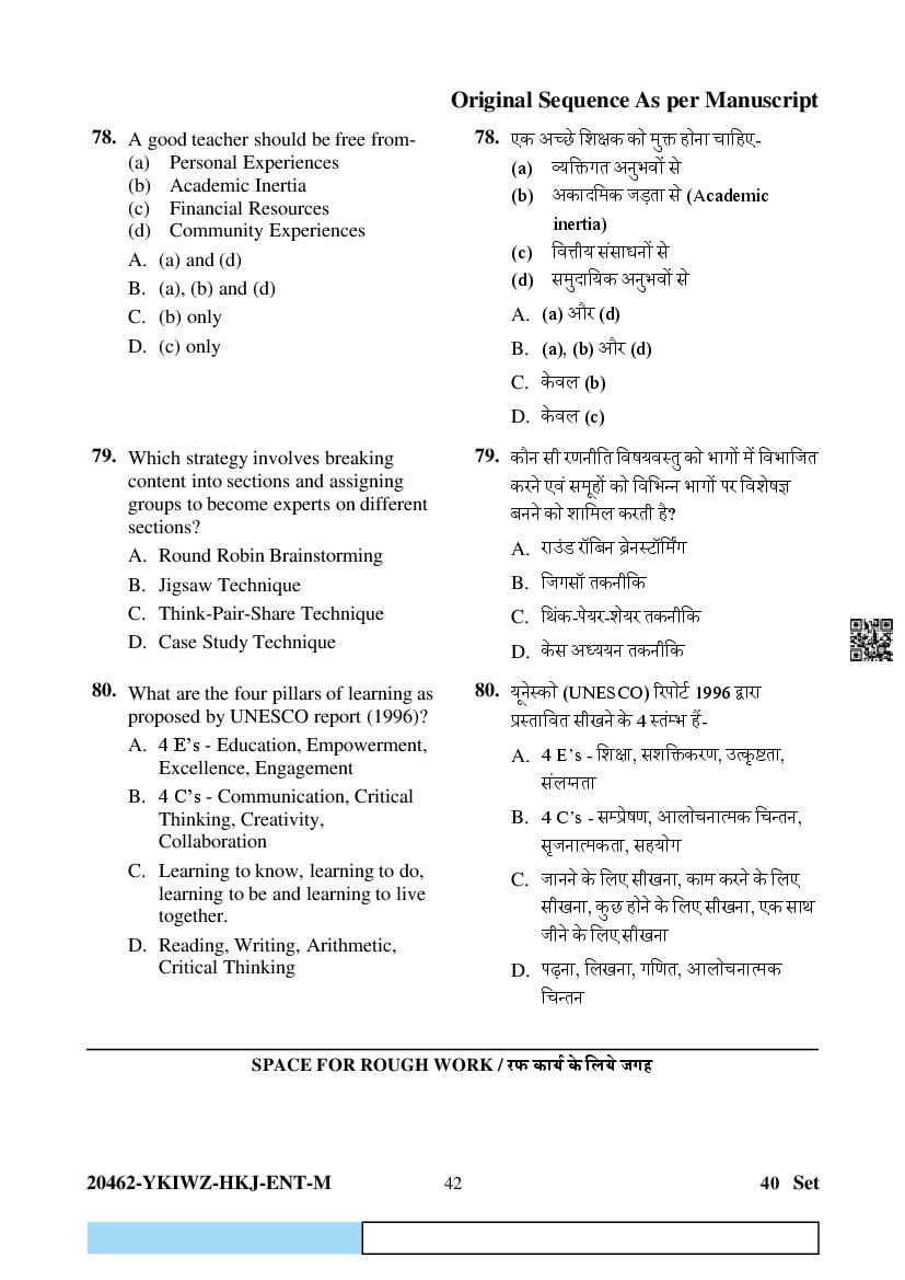 The key highlights of this Chhattisgarh Bachelor in Education Entrance Exam (CG Pre B.Ed) 2024 question papers are as follows.