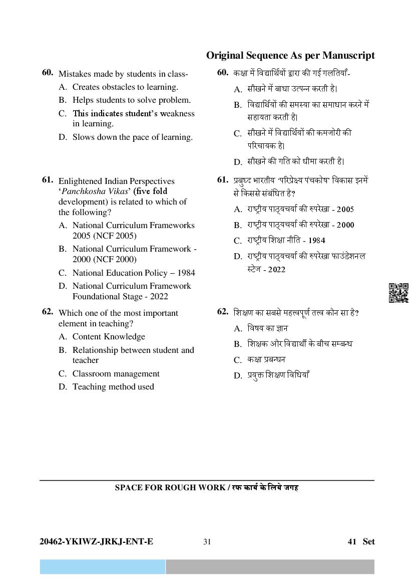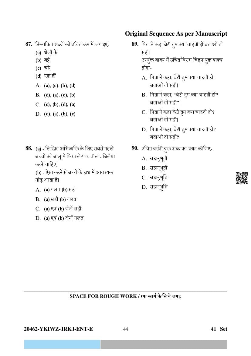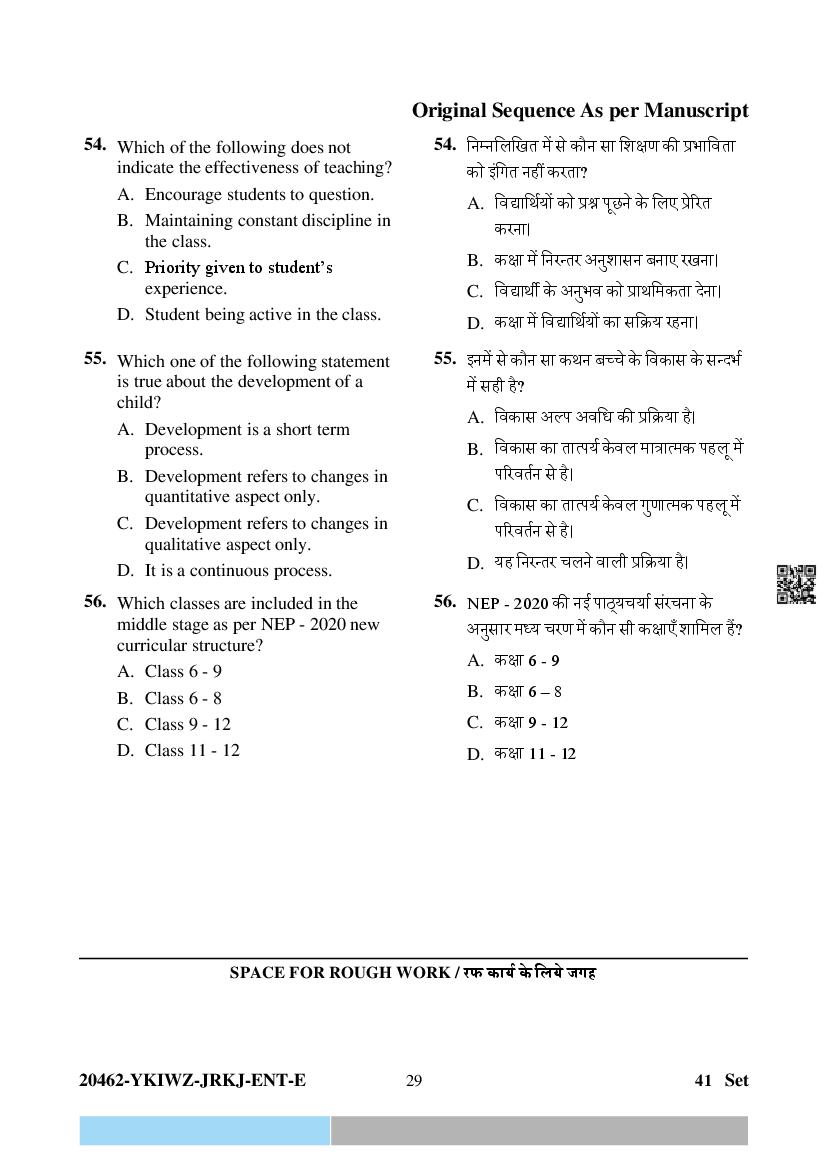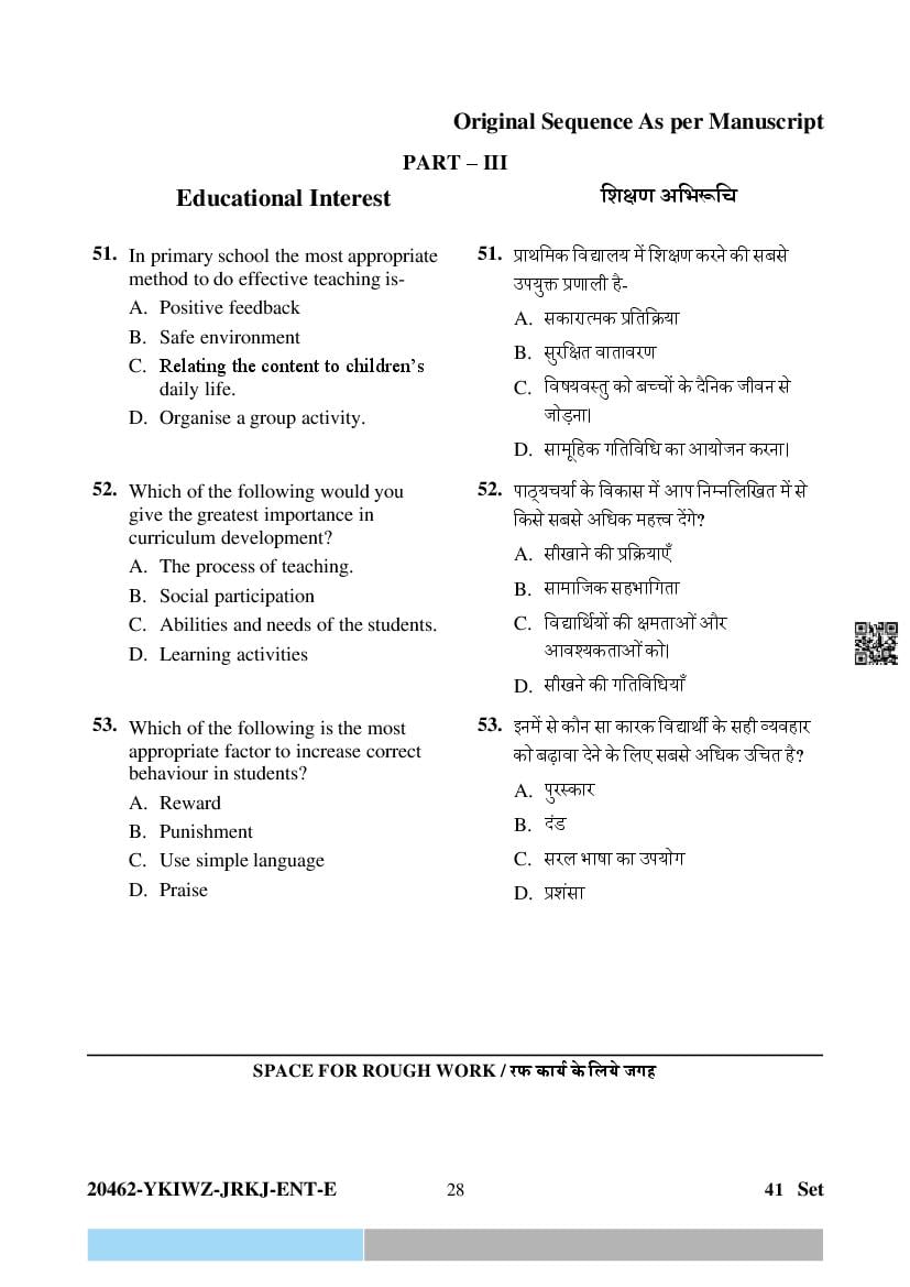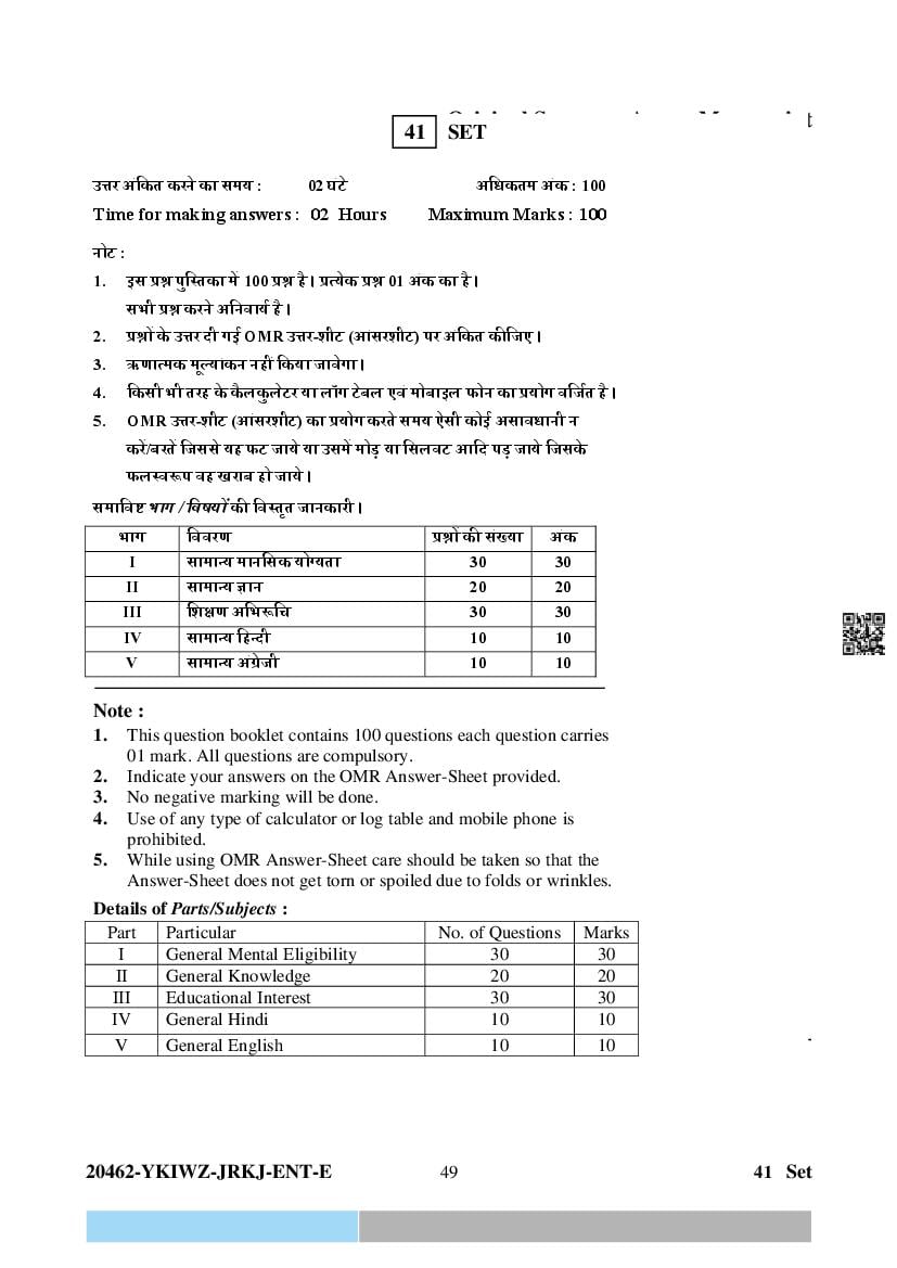 The question paper of CG Pre D.El.Ed 2024 is as follows. Chhattisgarh Diploma in Elementary Education Entrance Exam (CG Pre D.El.Ed) is the State level Education entrance exam for admission to D.El.Ed in Government and Private colleges of Chhattisgarh which run D.El.Ed cuorse.