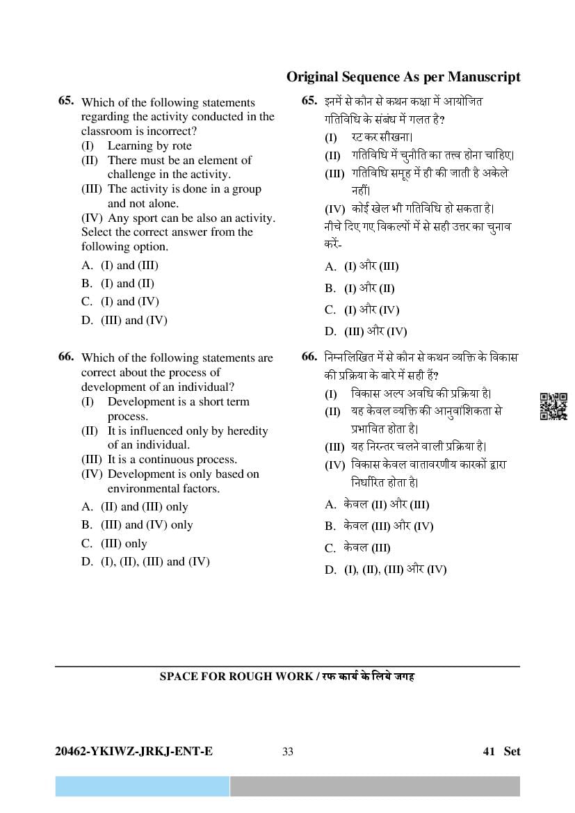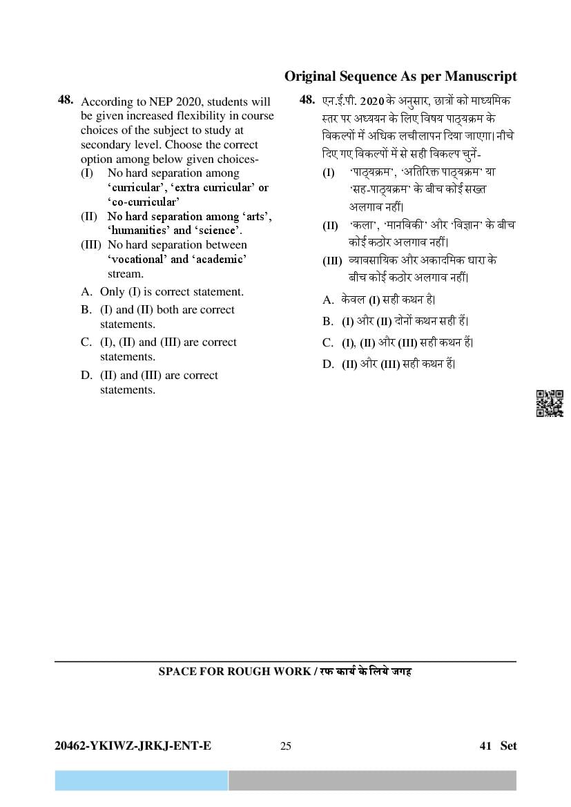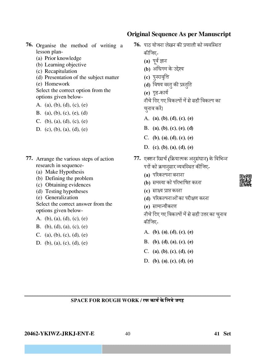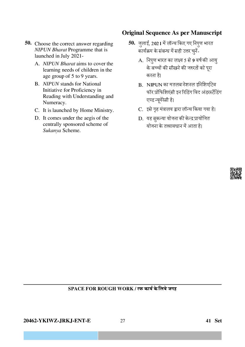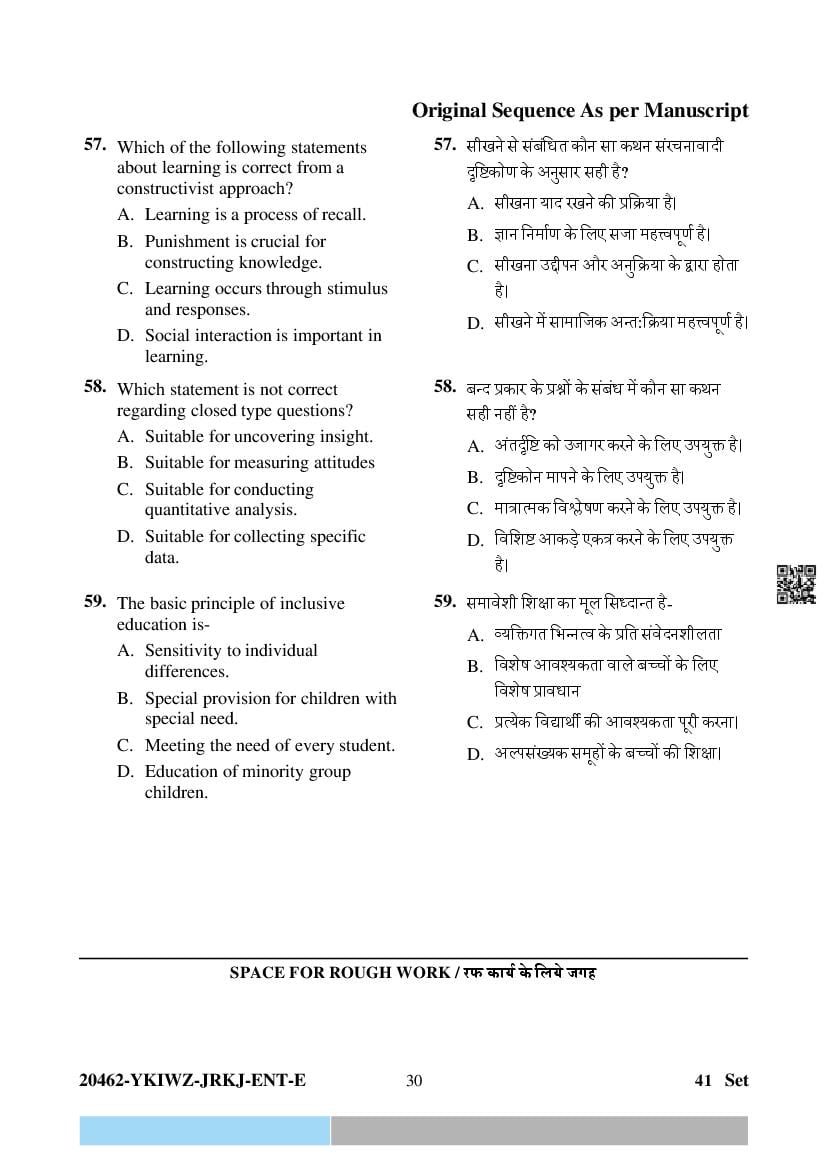 The question paper of CG Pre D.El.Ed 2024 is as follows. Chhattisgarh Diploma in Elementary Education Entrance Exam (CG Pre D.El.Ed) is the State level Education entrance exam for admission to D.El.Ed in Government and Private colleges of Chhattisgarh which run D.El.Ed cuorse.