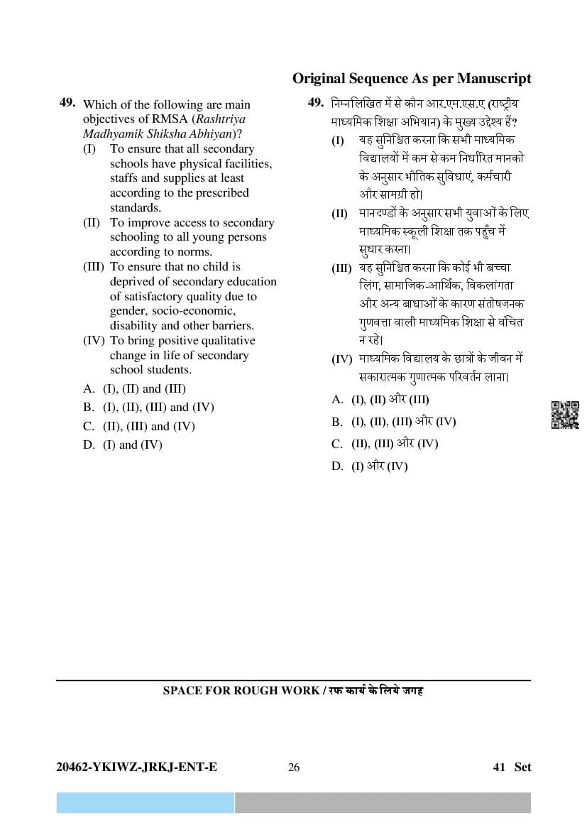 The key highlights of this Chhattisgarh Diploma in Elementary Education Entrance Exam (CG Pre D.El.Ed) 2024 question papers are as follows.