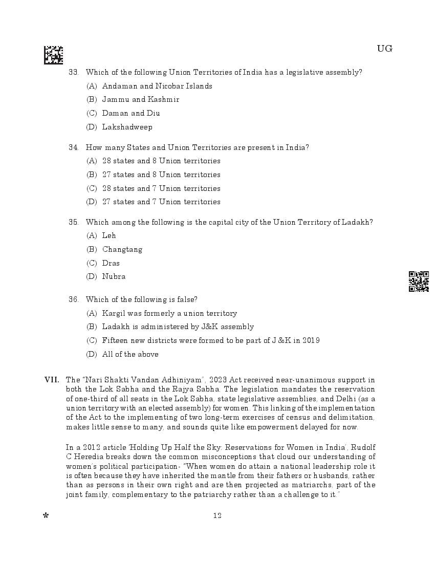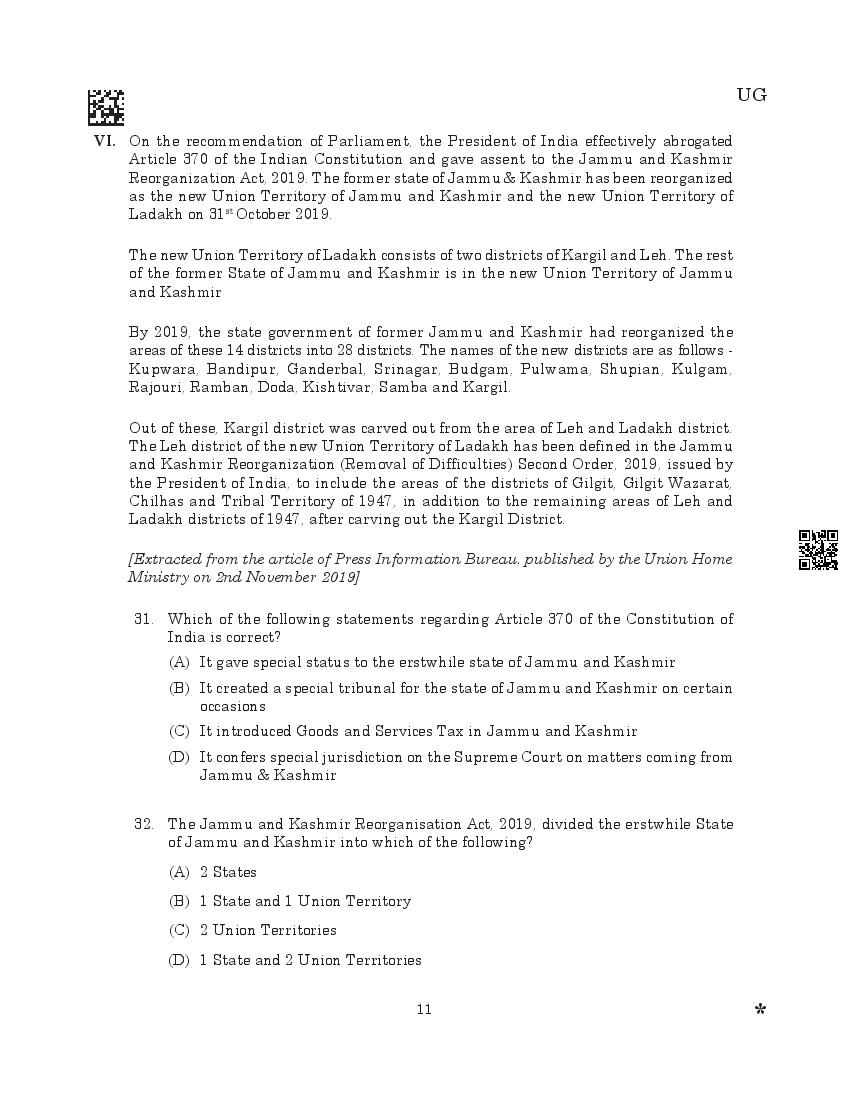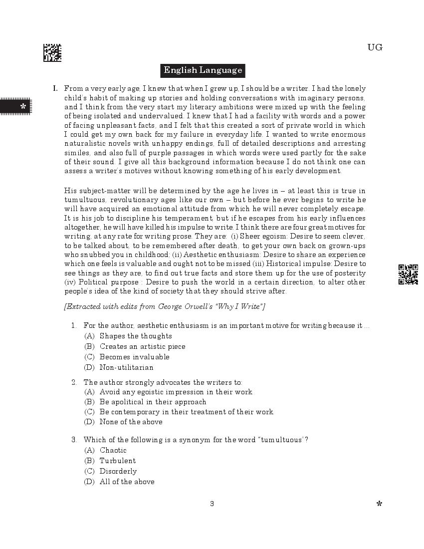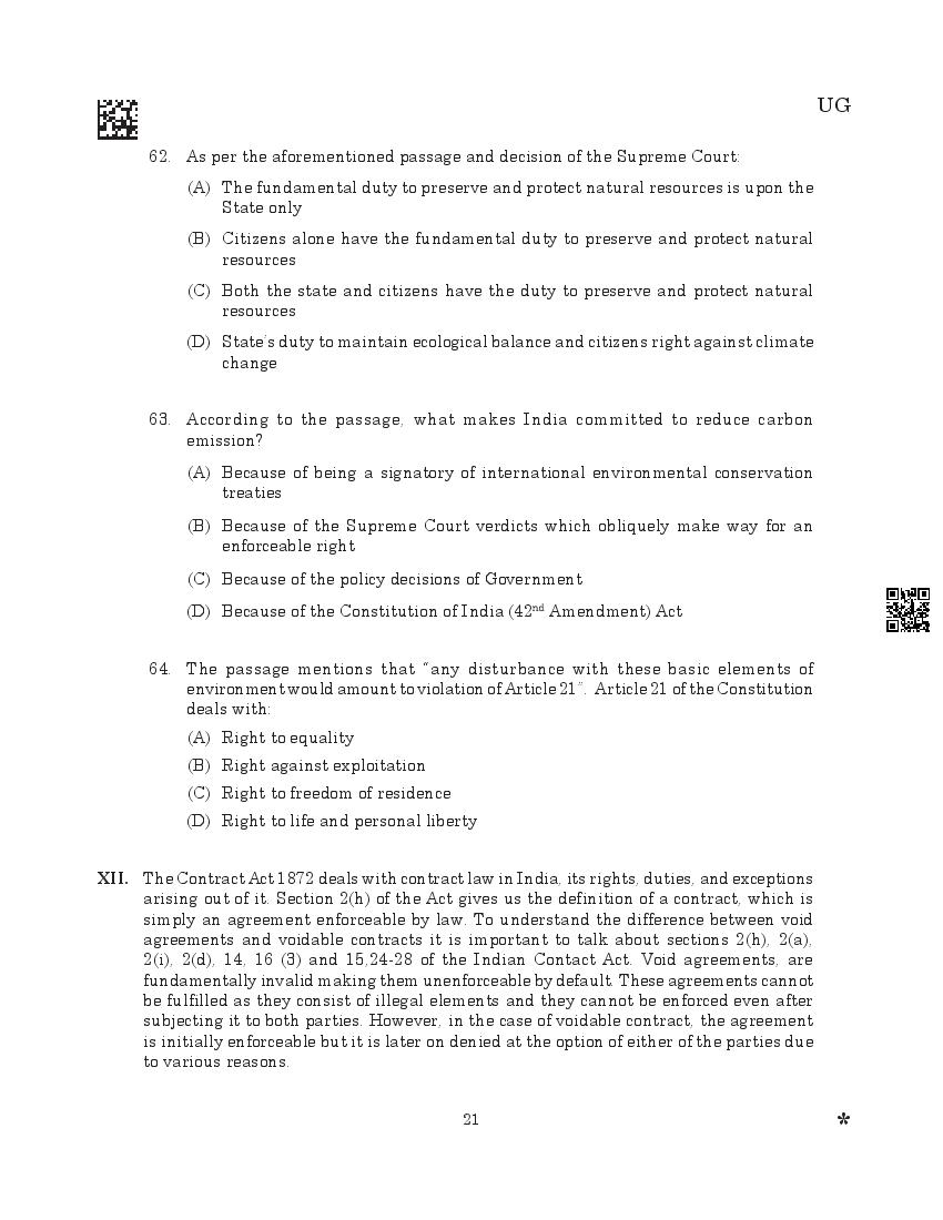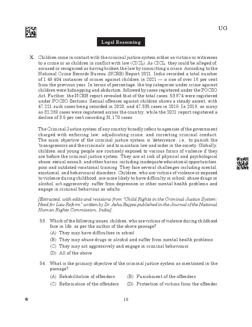 More Previous Year Question Papers for CLAT Undergraduate (BA LLB) are given below.