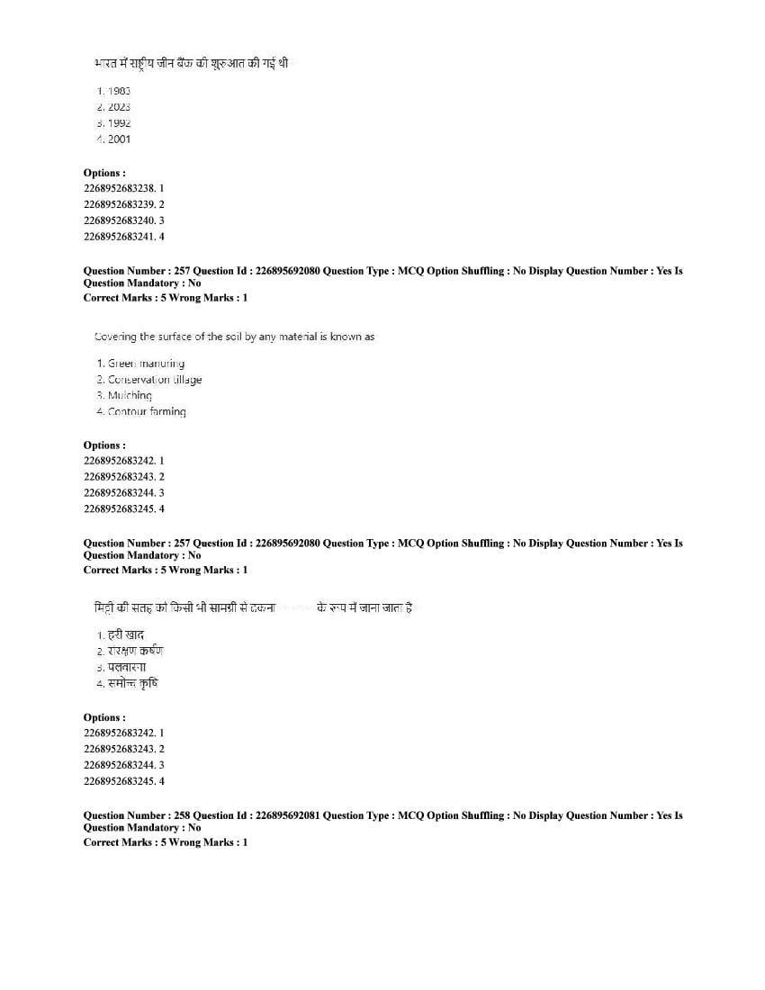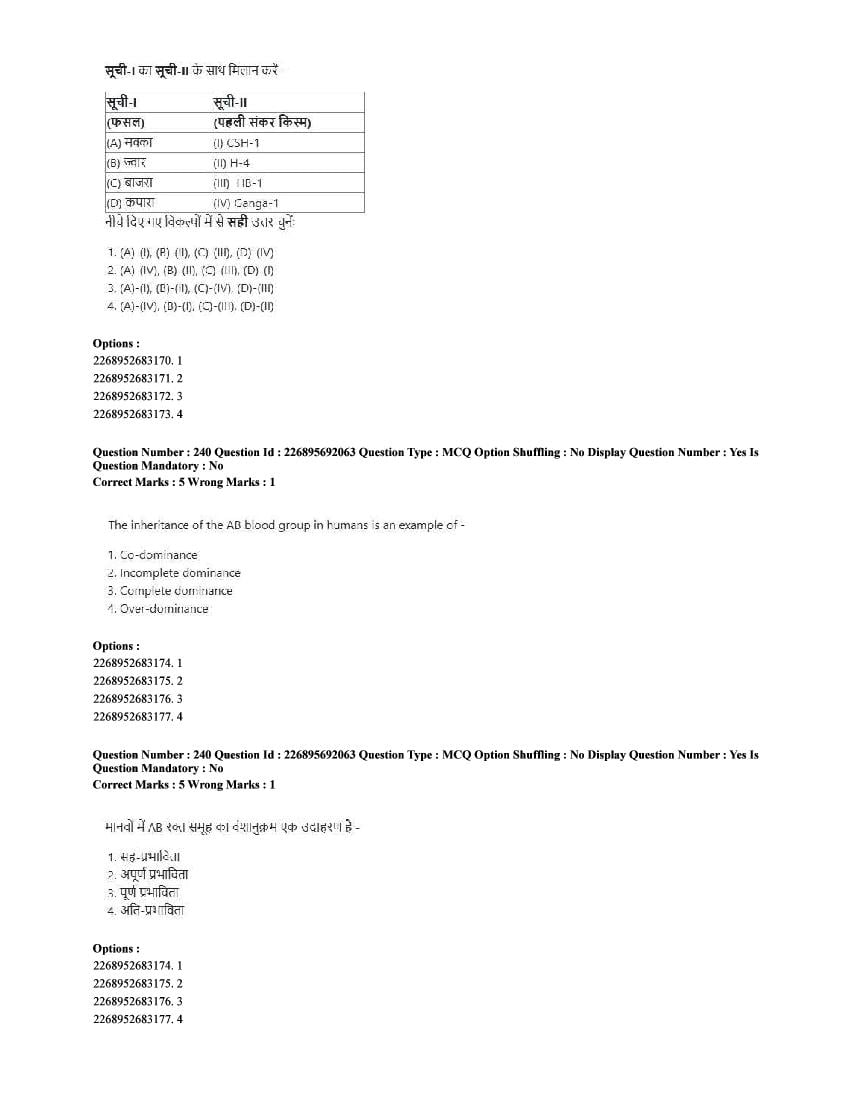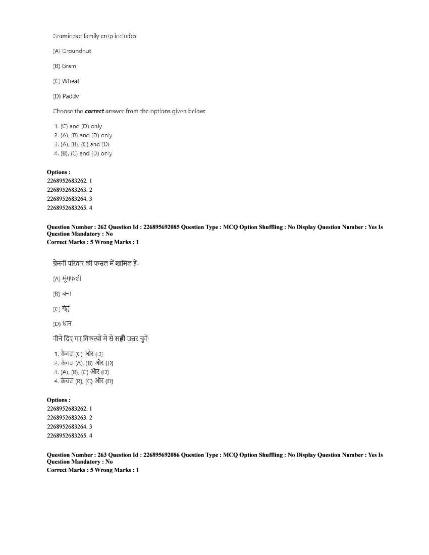 The CUET question paper of Agriculture subject held in 2025 and previous years are as follows.
