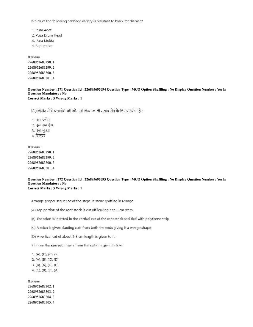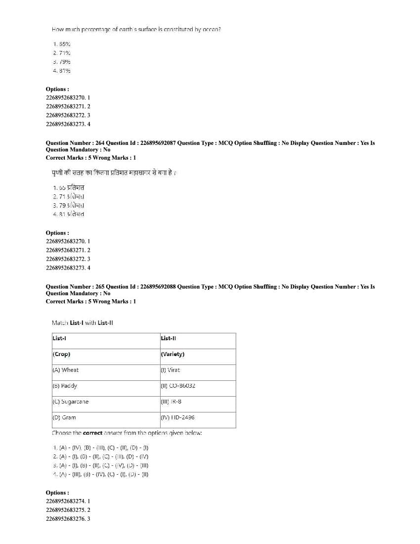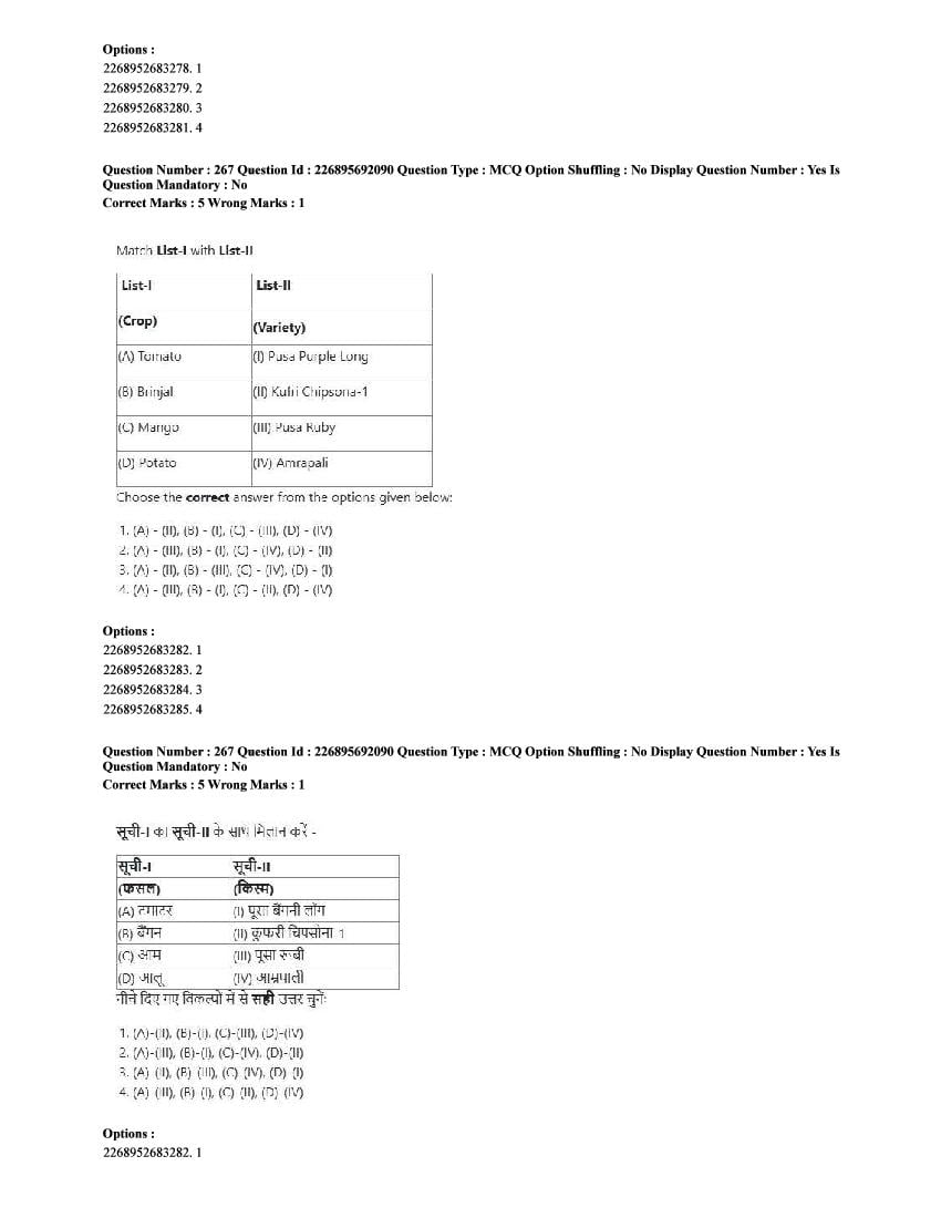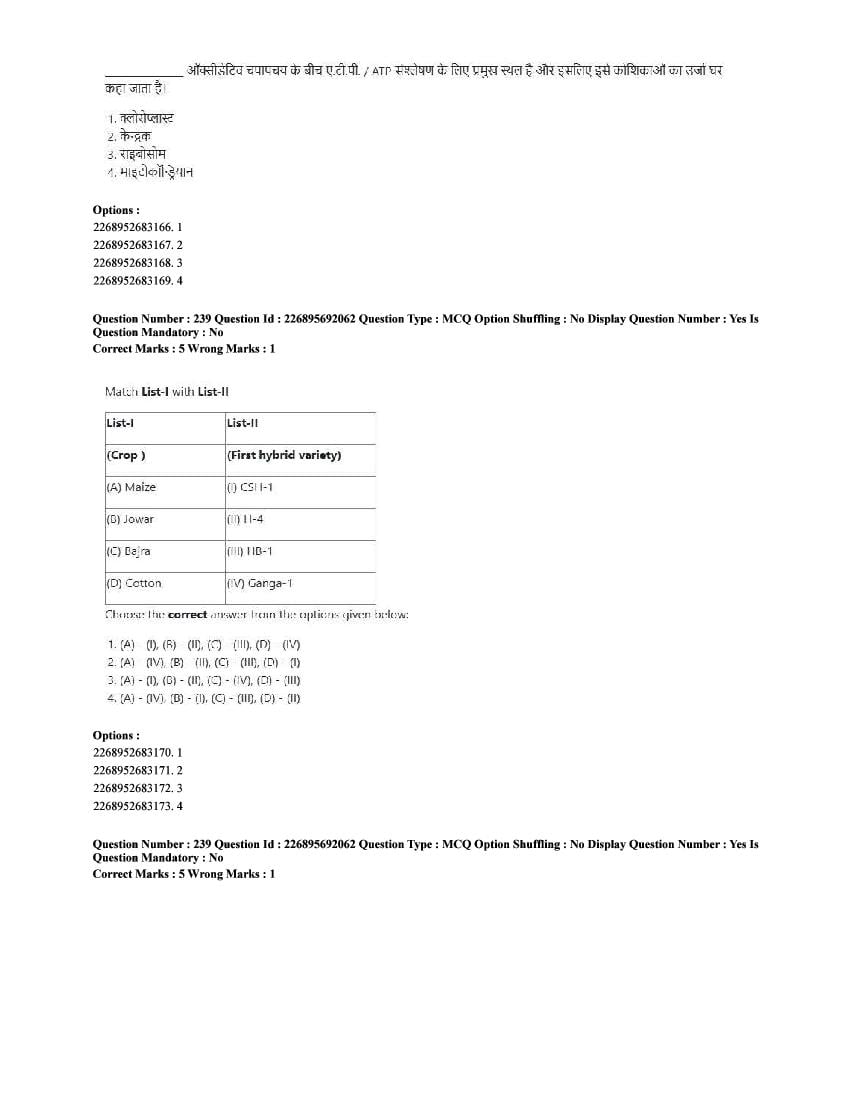 The CUET question paper of Agriculture subject held in 2025 and previous years are as follows.