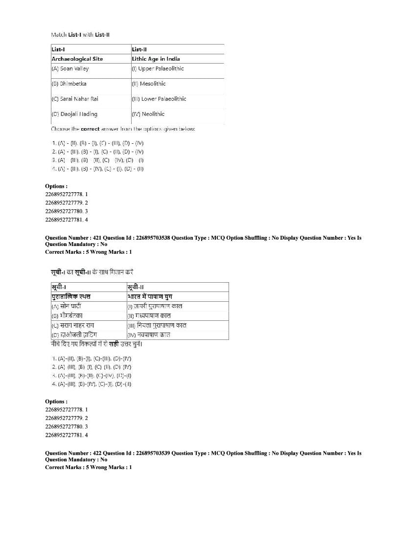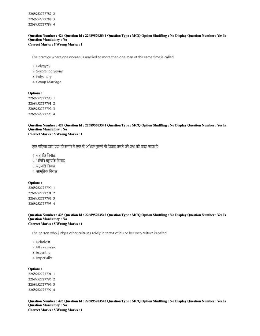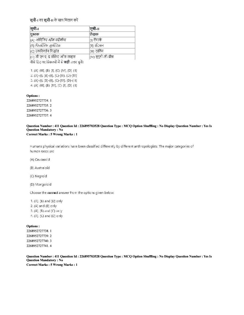 The CUET question paper of Anthropology subject held in 2025 and previous years are as follows.
