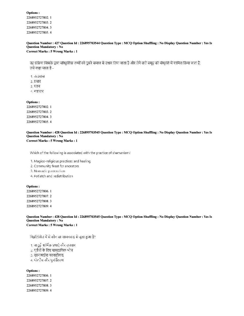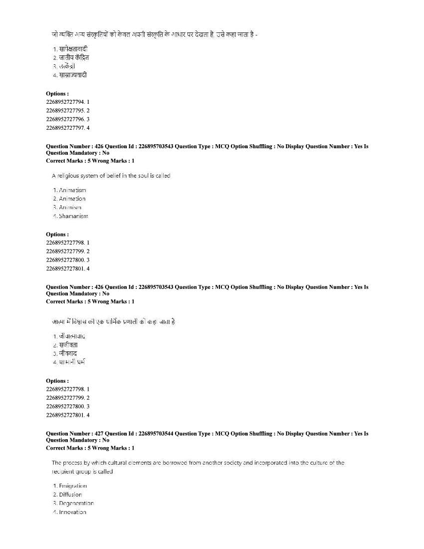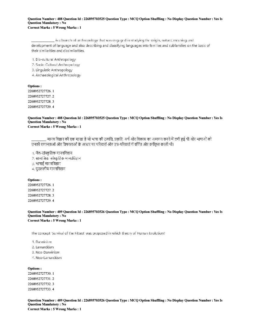 | Paper Here | CUET 2025 Question Paper of Anthropology |