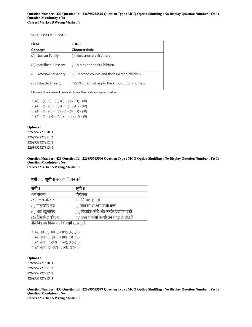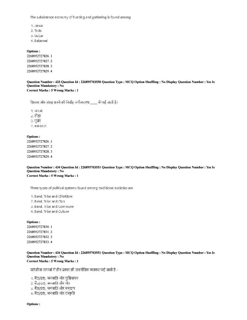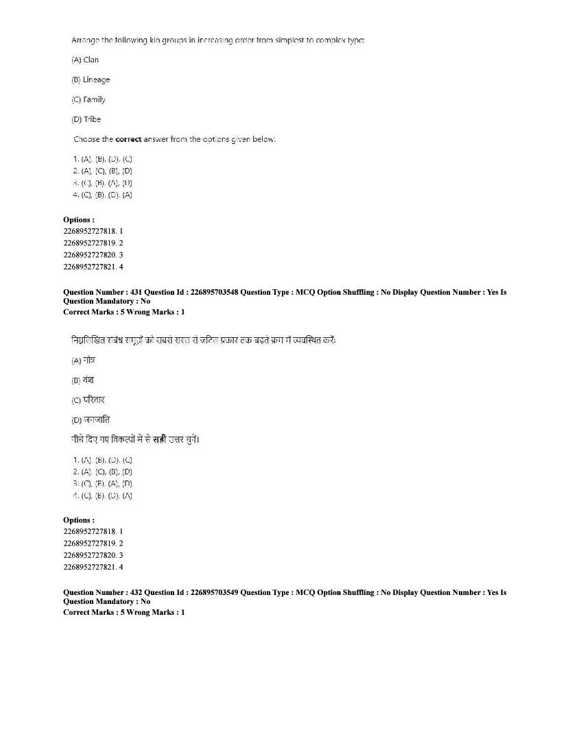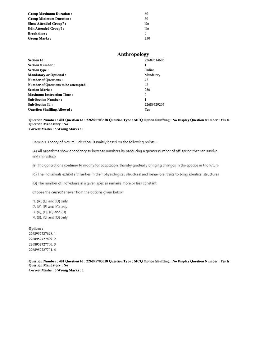 | Paper Here | CUET 2025 Question Paper of Anthropology |