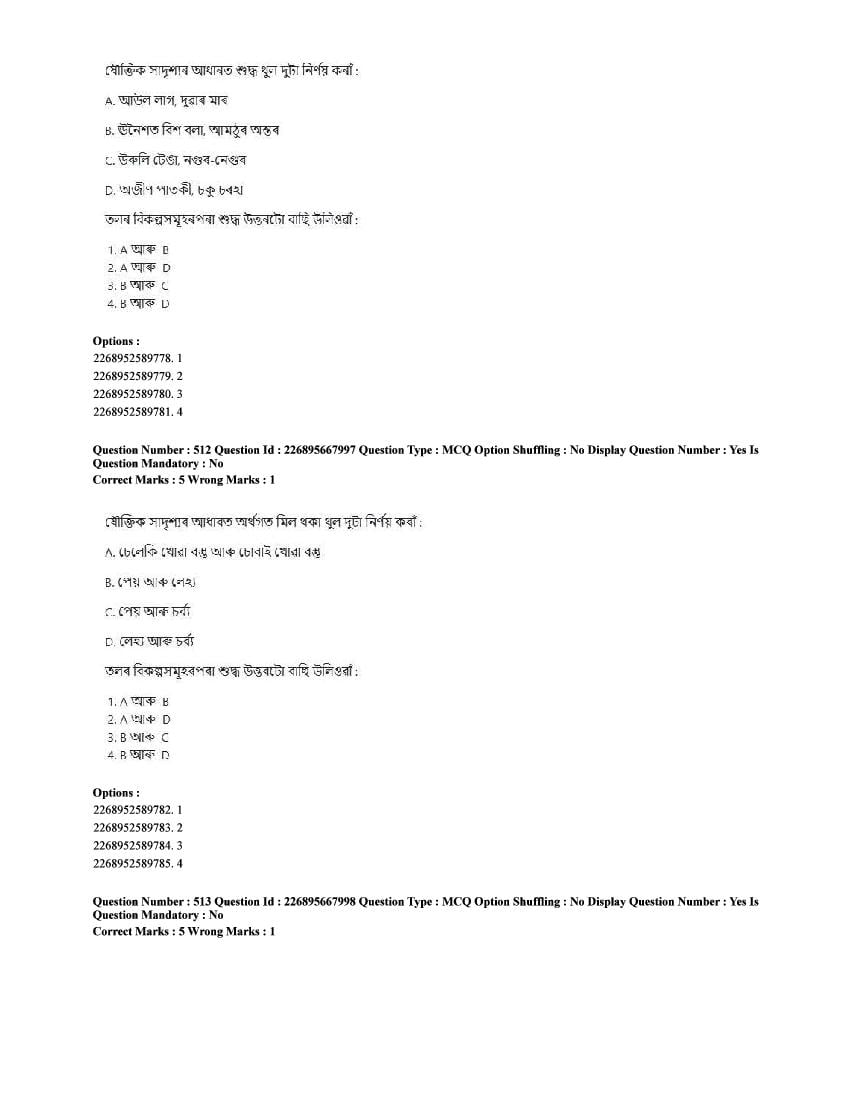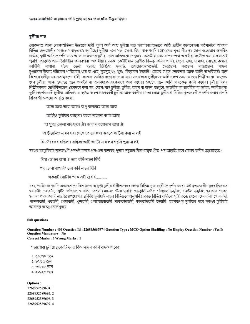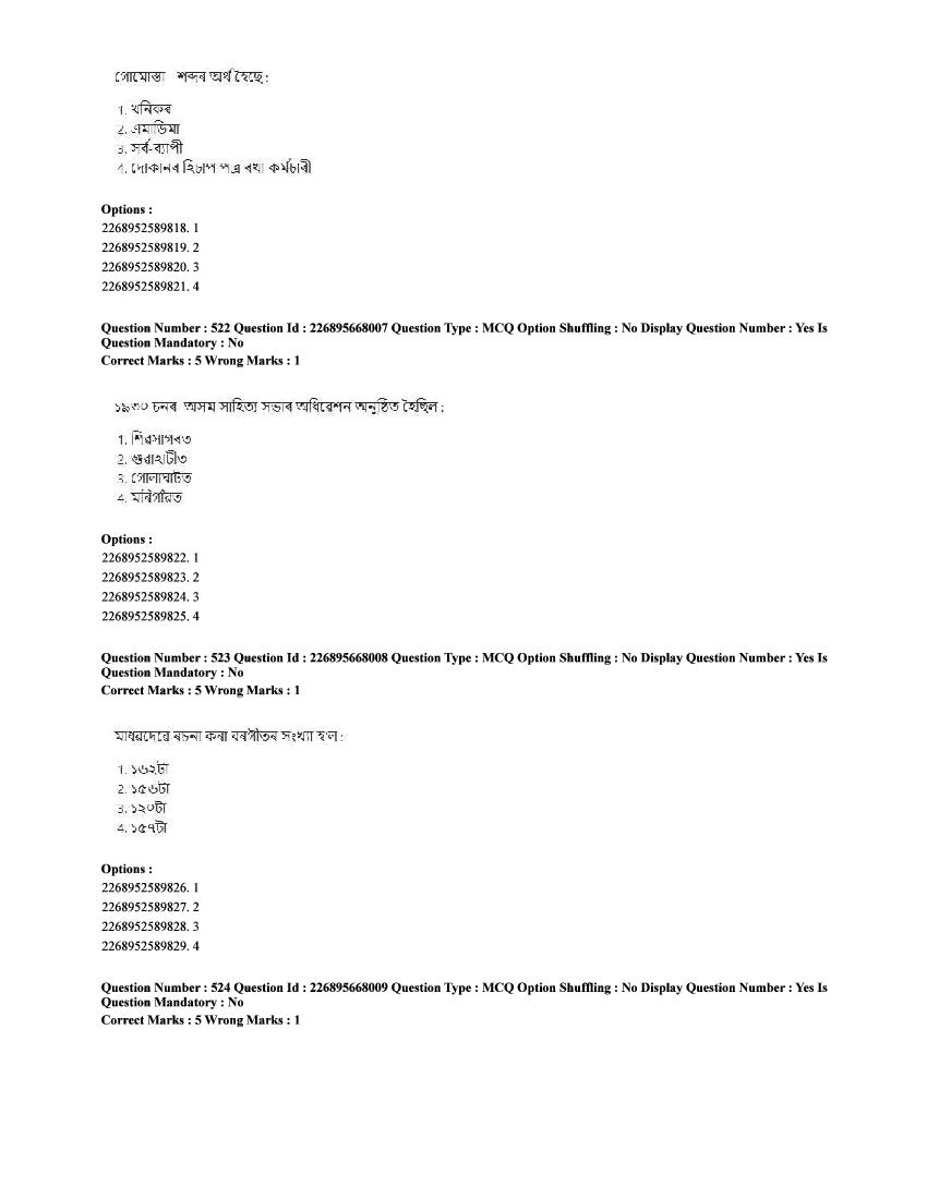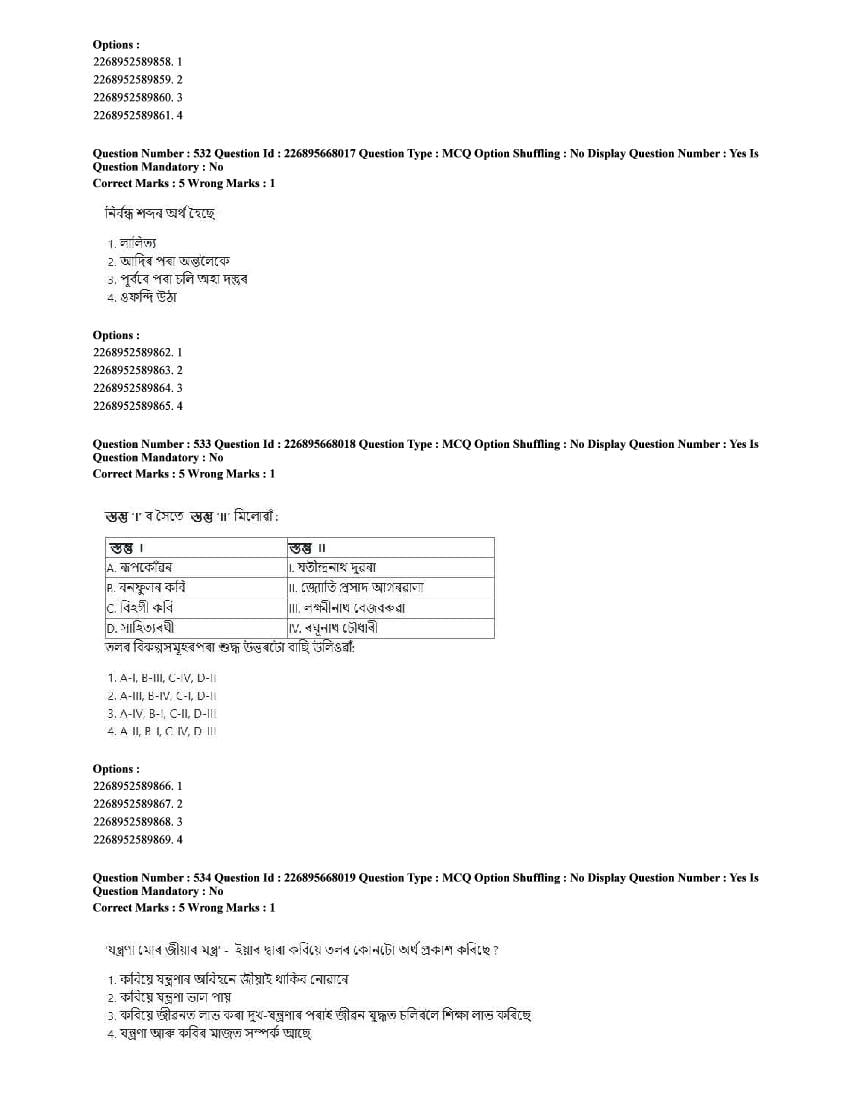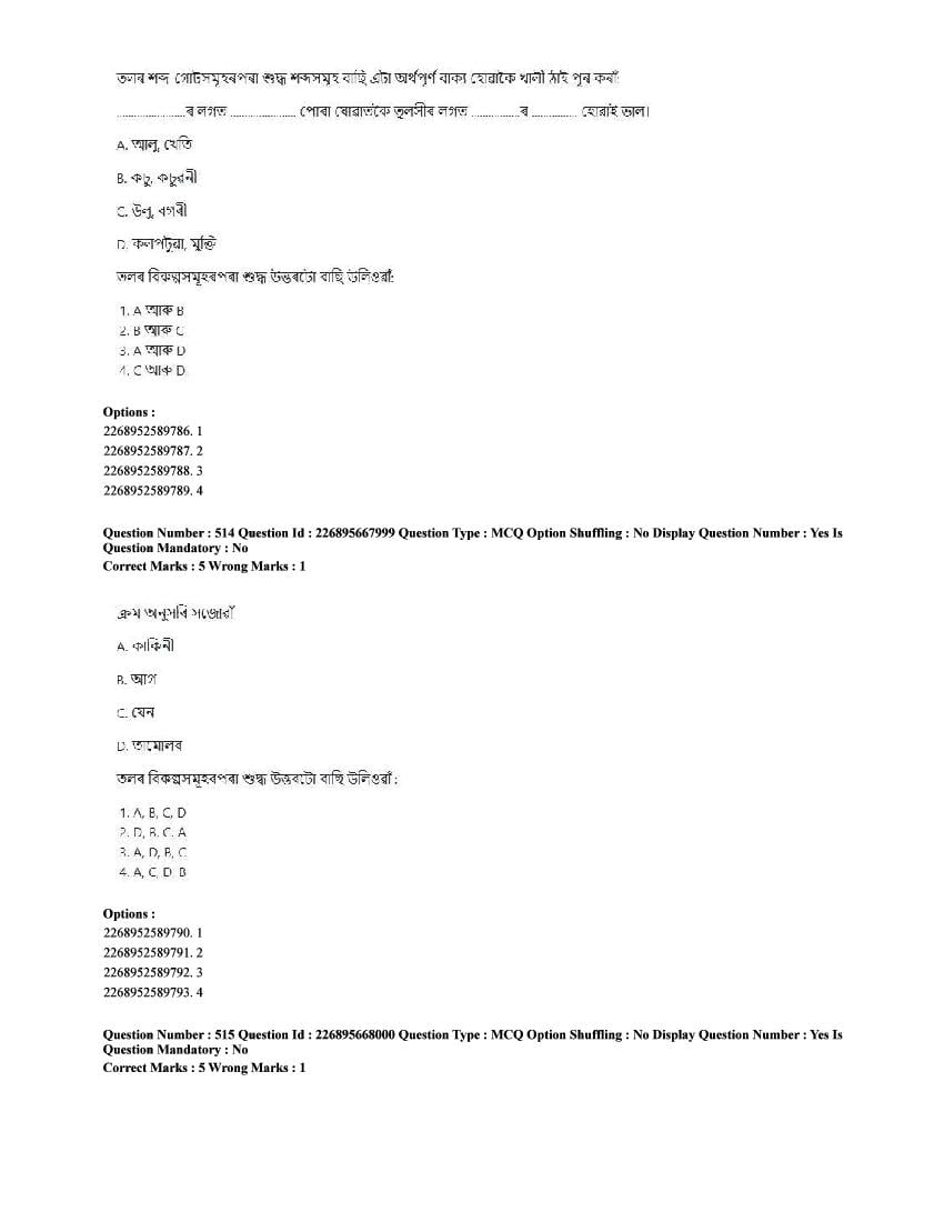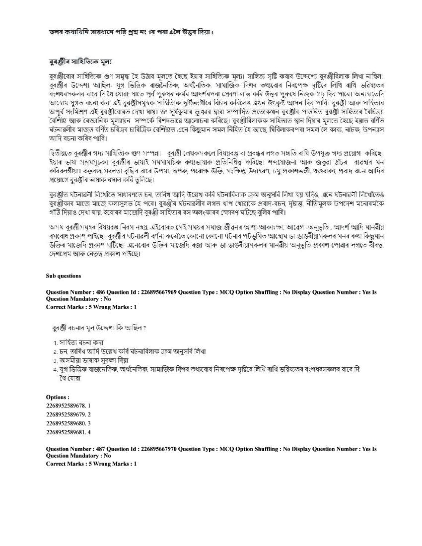 The CUET question paper of Assamese subject held in 2025 and previous years are as follows.