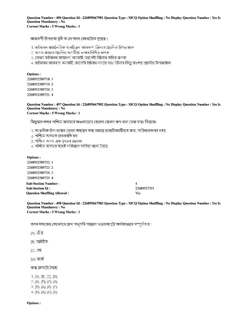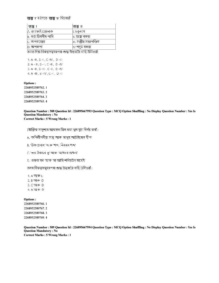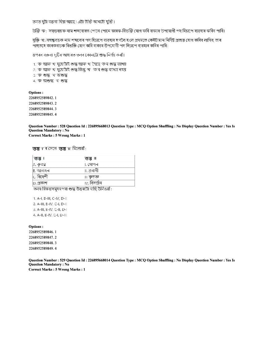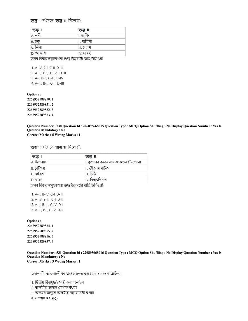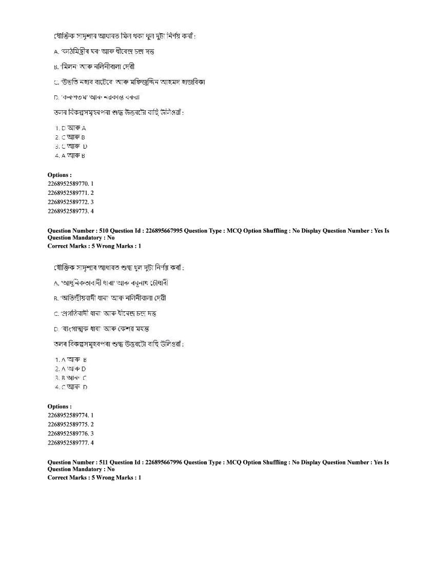 The CUET question paper of Assamese subject held in 2025 and previous years are as follows.