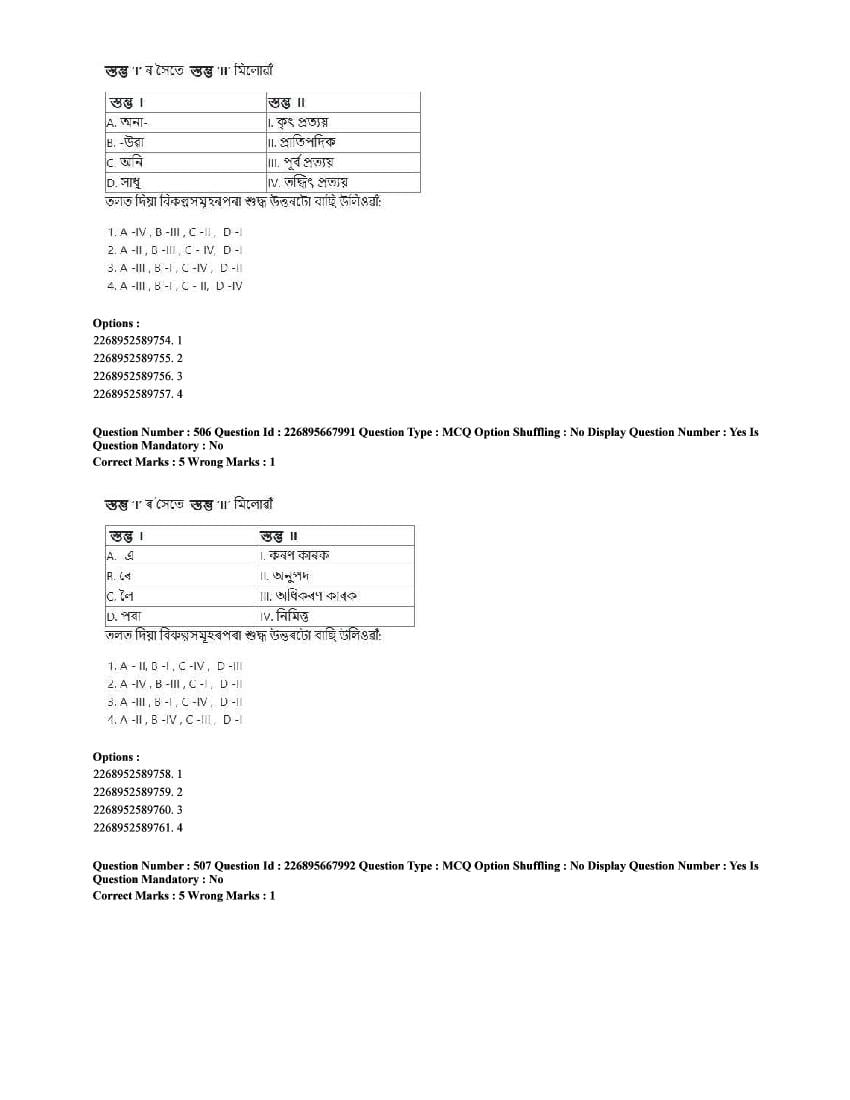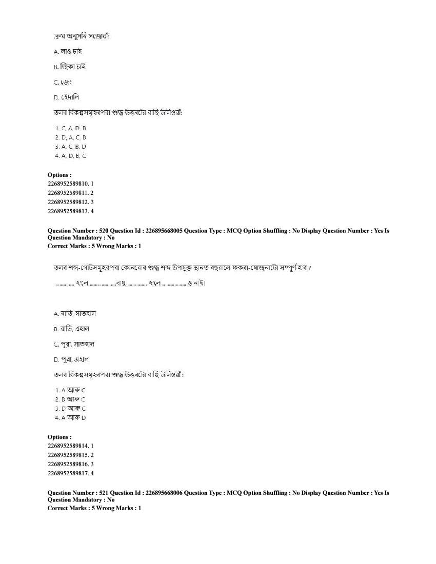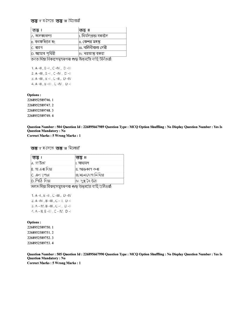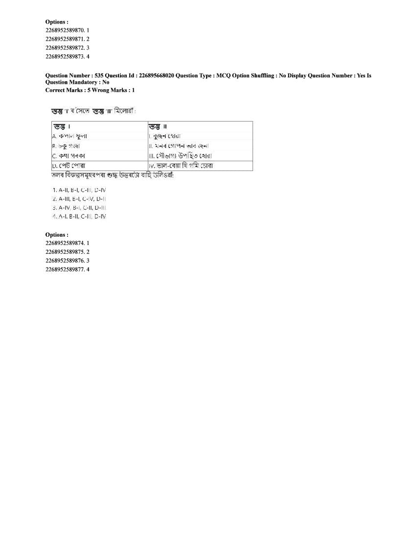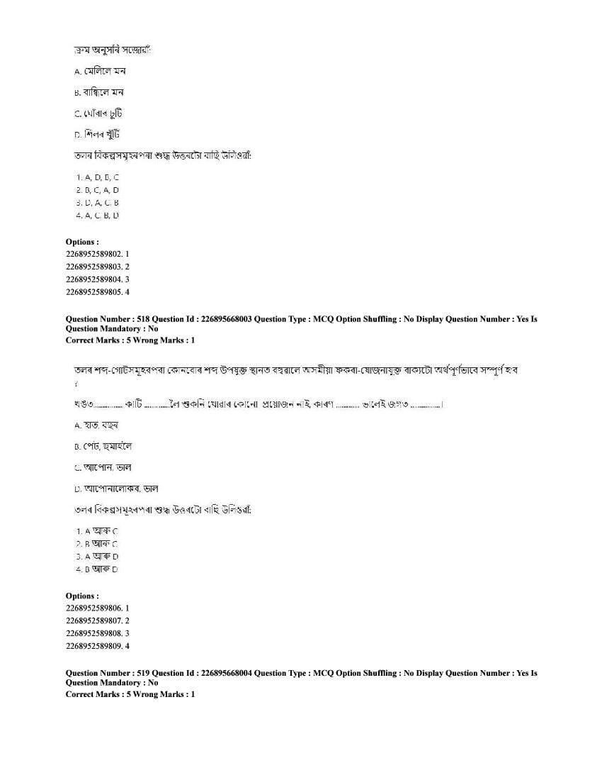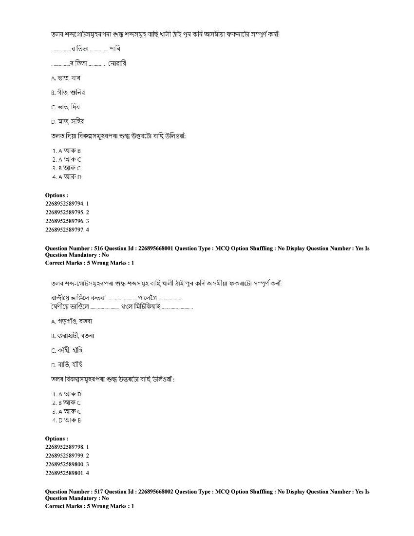 The CUET question paper of Assamese subject held in 2025 and previous years are as follows.