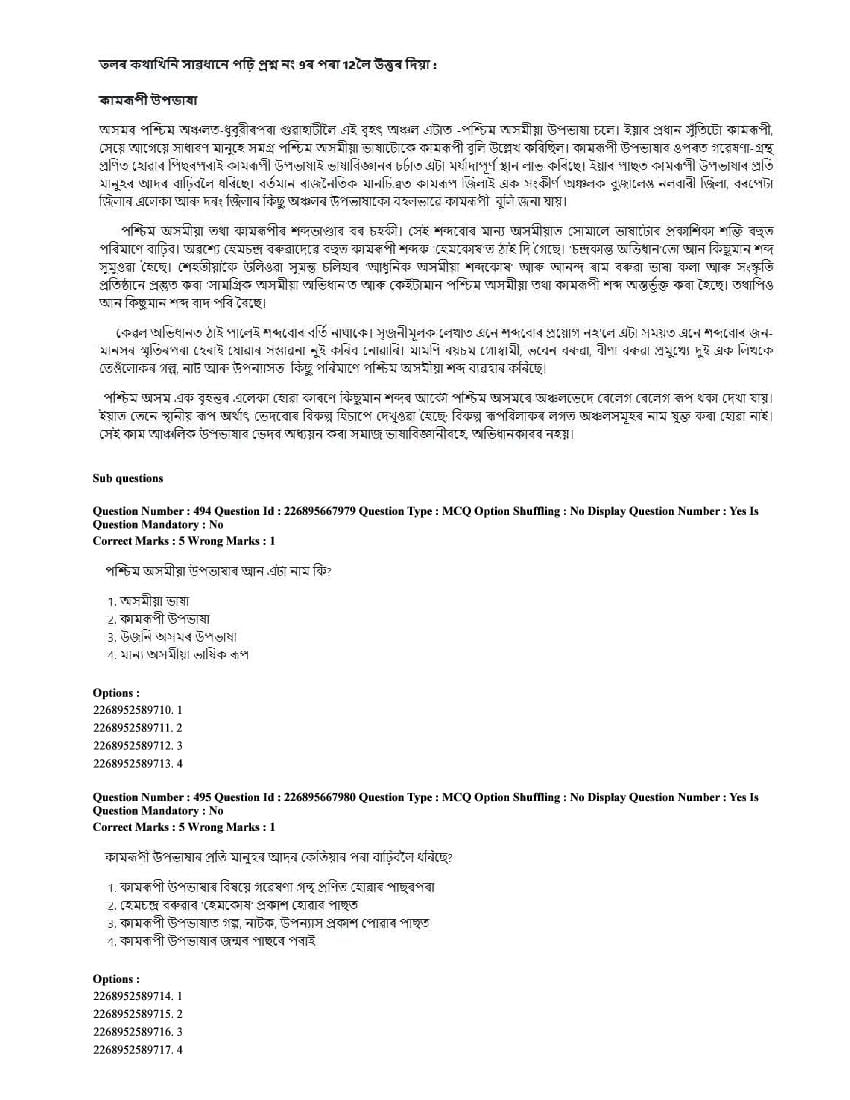 | Subject / Paper | Assamese |