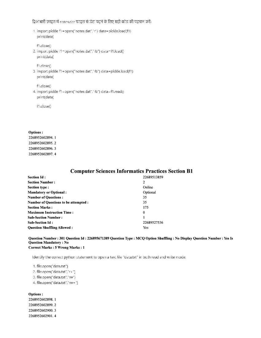 | Paper Here | CUET 2025 Question Paper of Computer Science Informatics Practices |