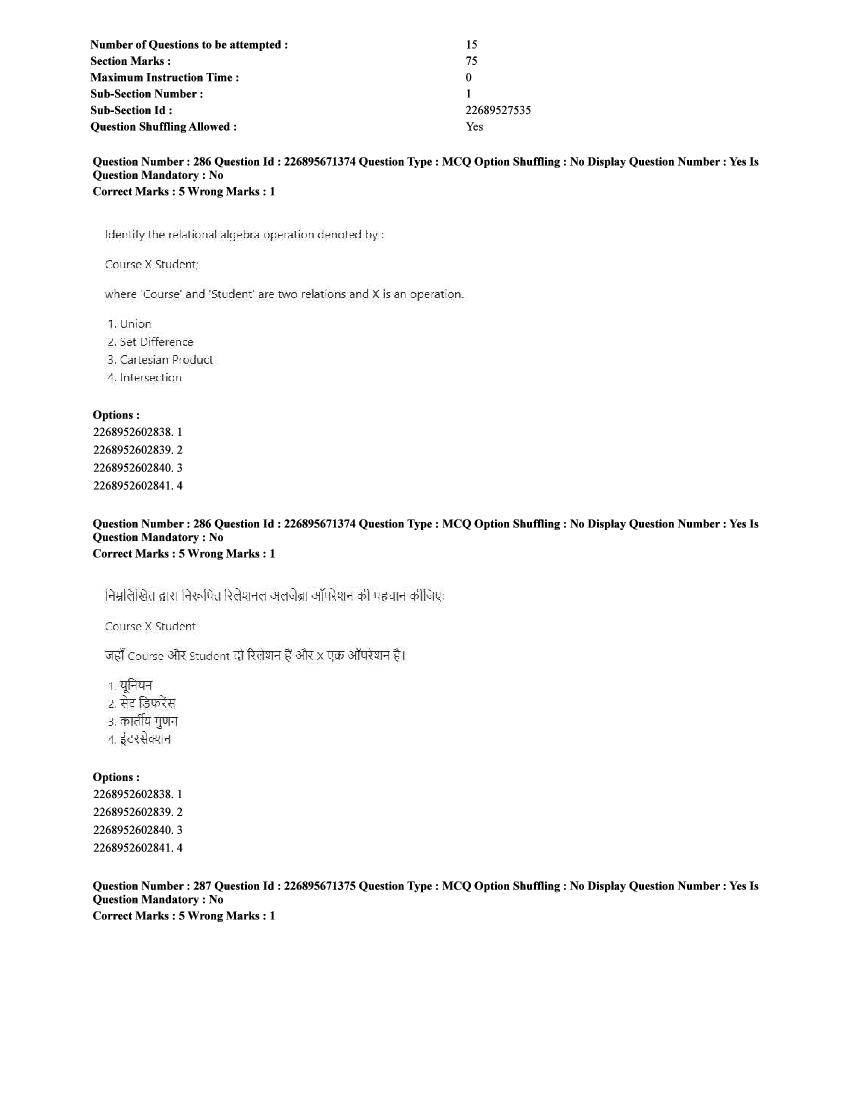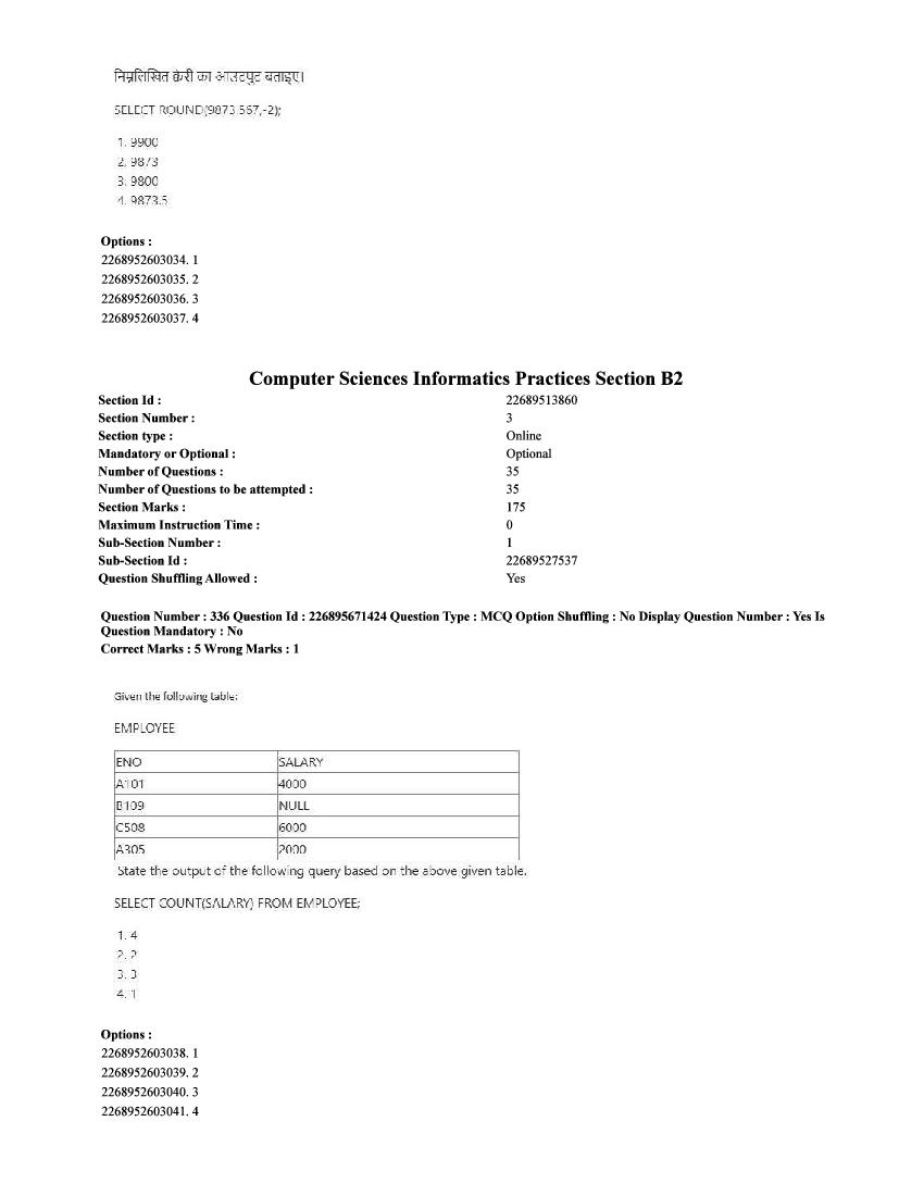 CUET Computer Science Informatics Practices Question Paper 2023 PDF Download Link – Click Here to Download Question Paper PDF