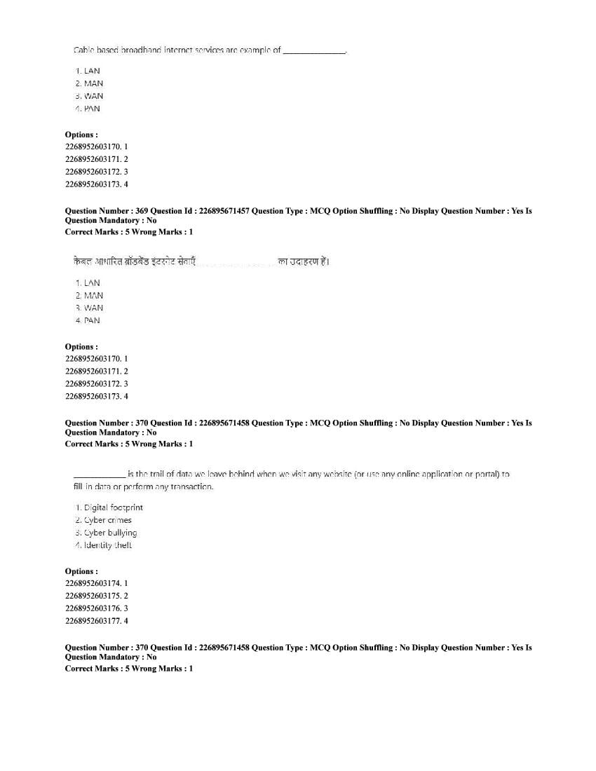The CUET question paper of Computer Science Informatics Practices subject held in 2025 and previous years are as follows.