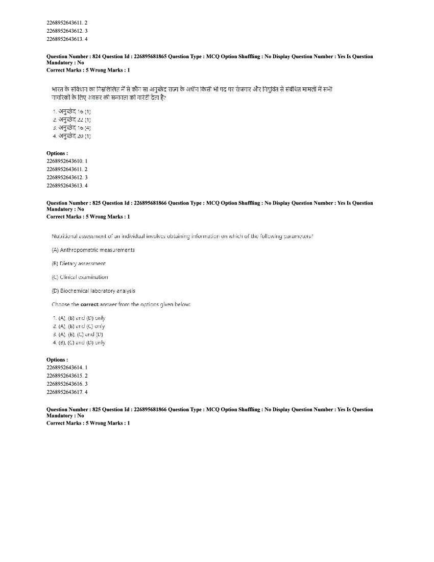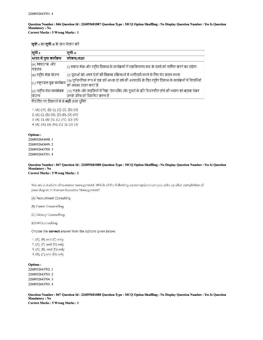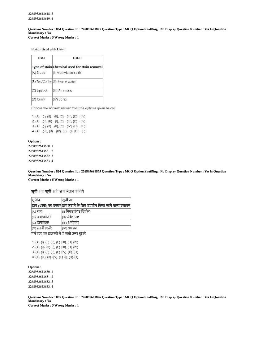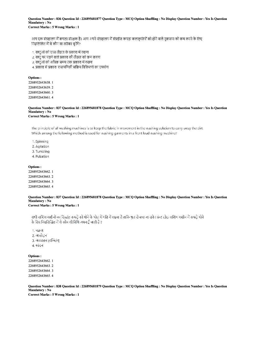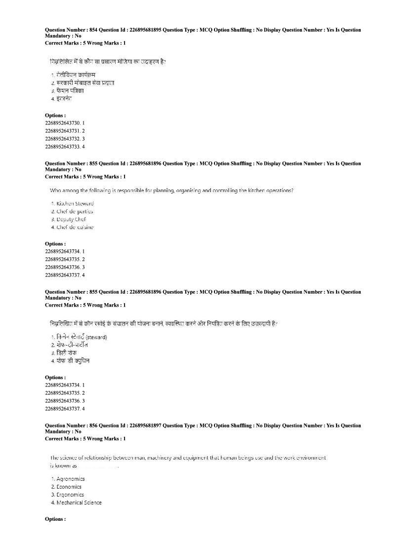 The CUET question paper of Home Science subject held in 2025 and previous years are as follows.