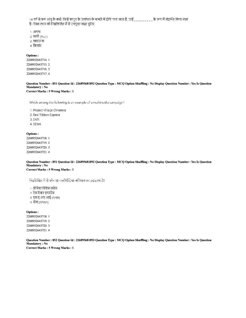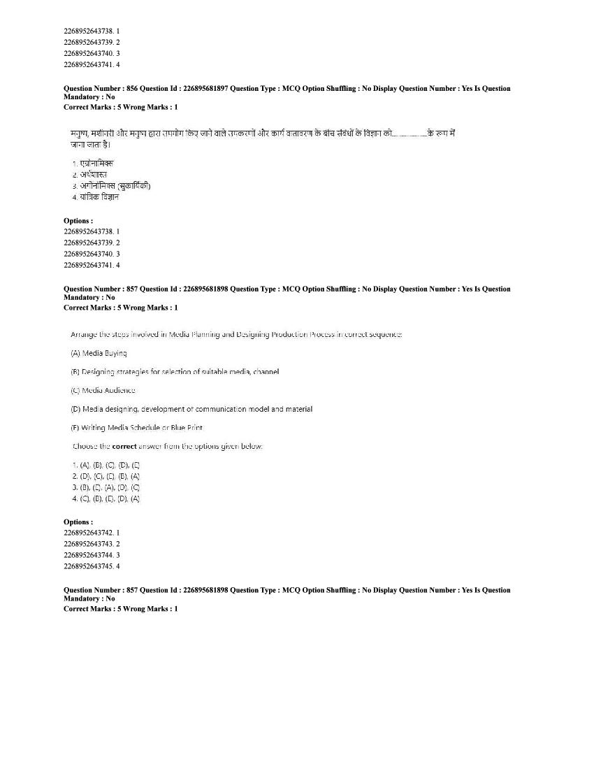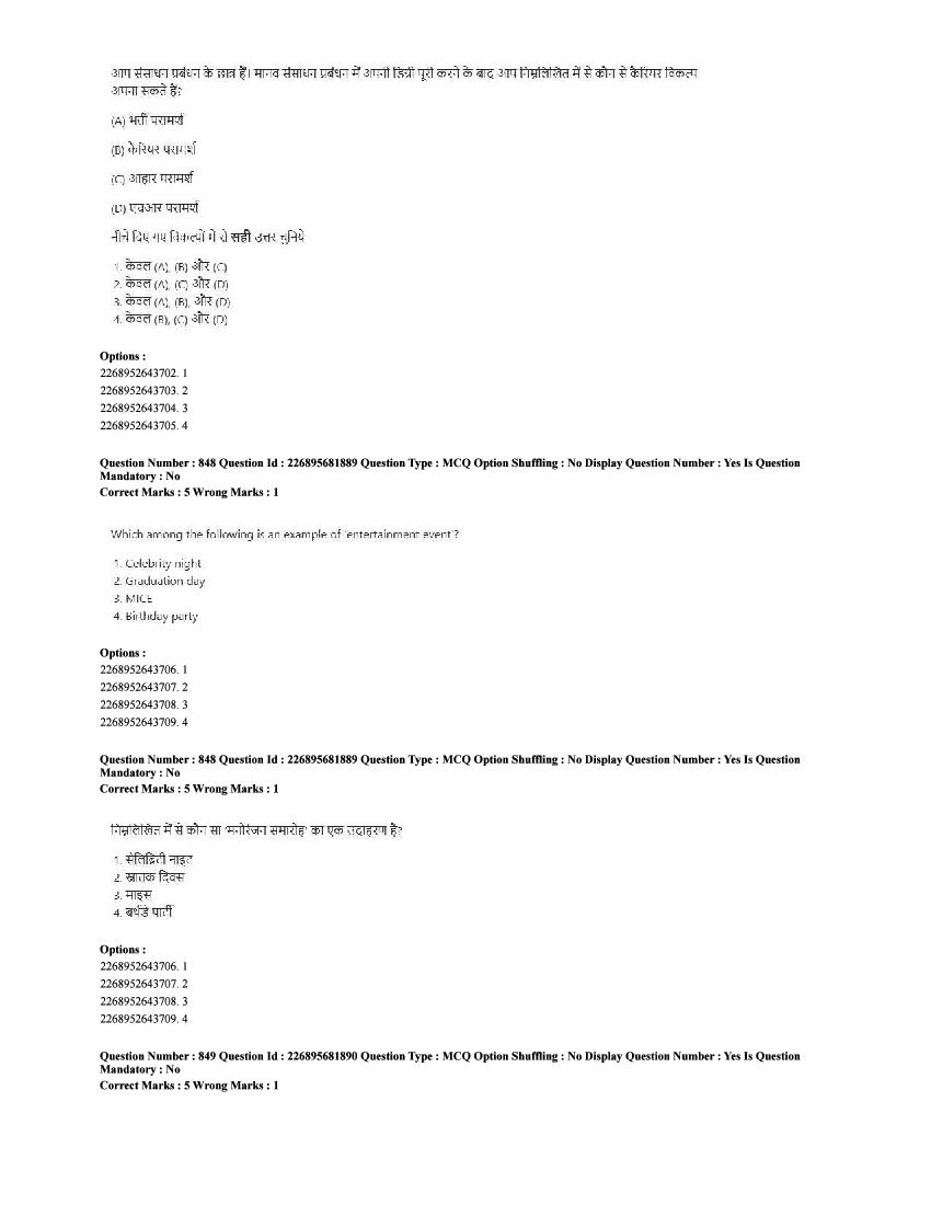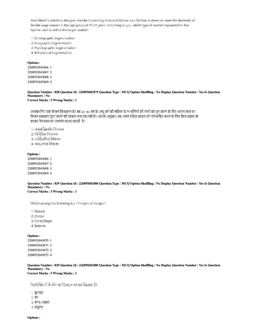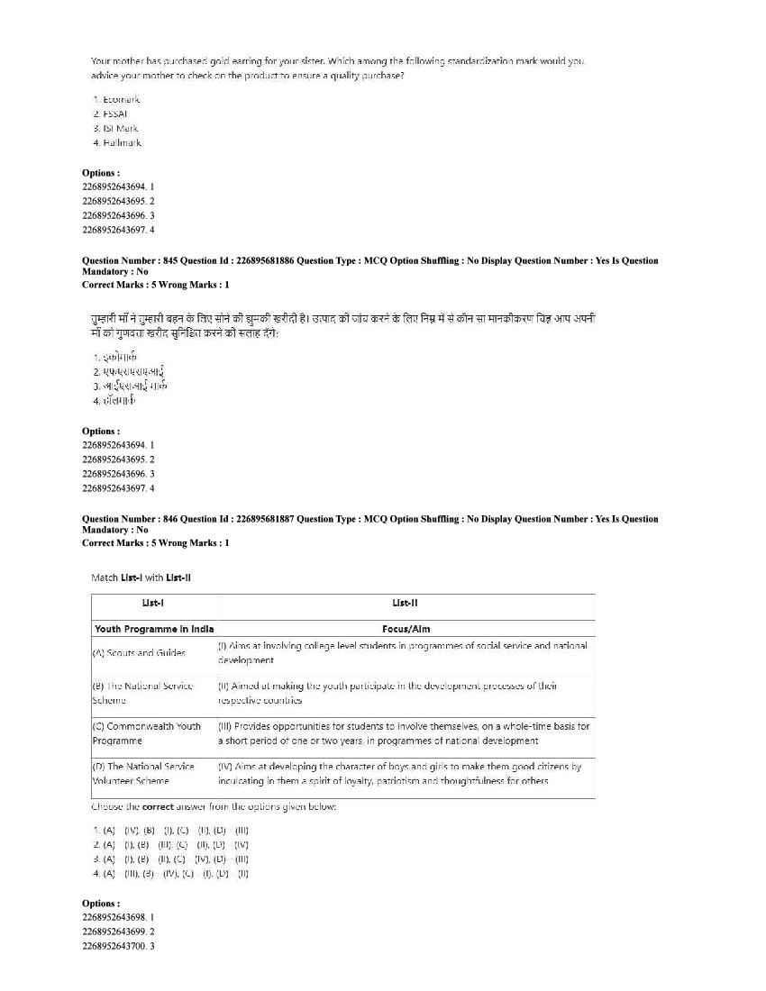 The CUET question paper of Home Science subject held in 2025 and previous years are as follows.