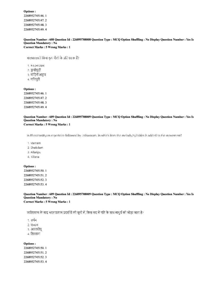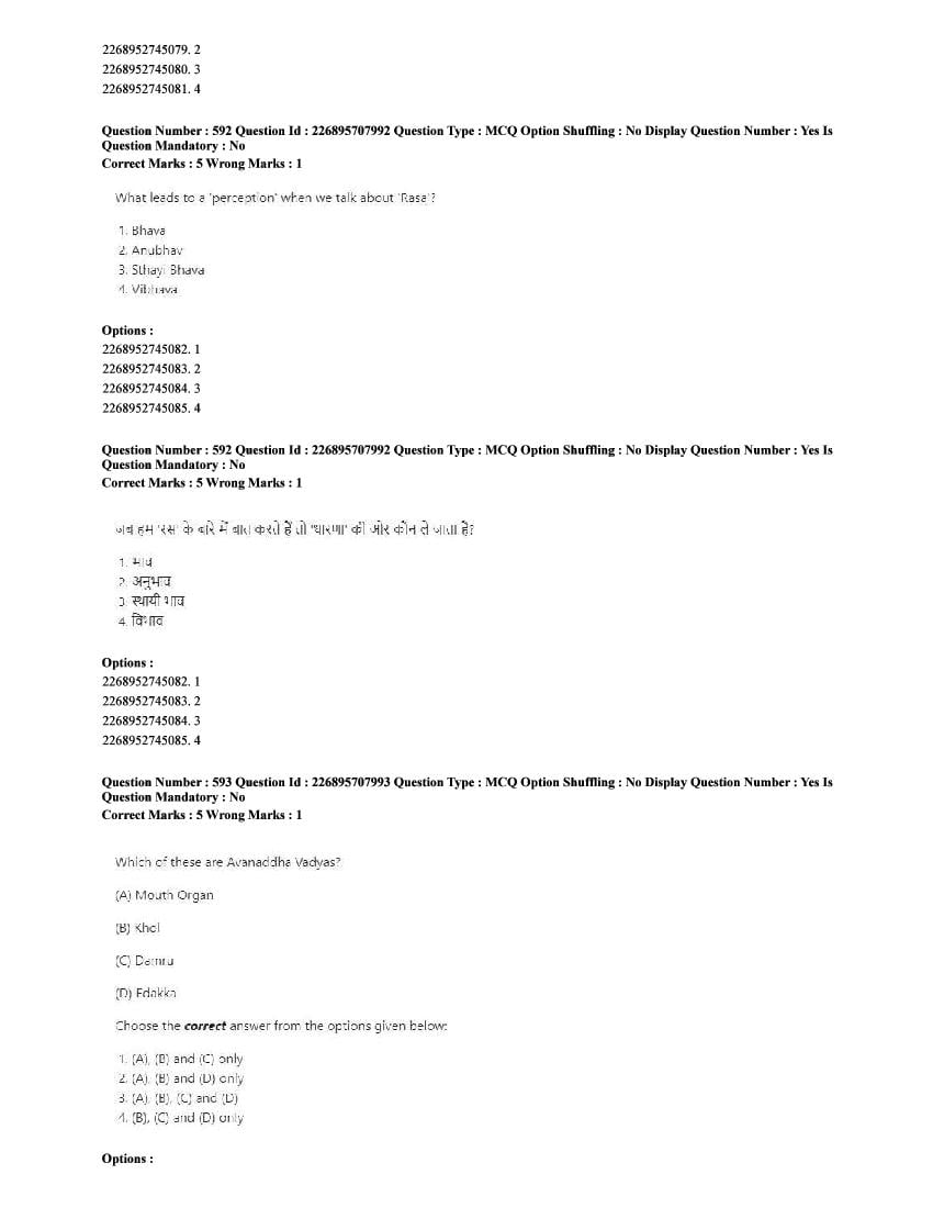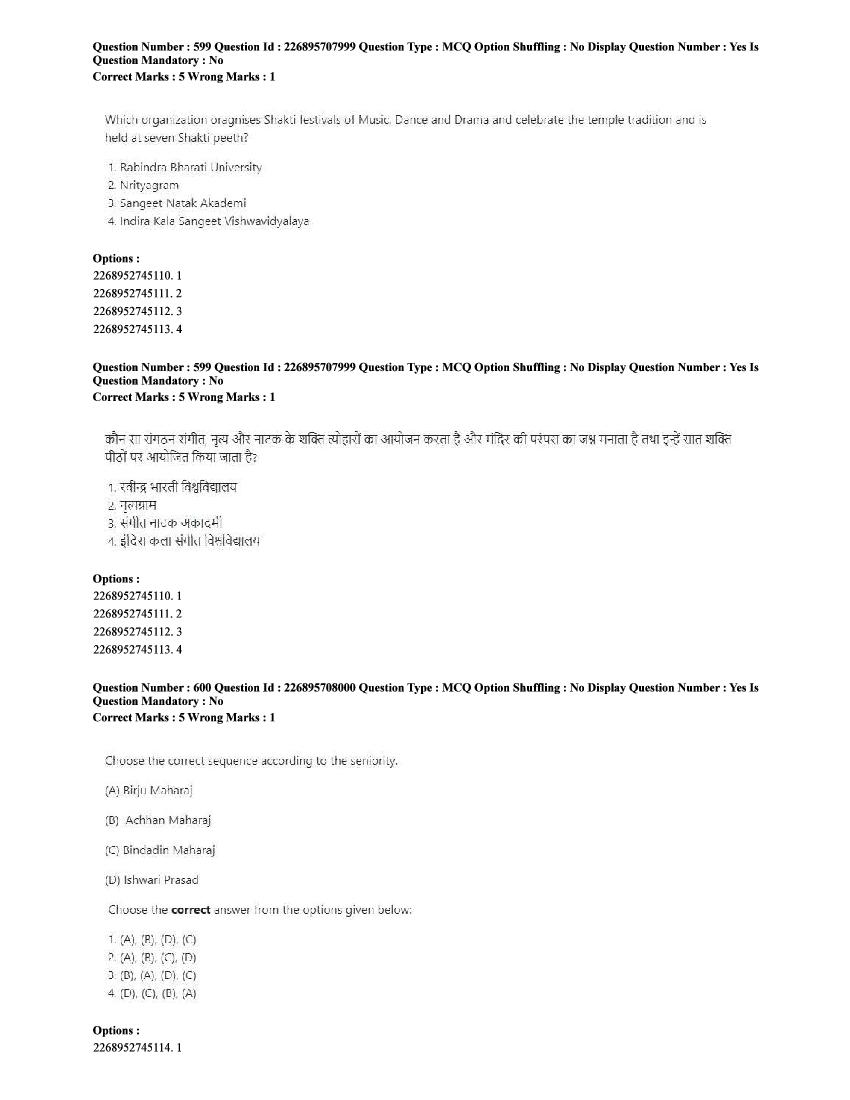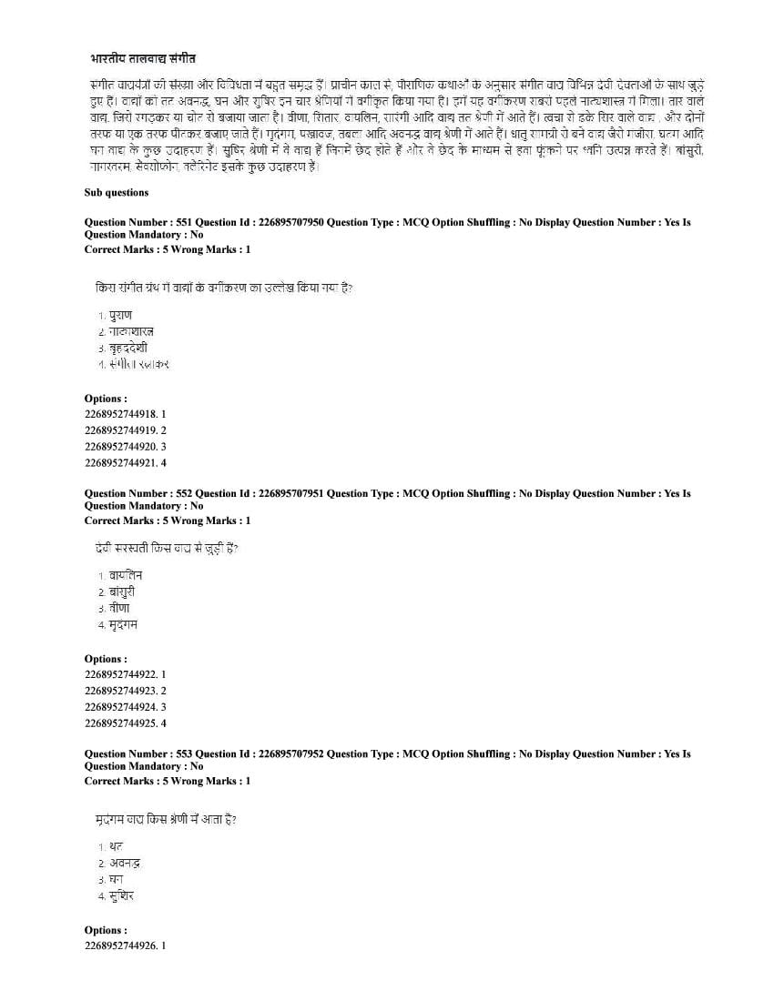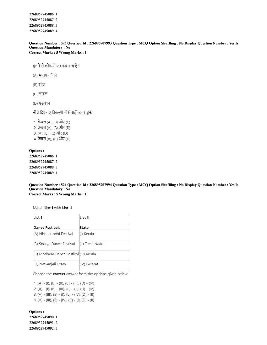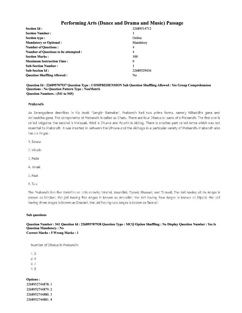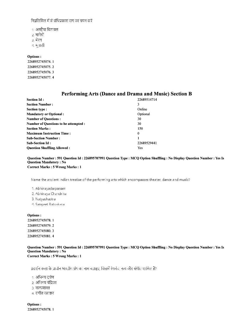 The CUET question paper of Performing Arts subject held in 2025 and previous years are as follows.