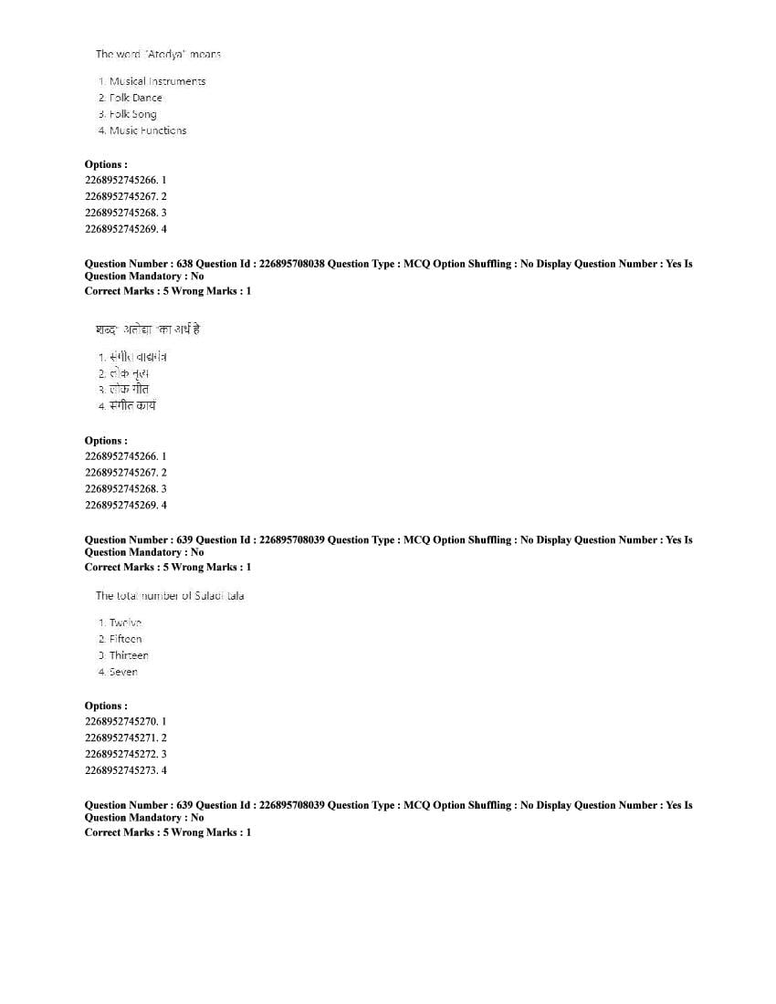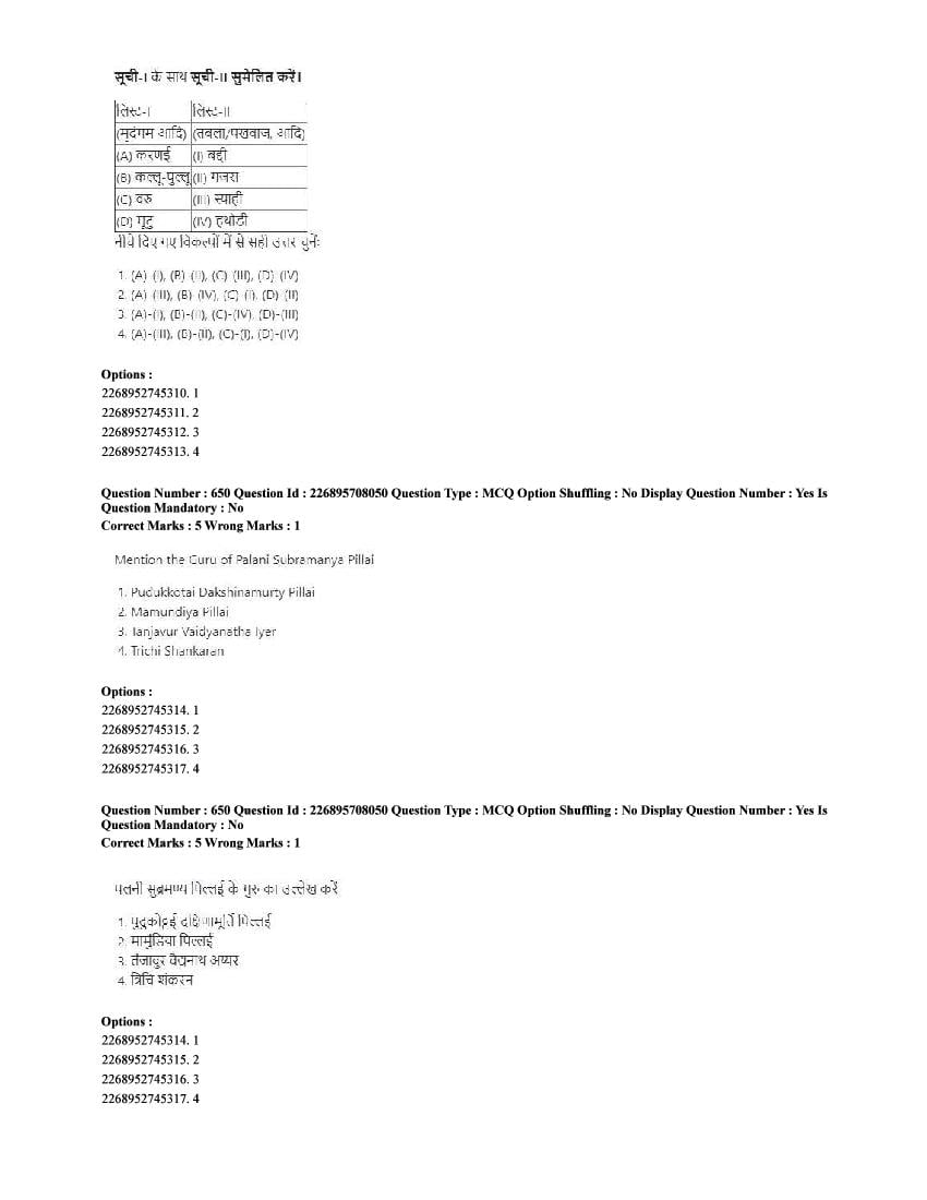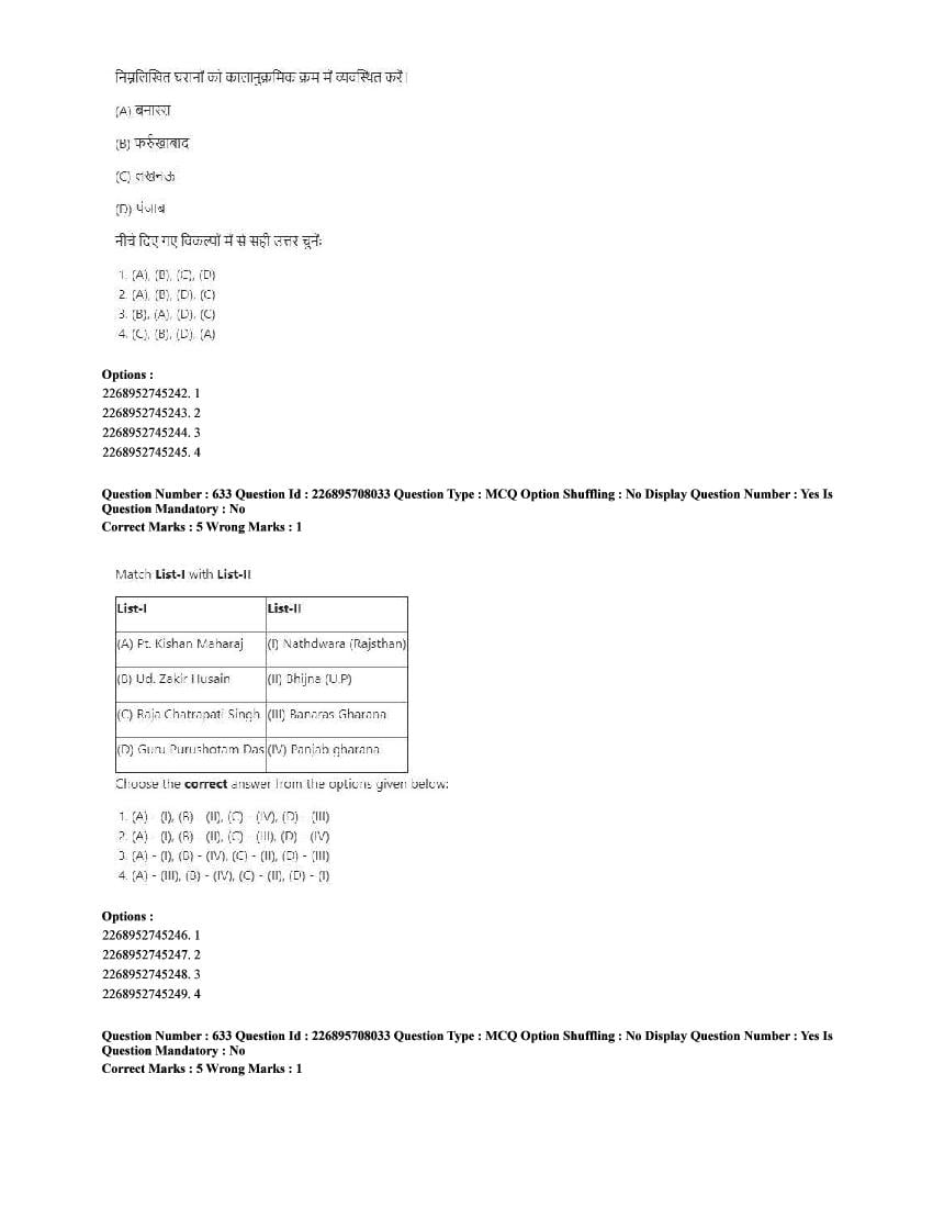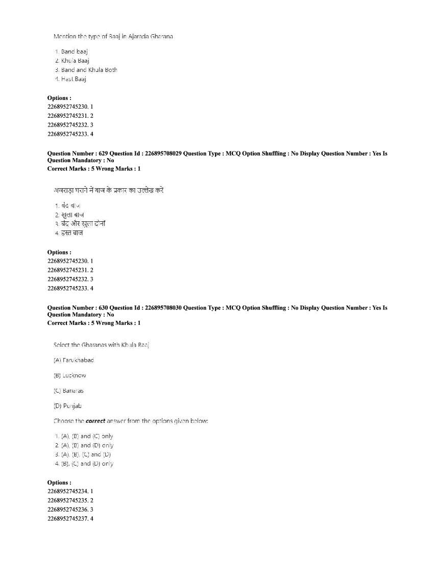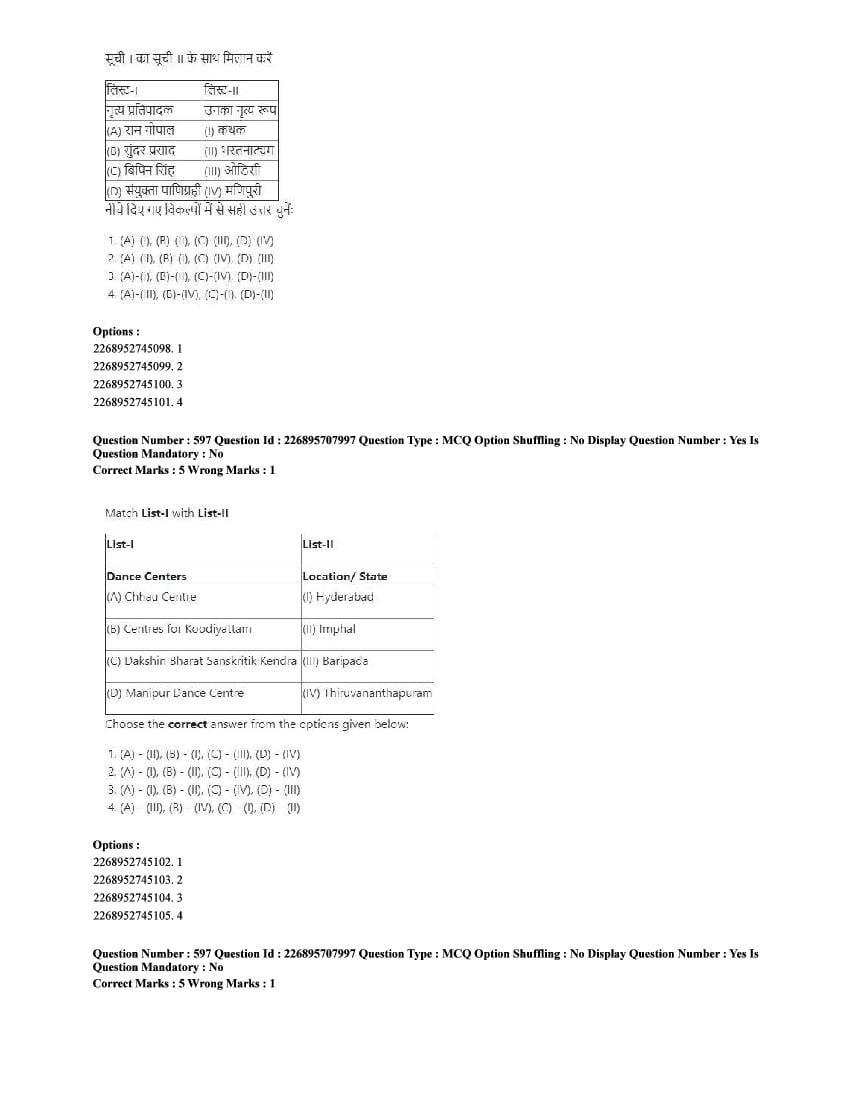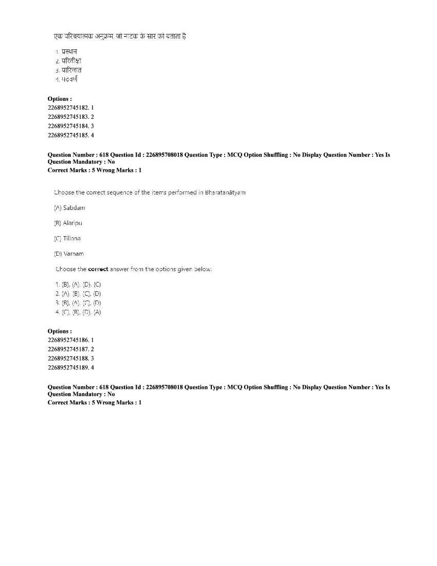 The CUET question paper of Performing Arts subject held in 2025 and previous years are as follows.