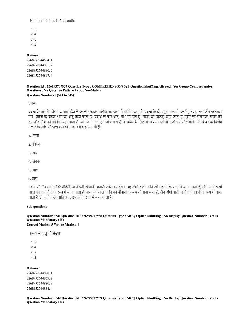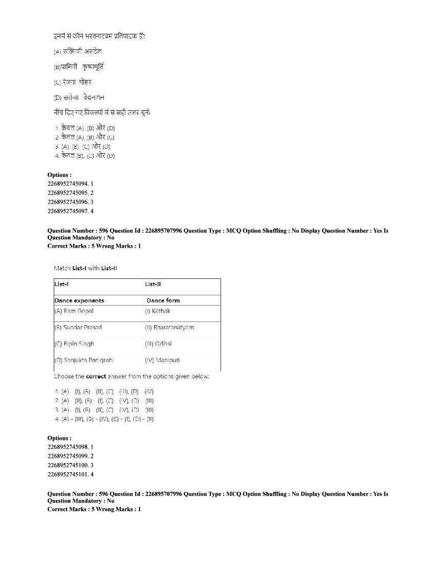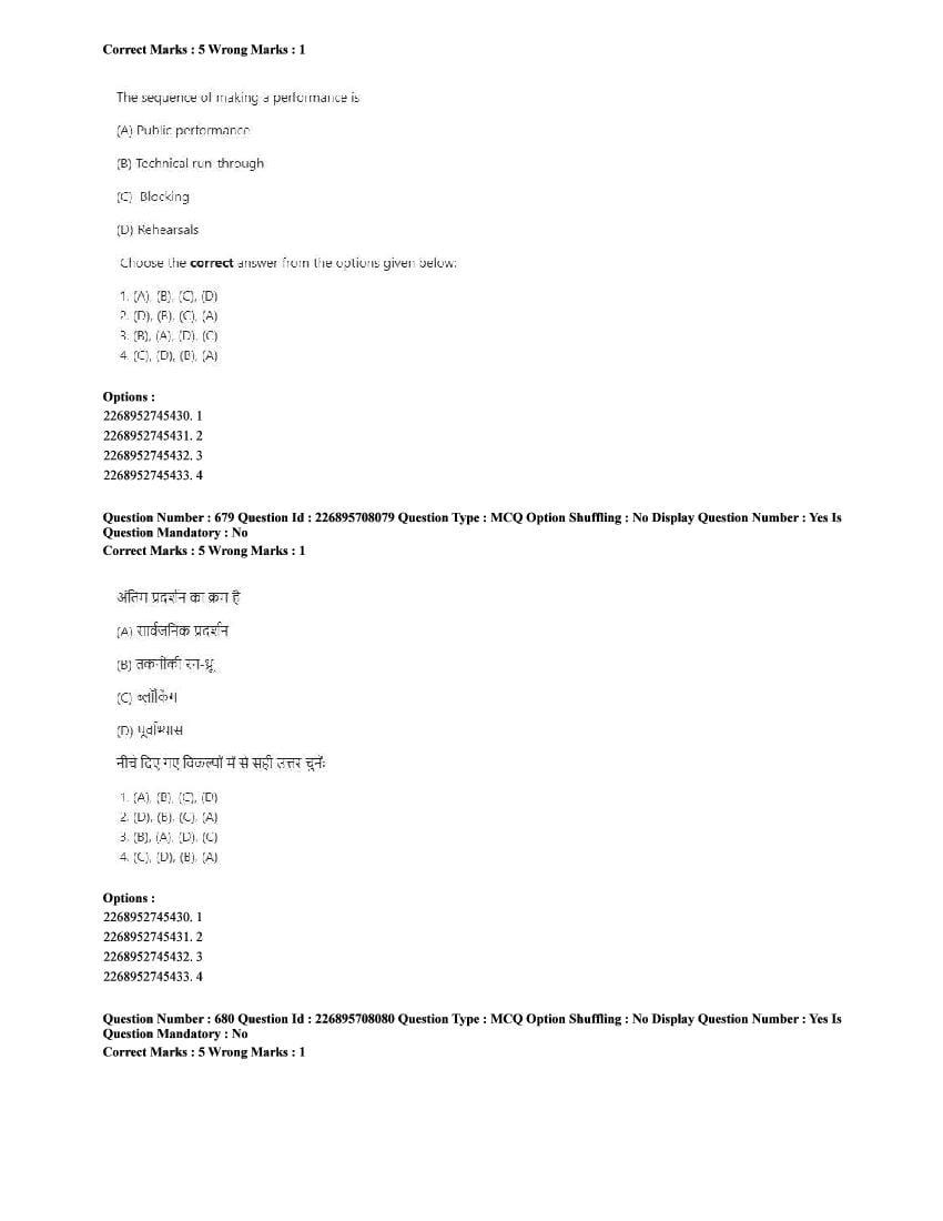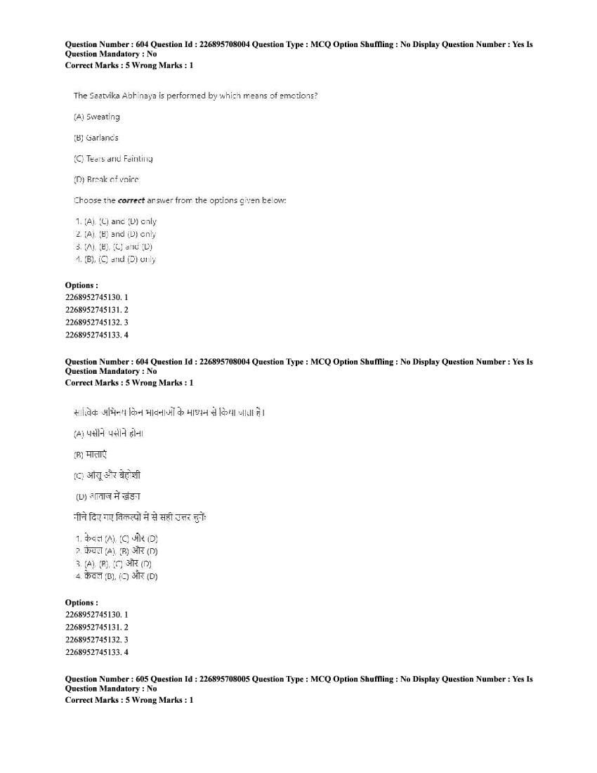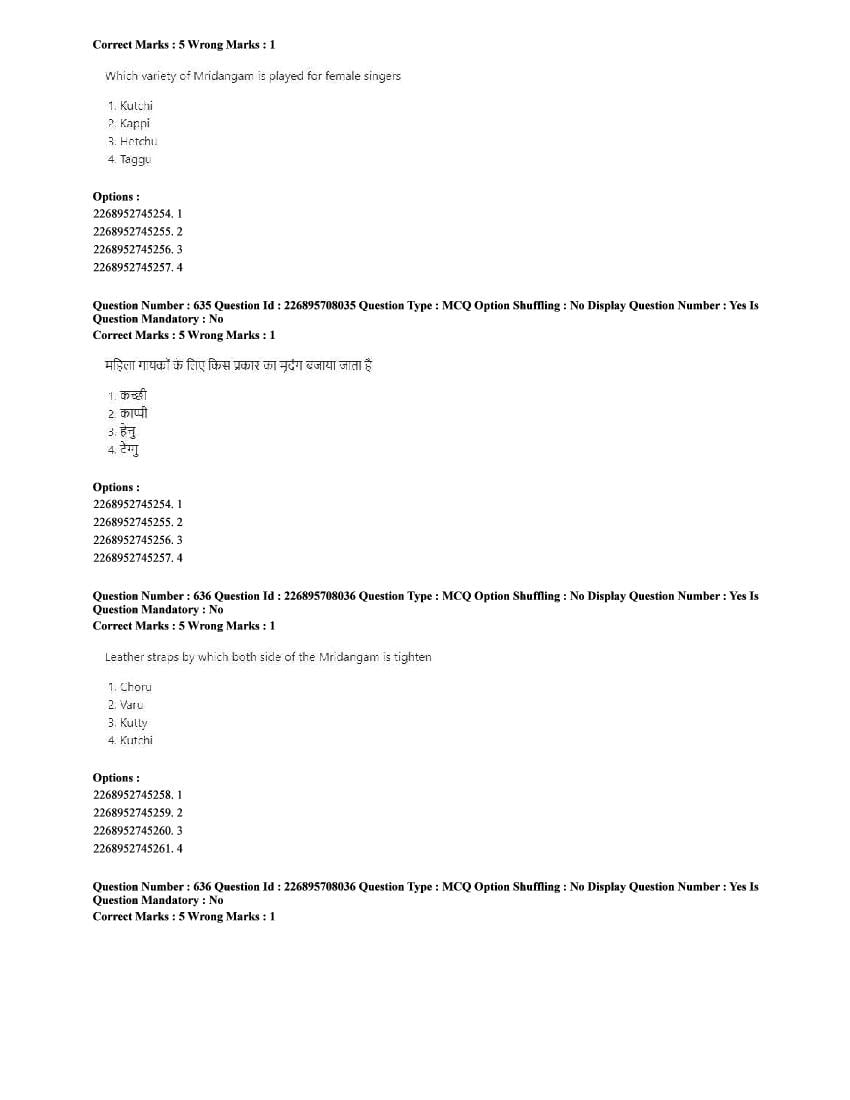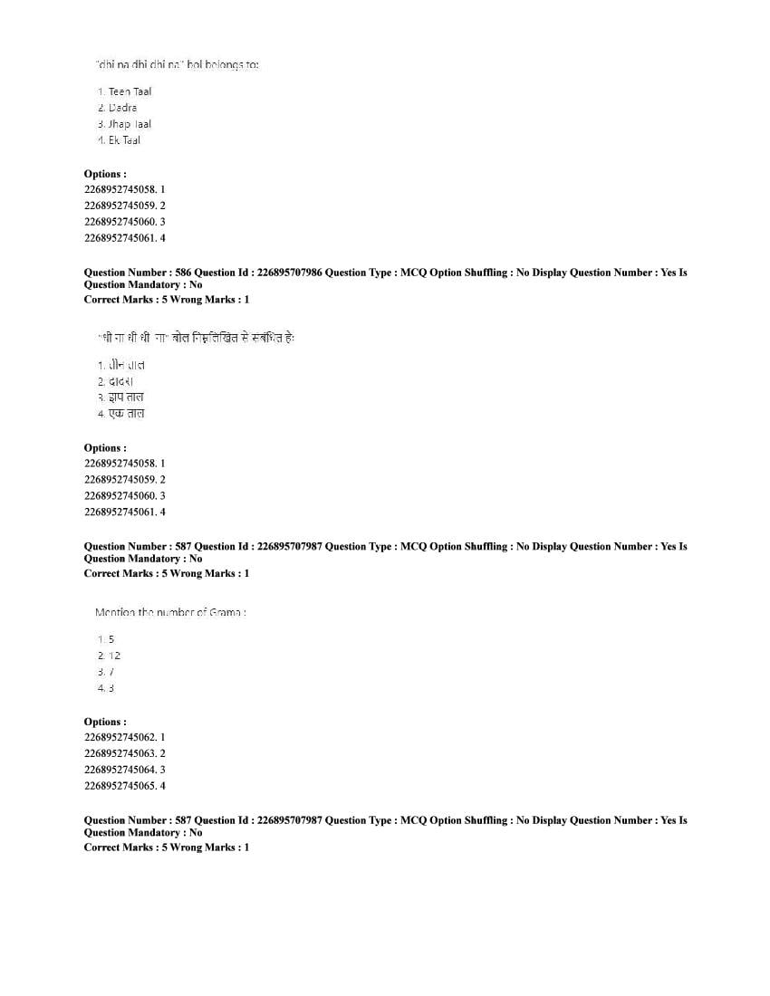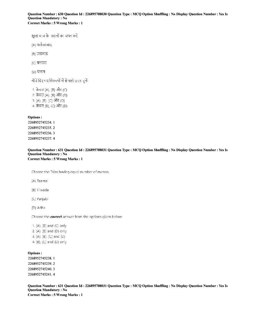 The CUET question paper of Performing Arts subject held in 2025 and previous years are as follows.