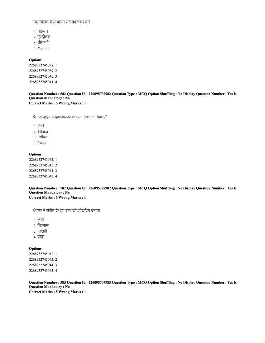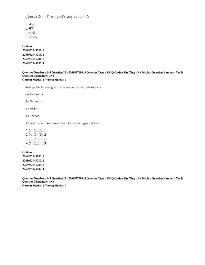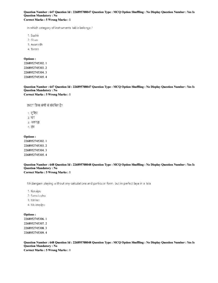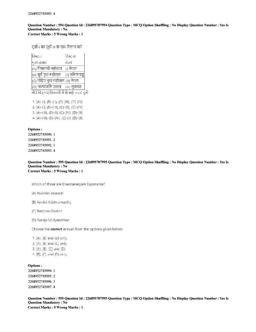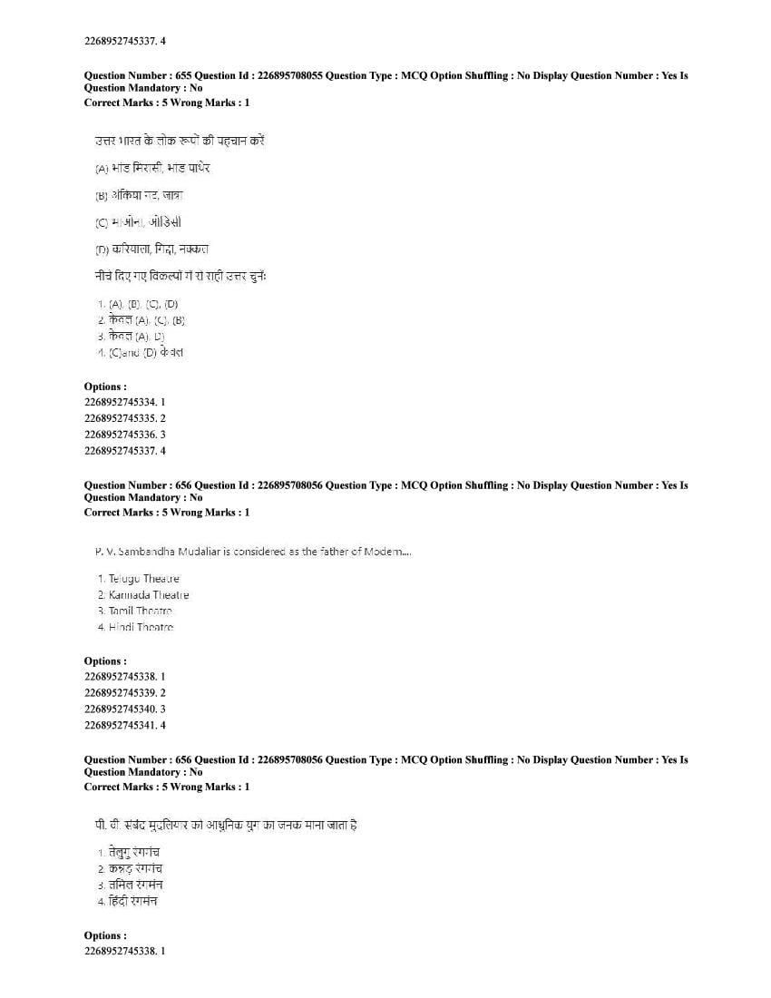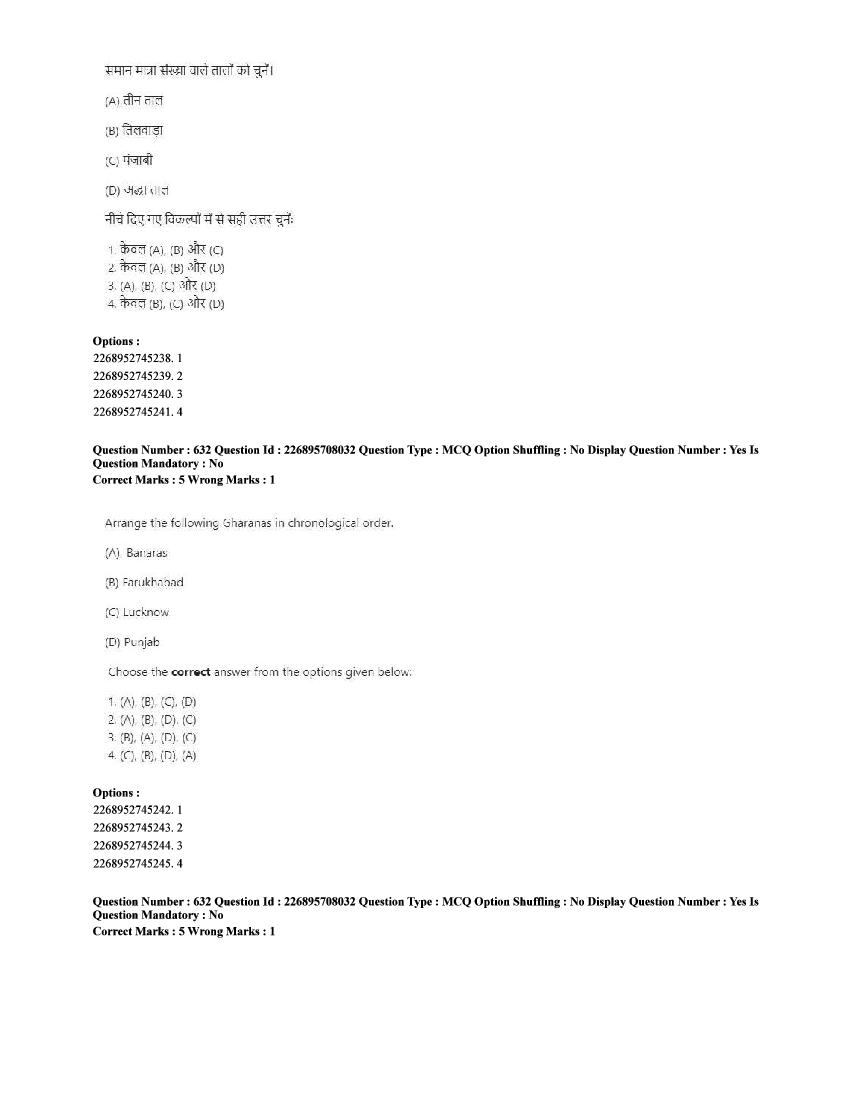 The CUET question paper of Performing Arts subject held in 2025 and previous years are as follows.