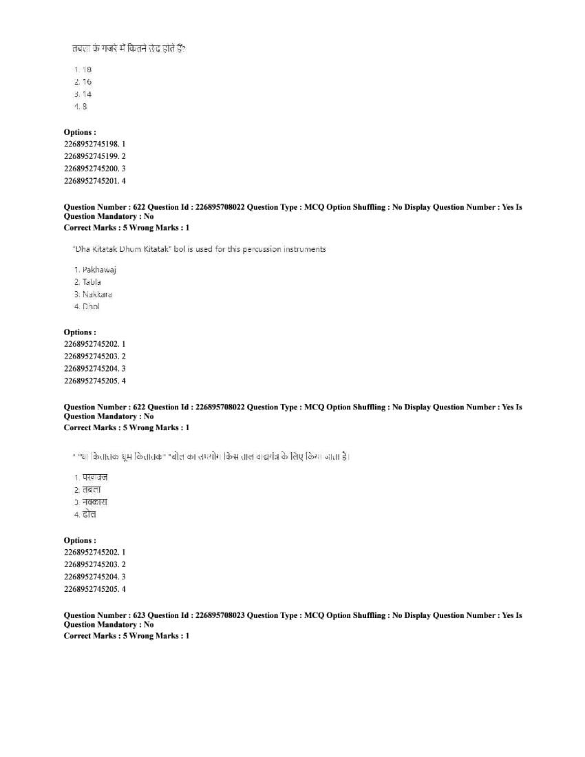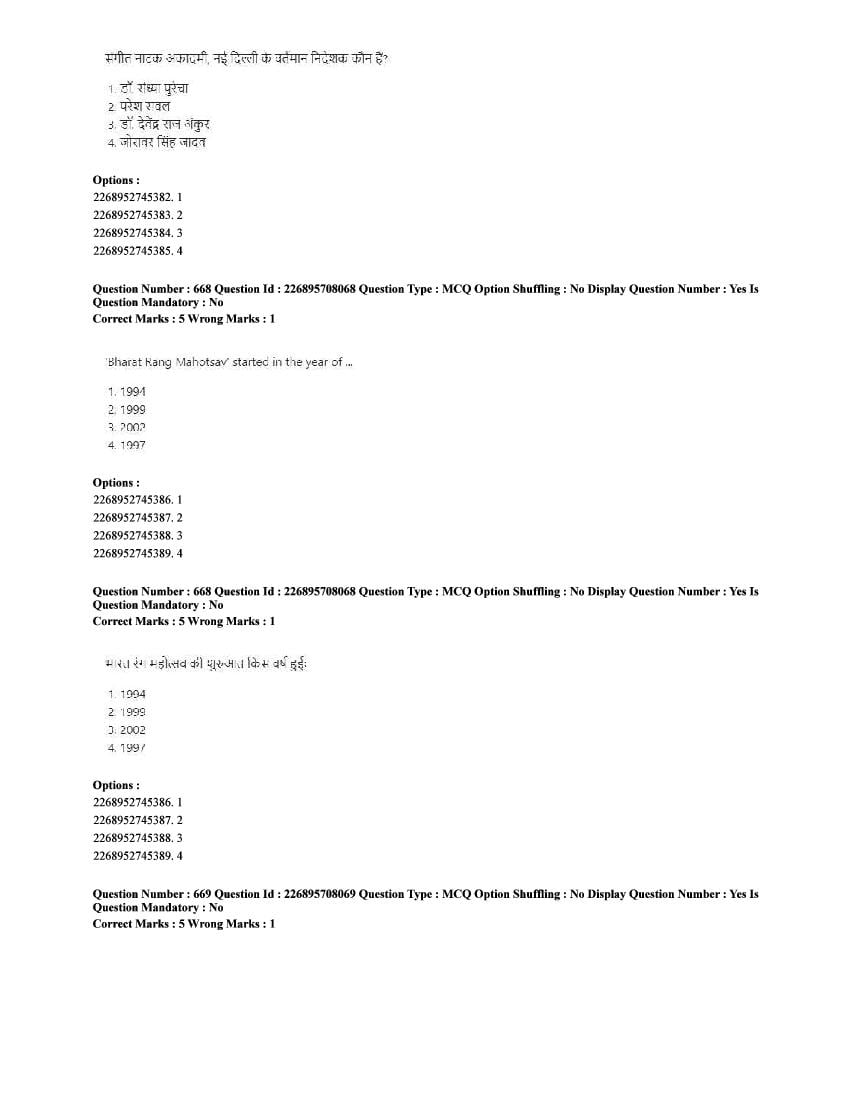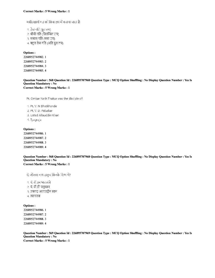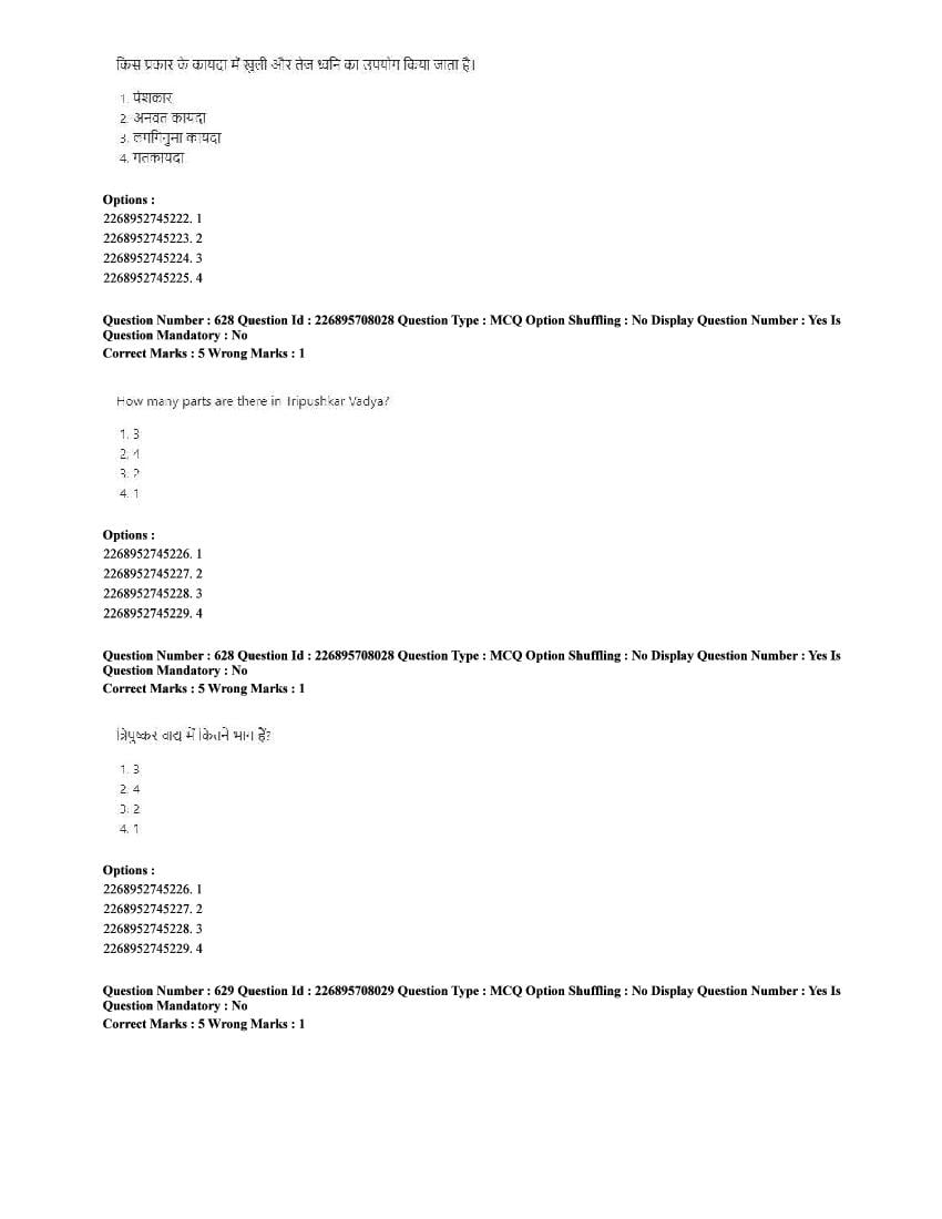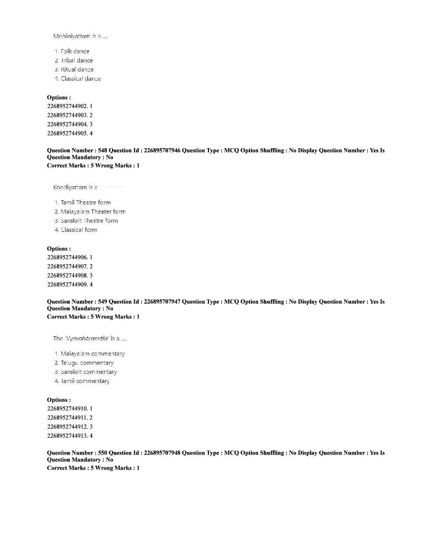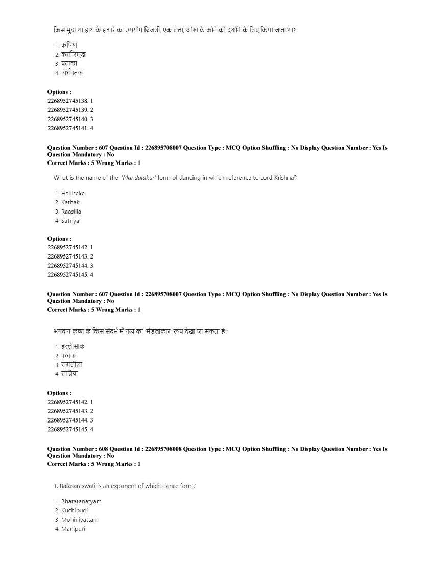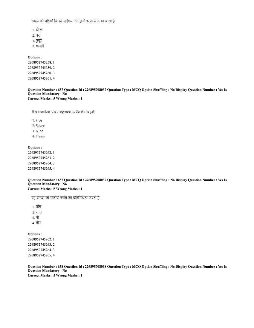 The CUET question paper of Performing Arts subject held in 2025 and previous years are as follows.