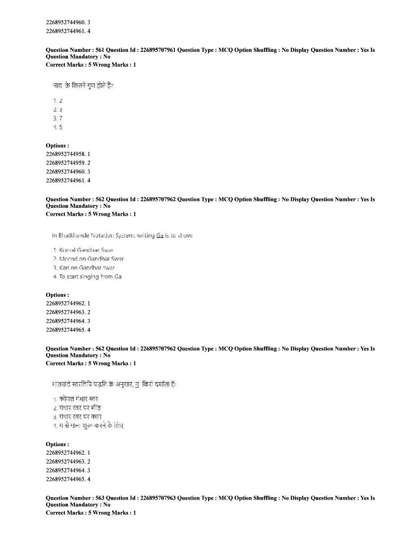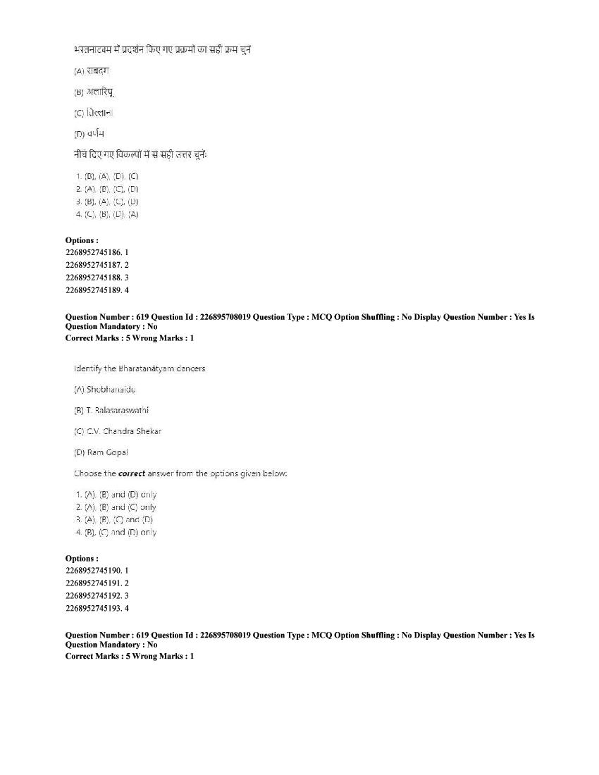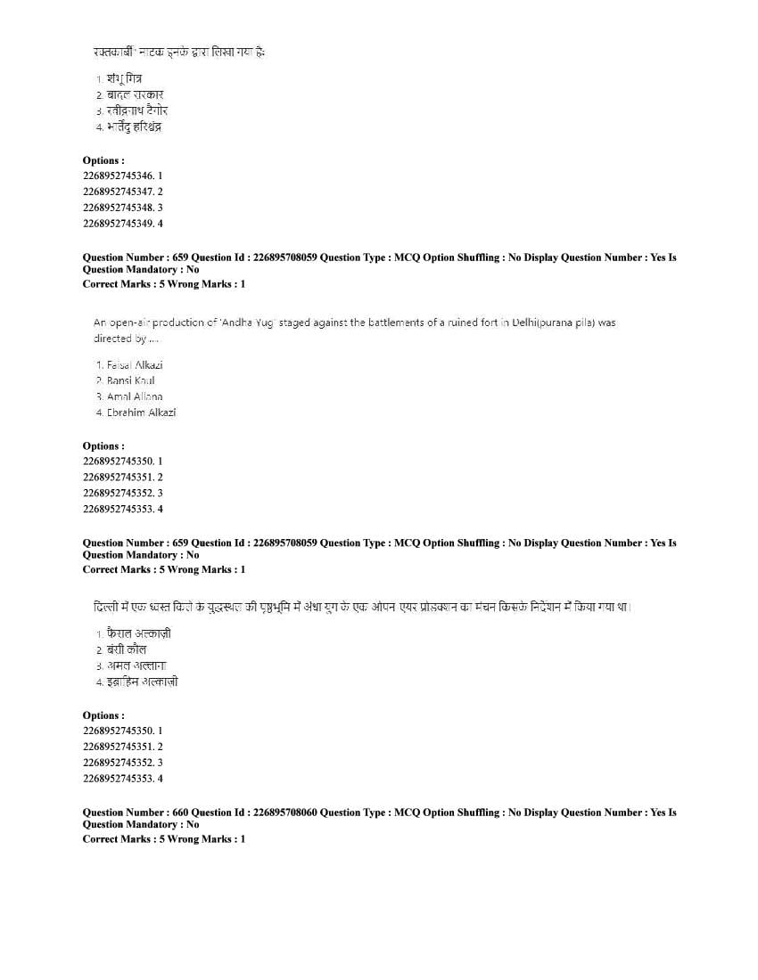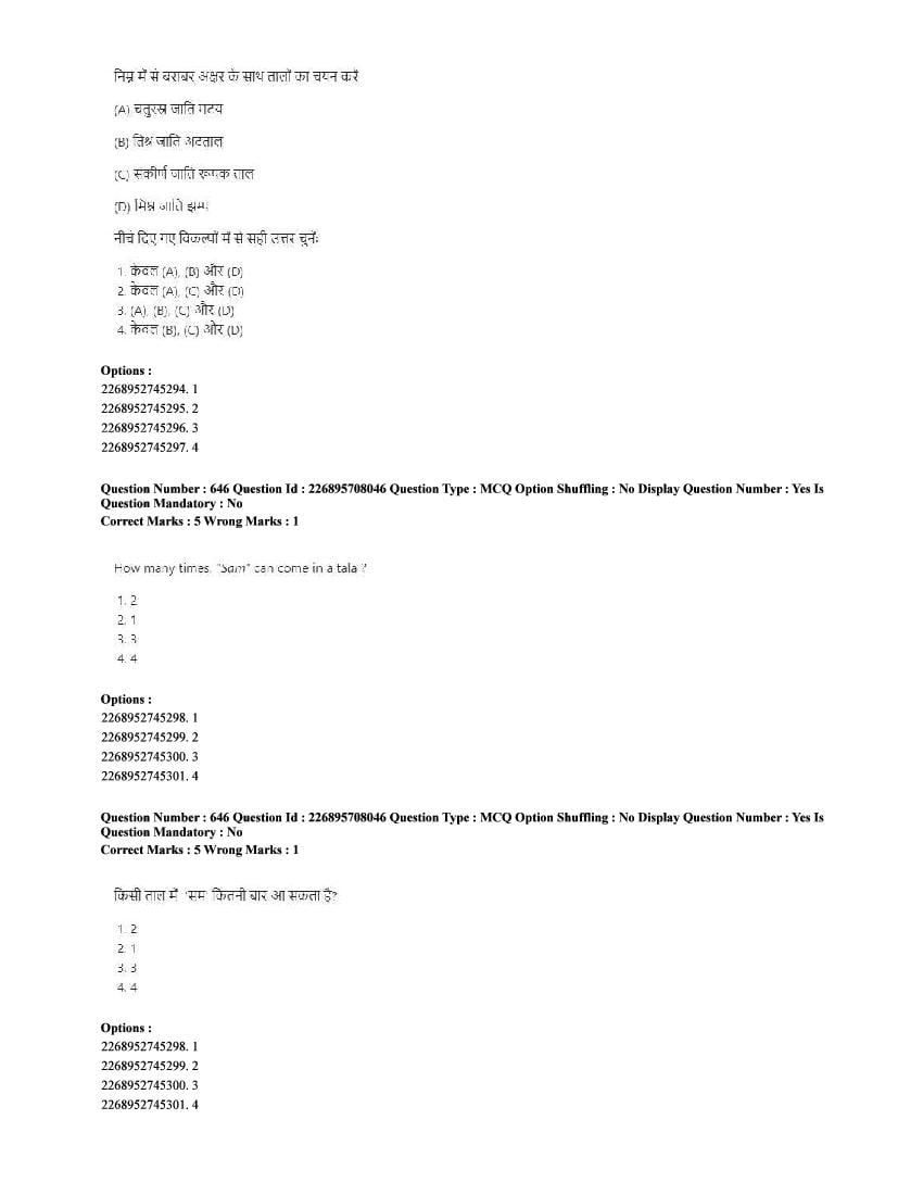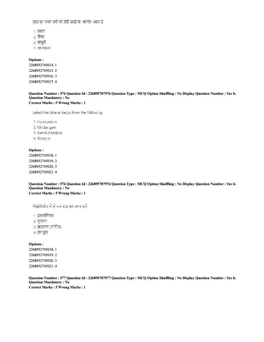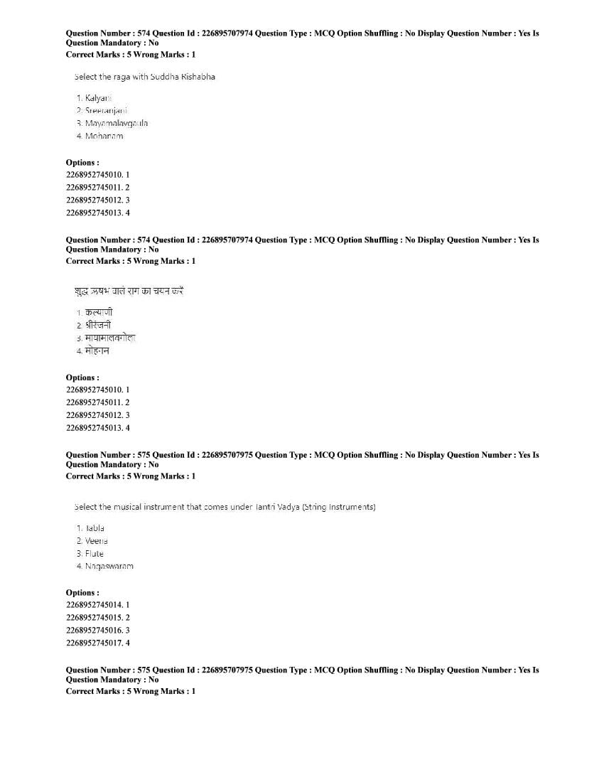 The CUET question paper of Performing Arts subject held in 2025 and previous years are as follows.