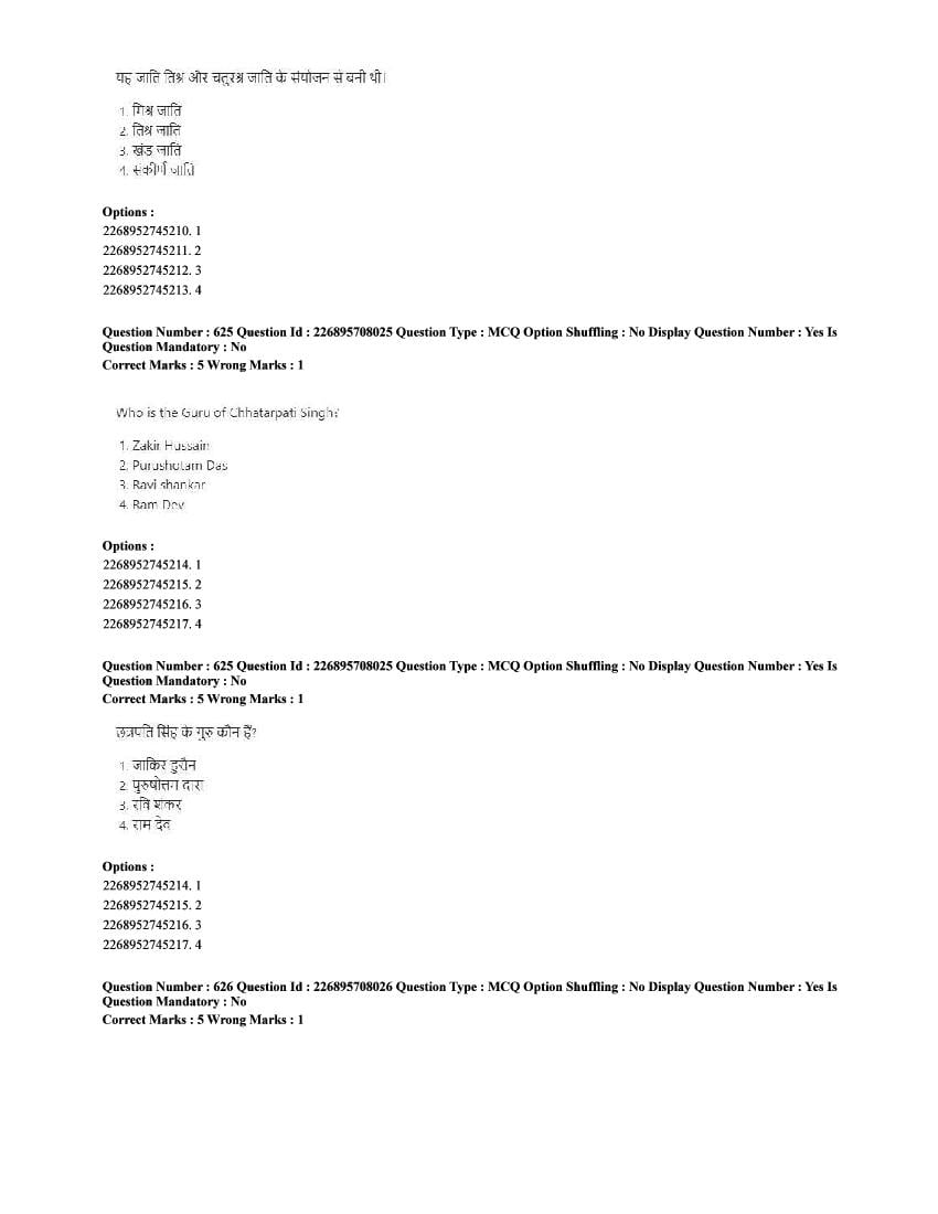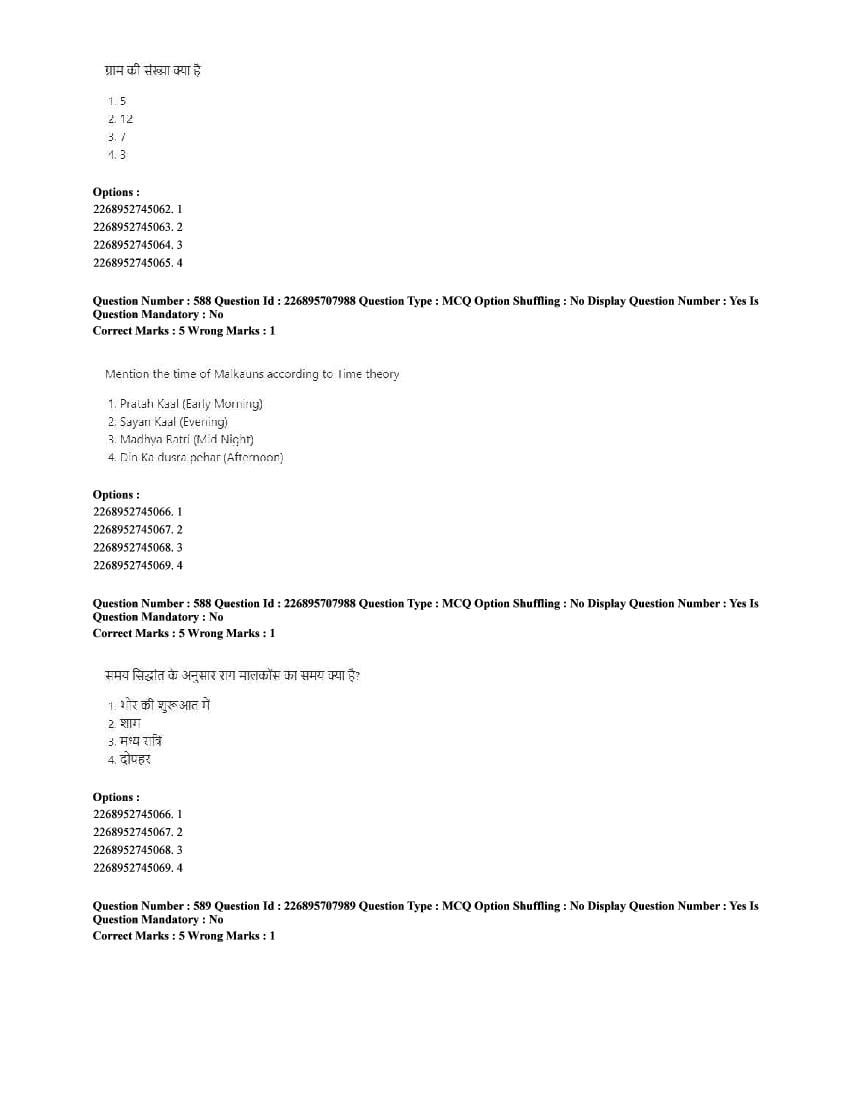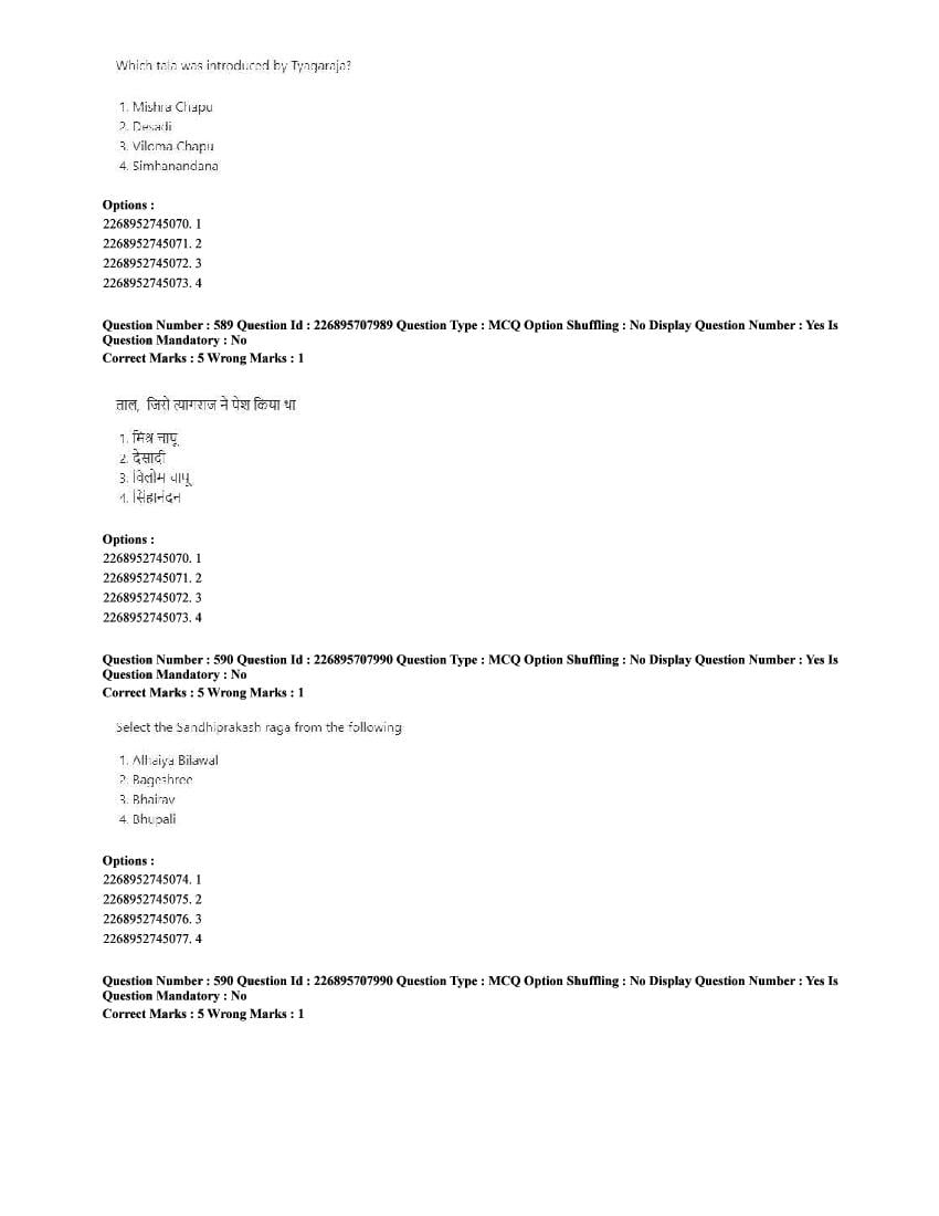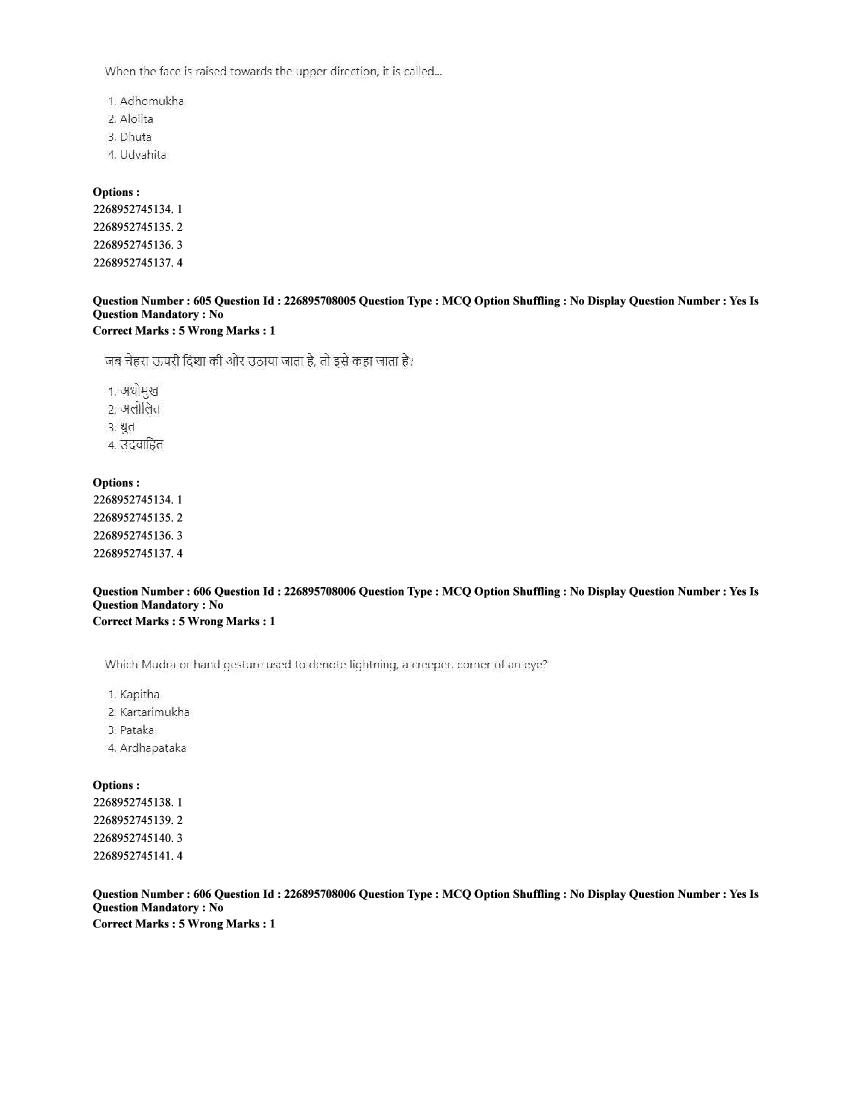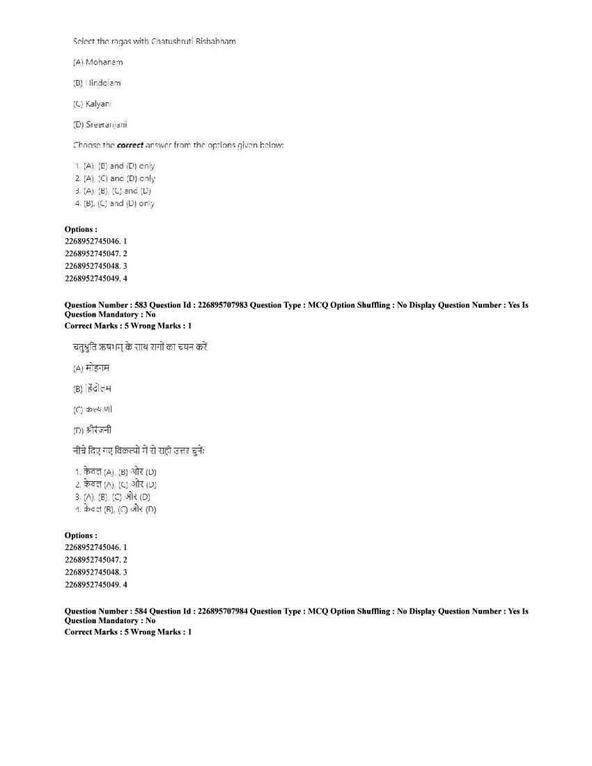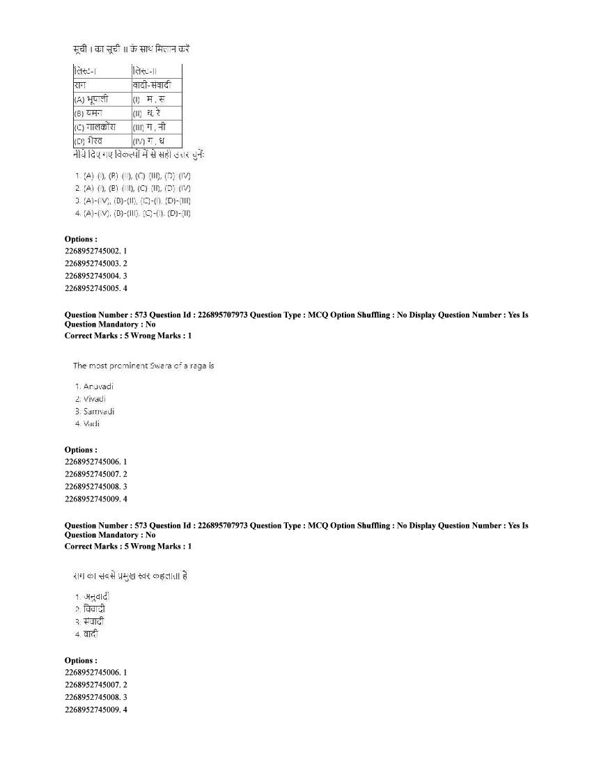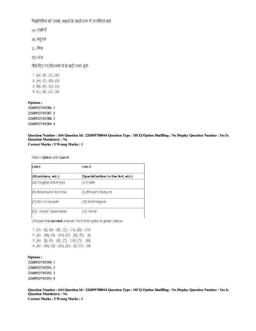 The CUET question paper of Performing Arts subject held in 2025 and previous years are as follows.