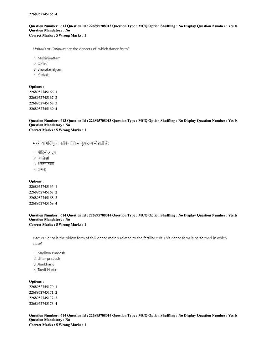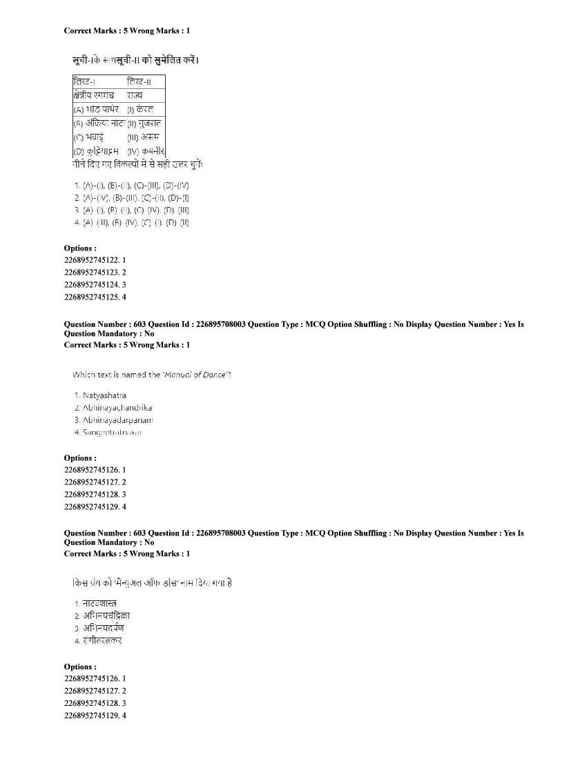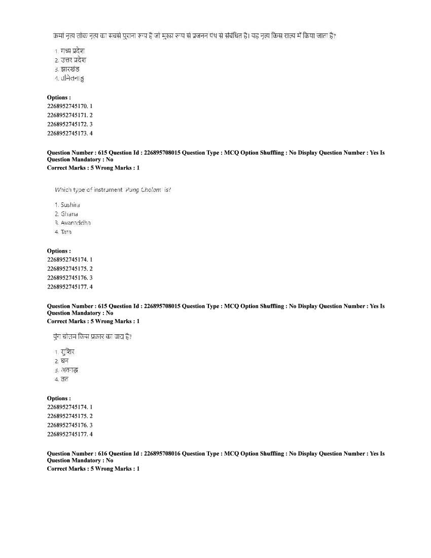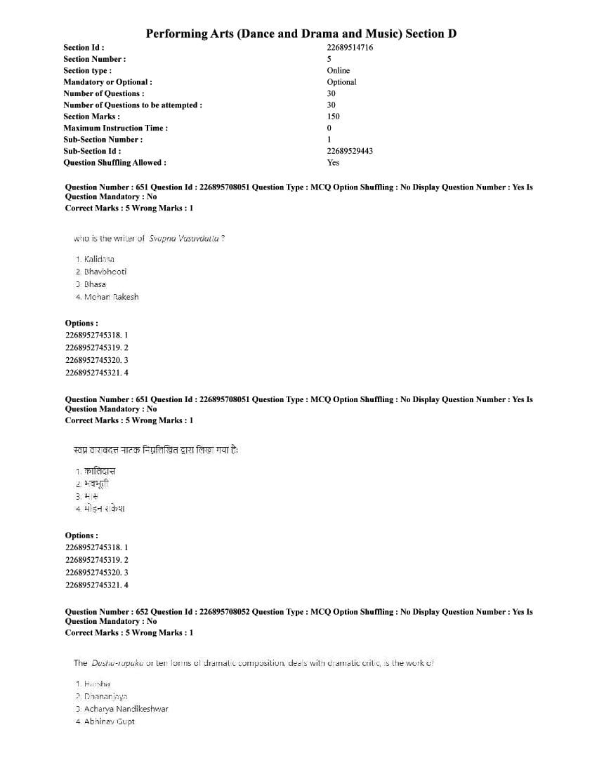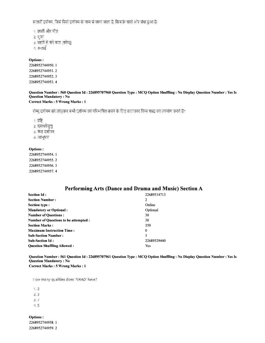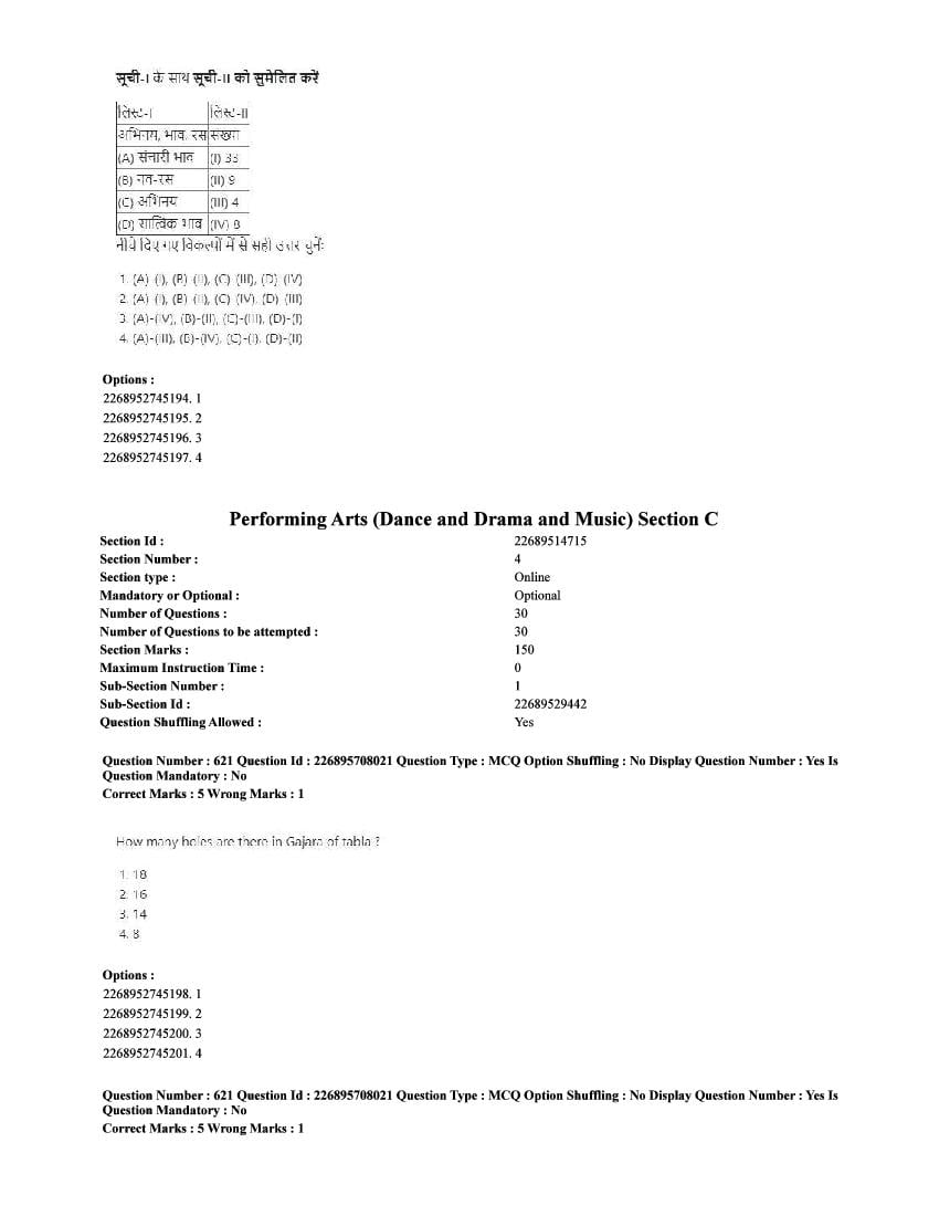 | Paper Here | CUET 2025 Question Paper of Performing Arts |