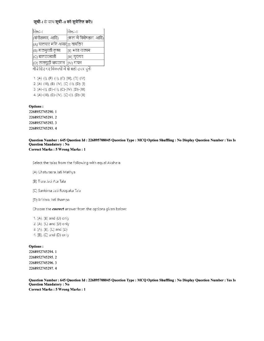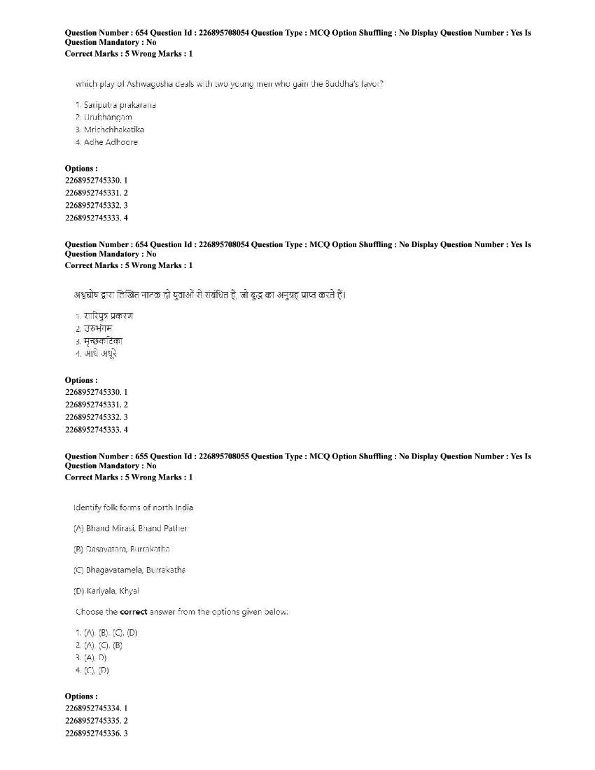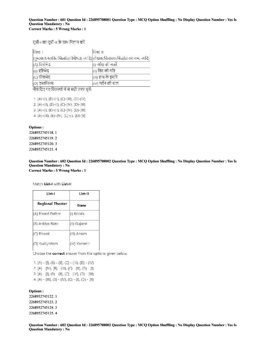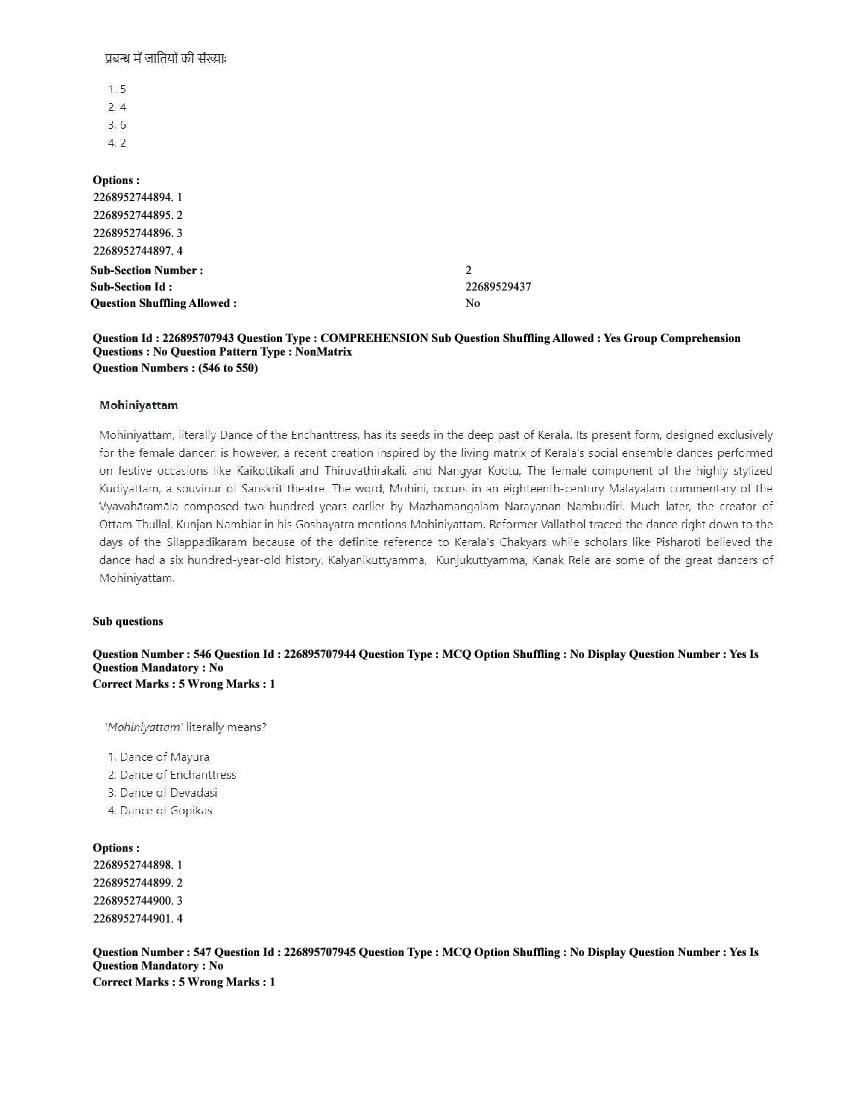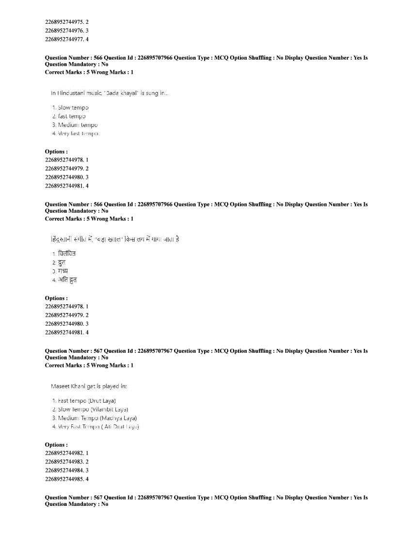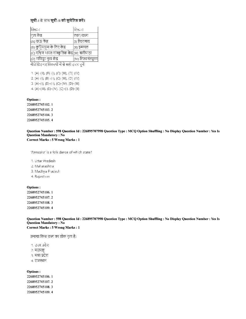 | Paper Here | CUET 2025 Question Paper of Performing Arts |