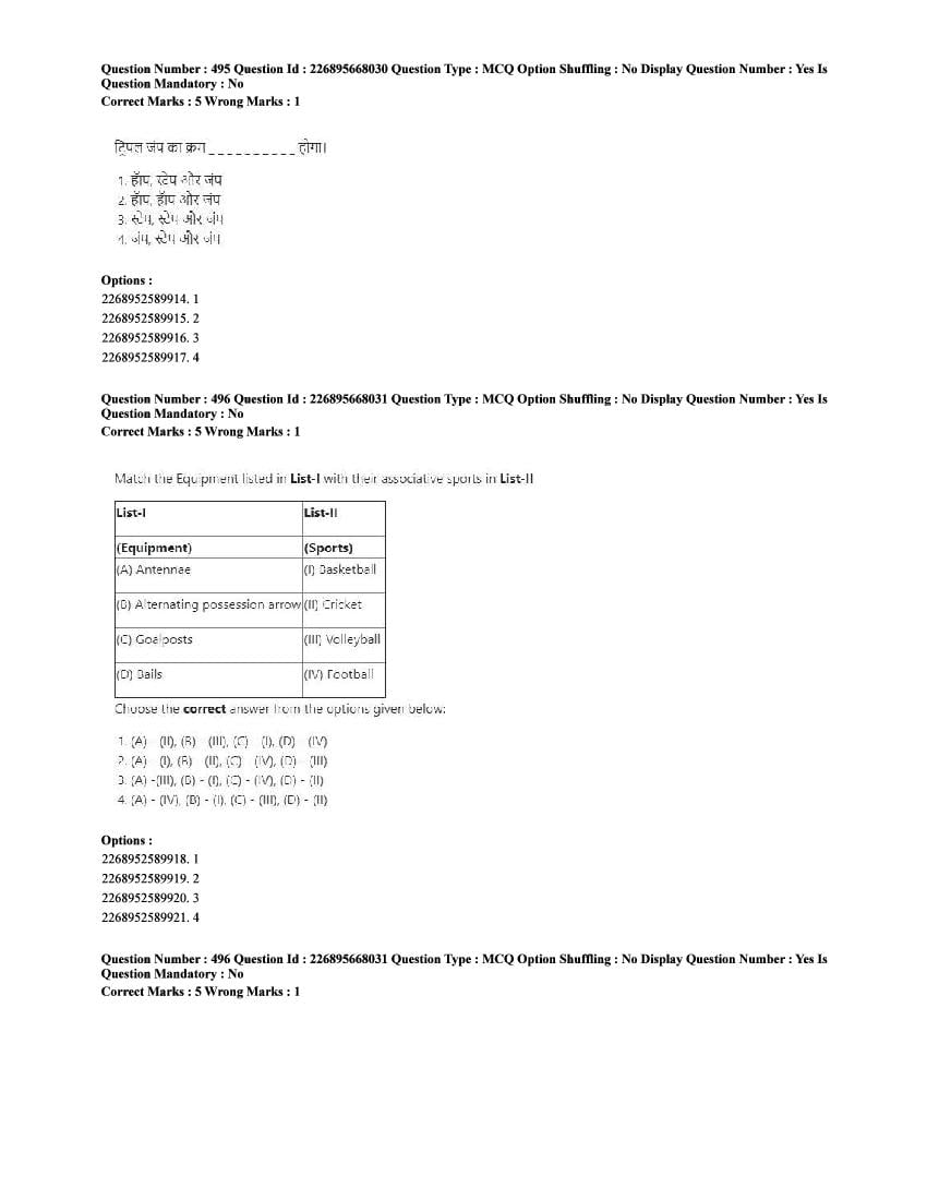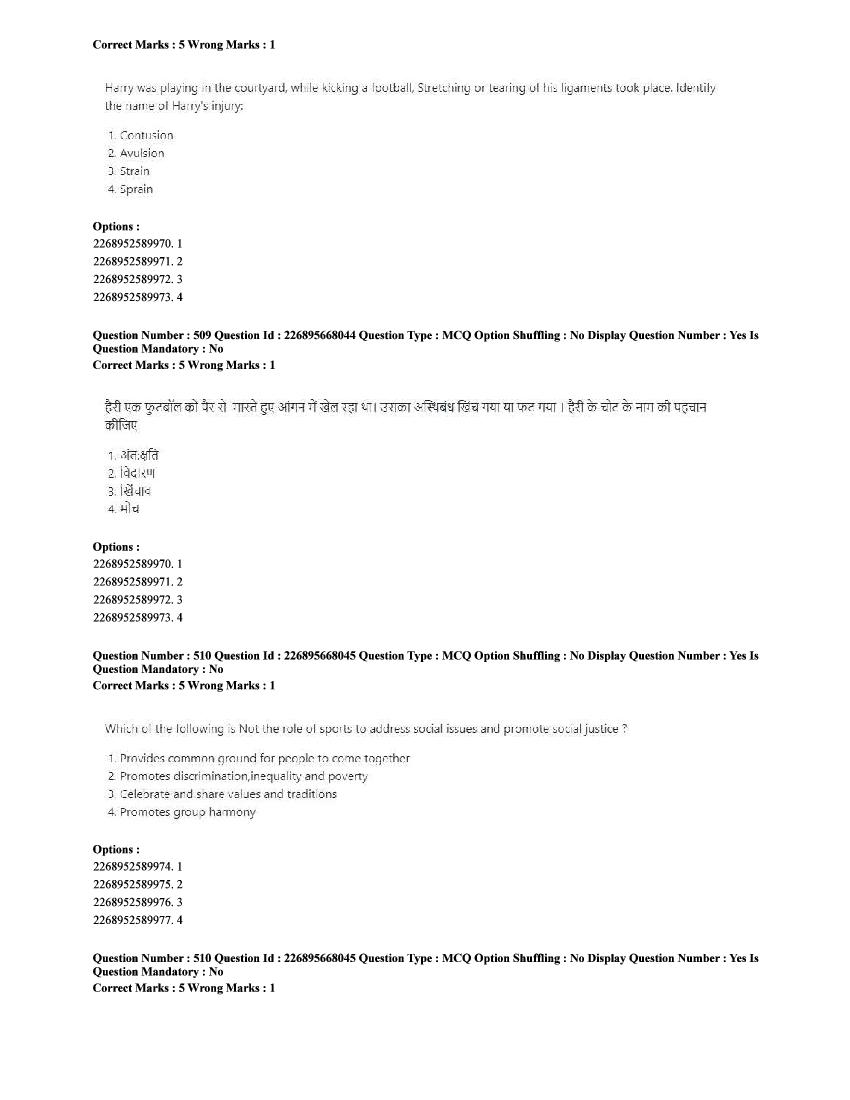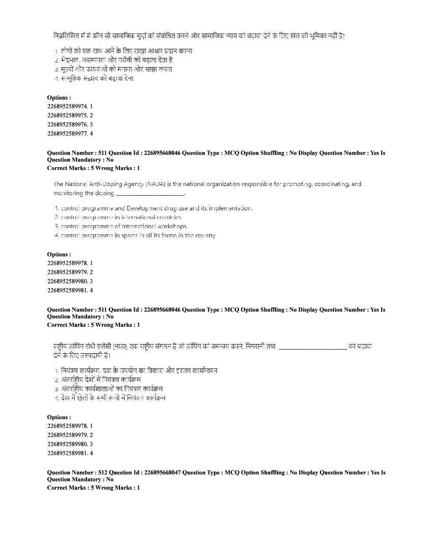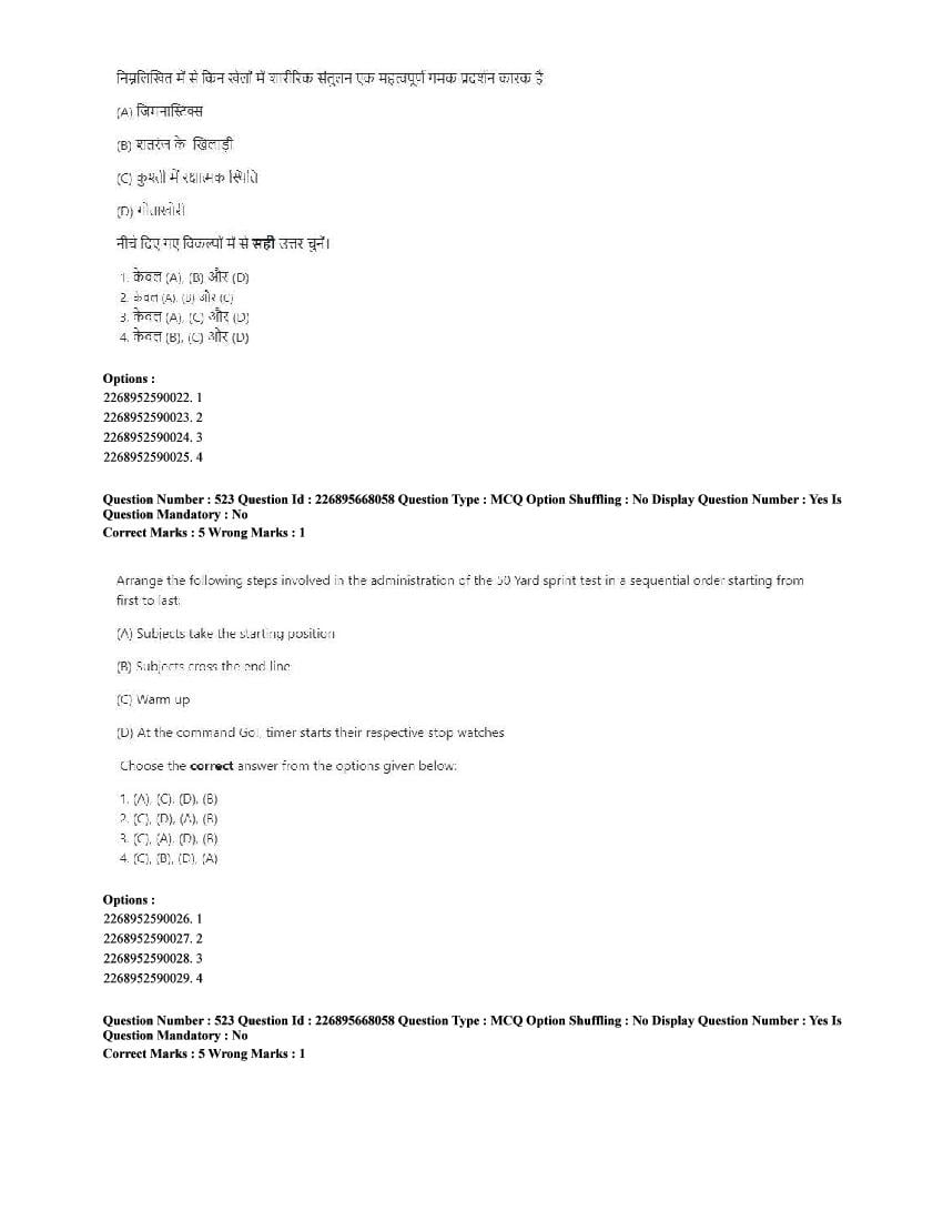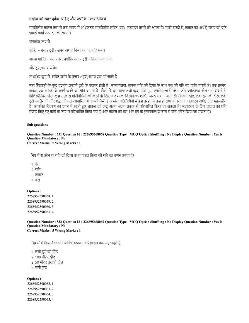 The CUET question paper of Physical Education subject held in 2025 and previous years are as follows.
