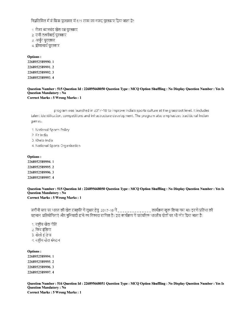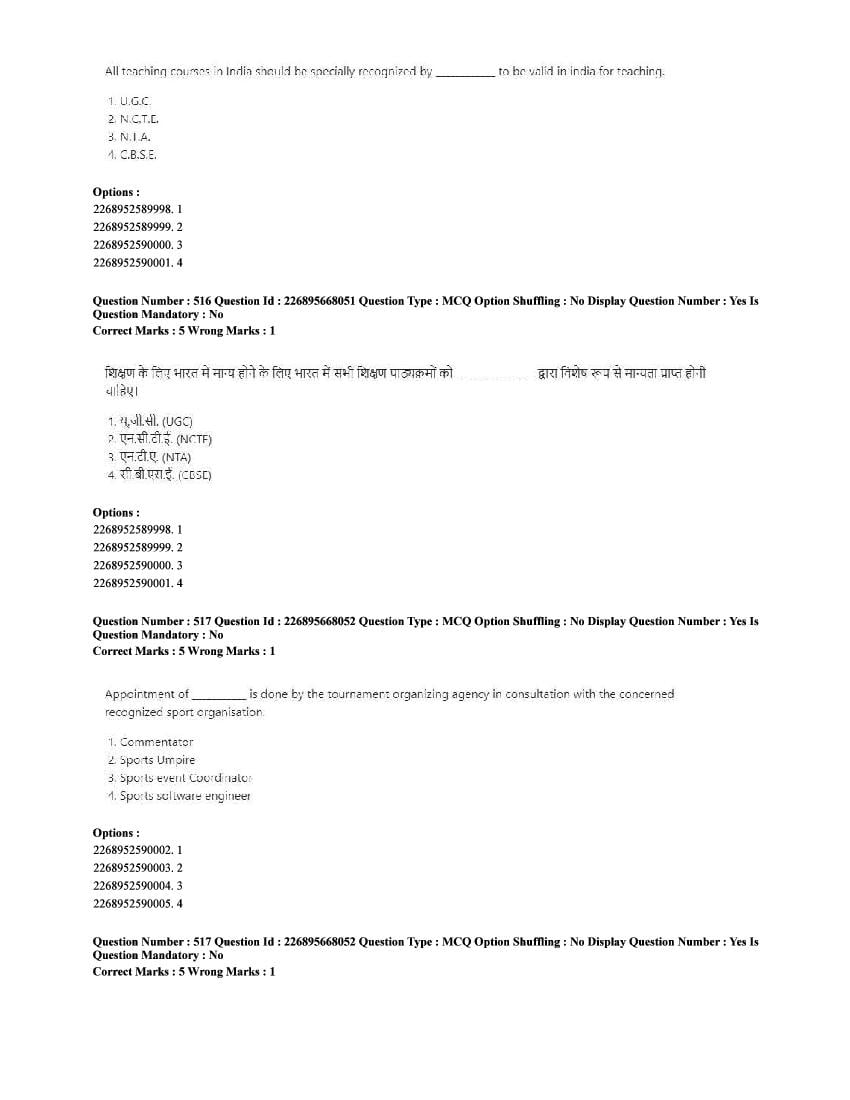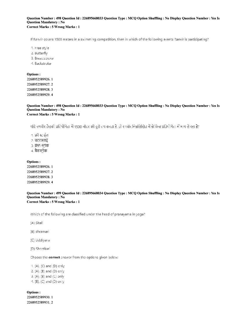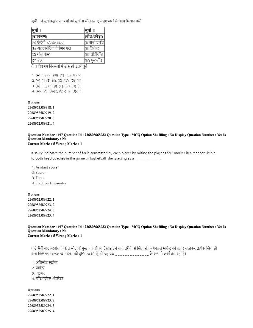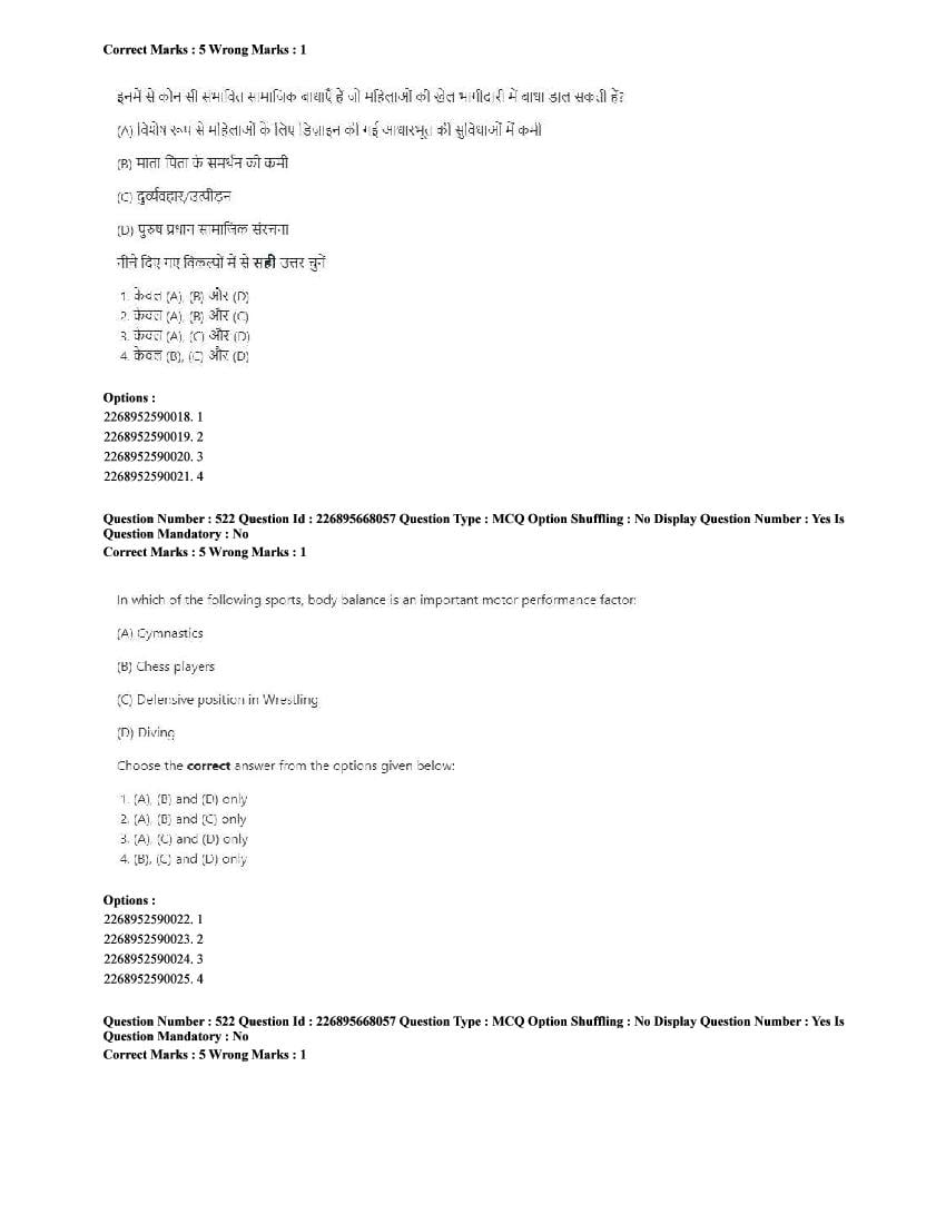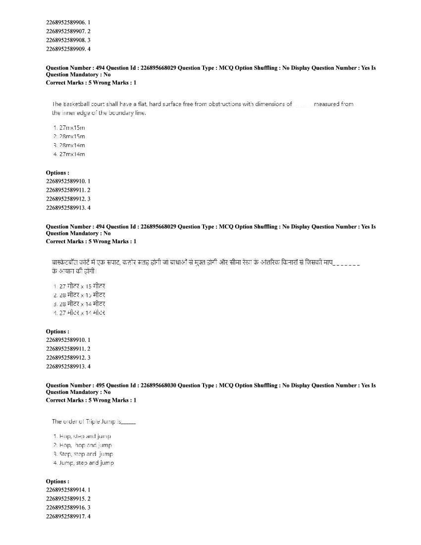 The CUET question paper of Physical Education subject held in 2025 and previous years are as follows.
