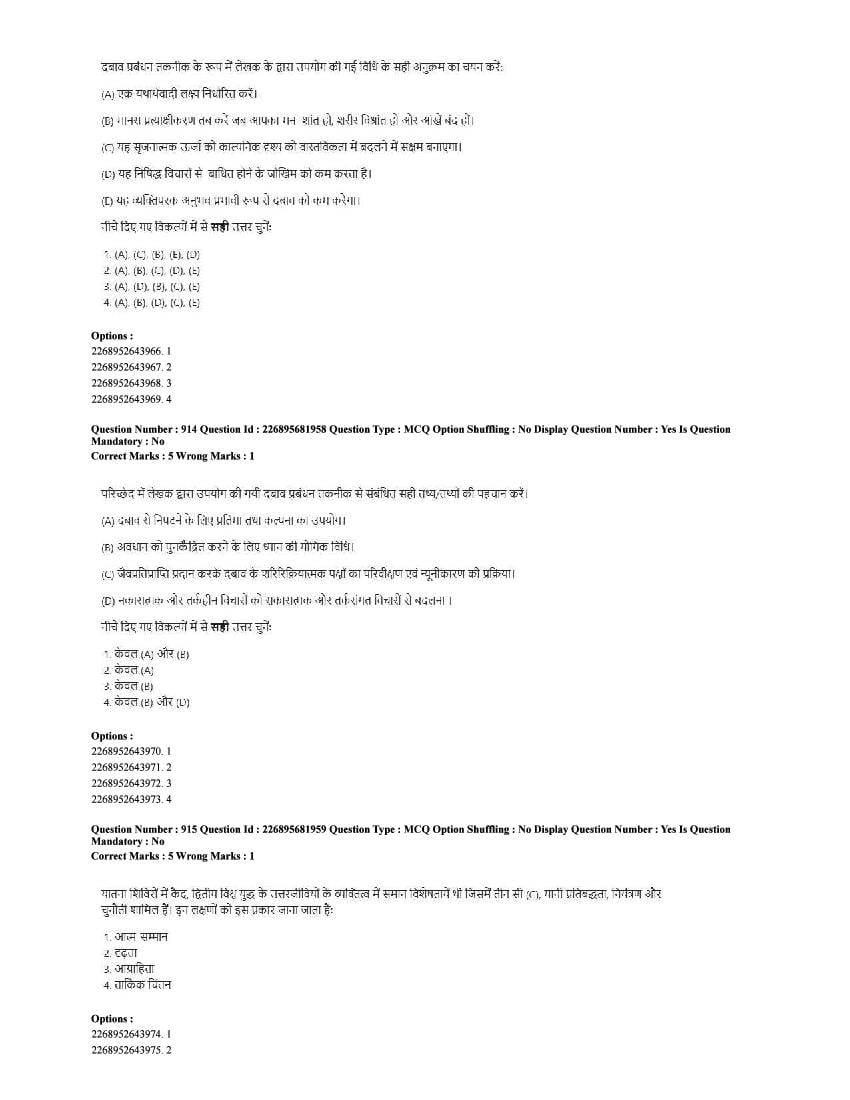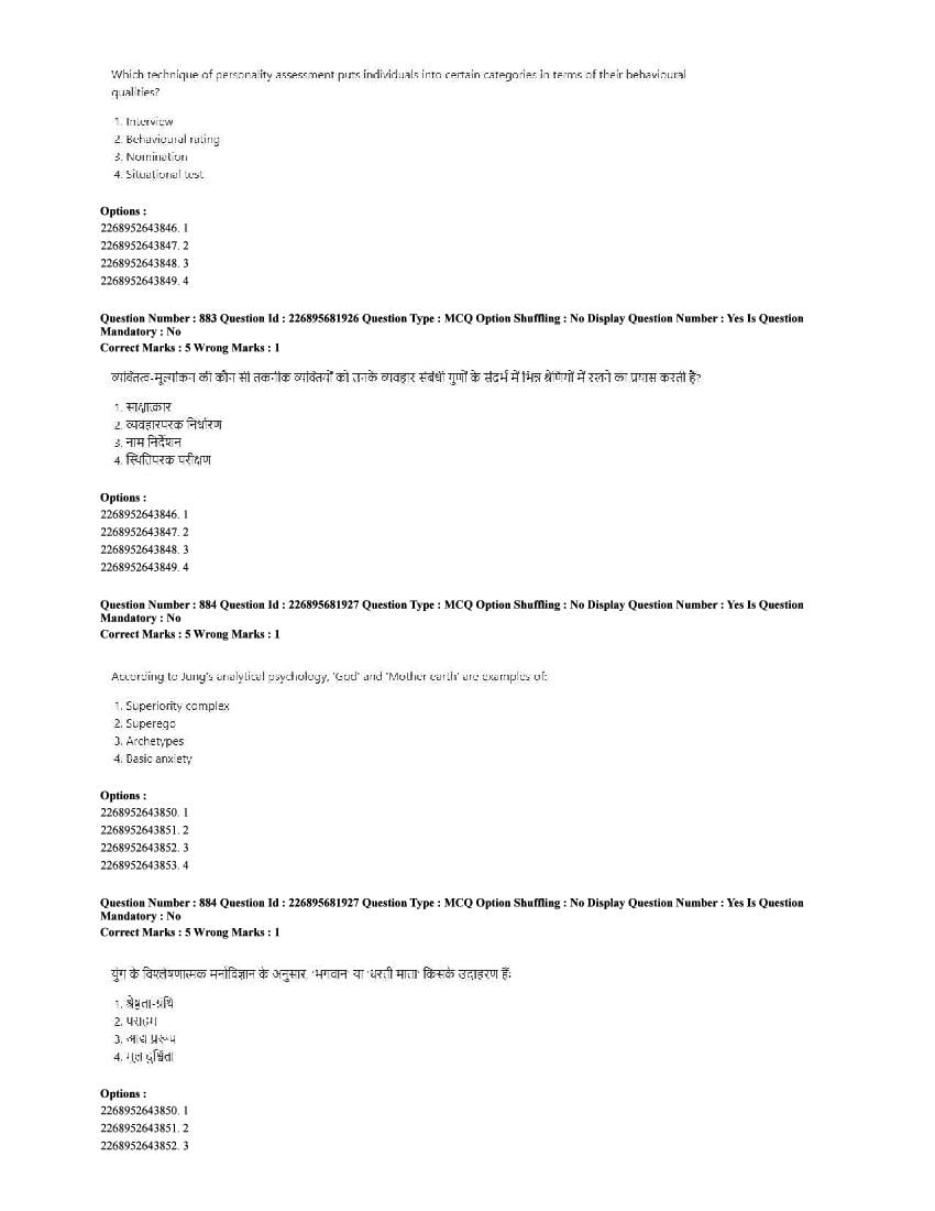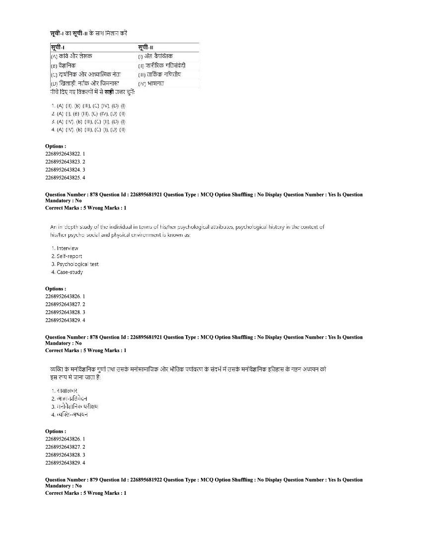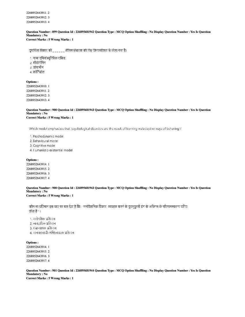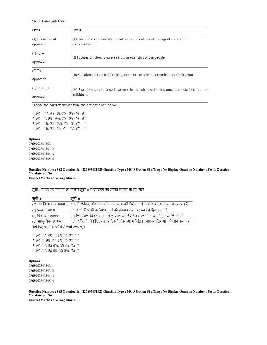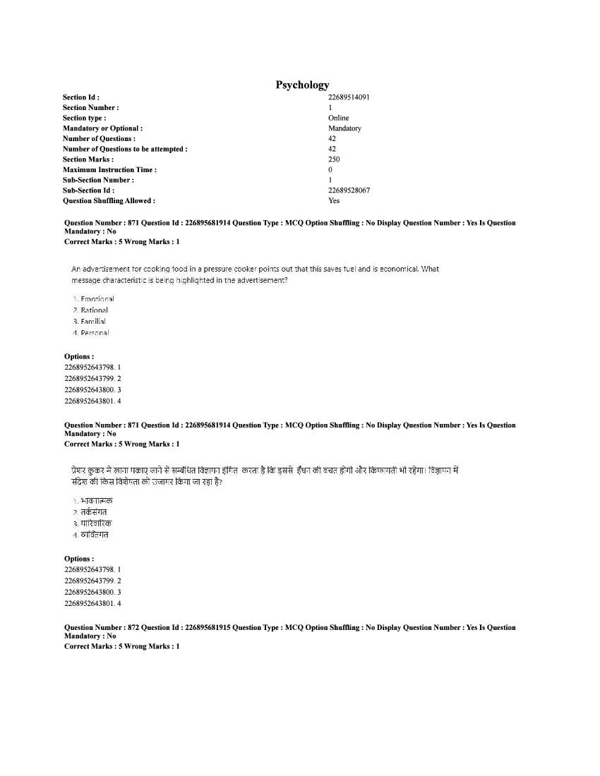 The CUET question paper of Psychology subject held in 2025 and previous years are as follows.