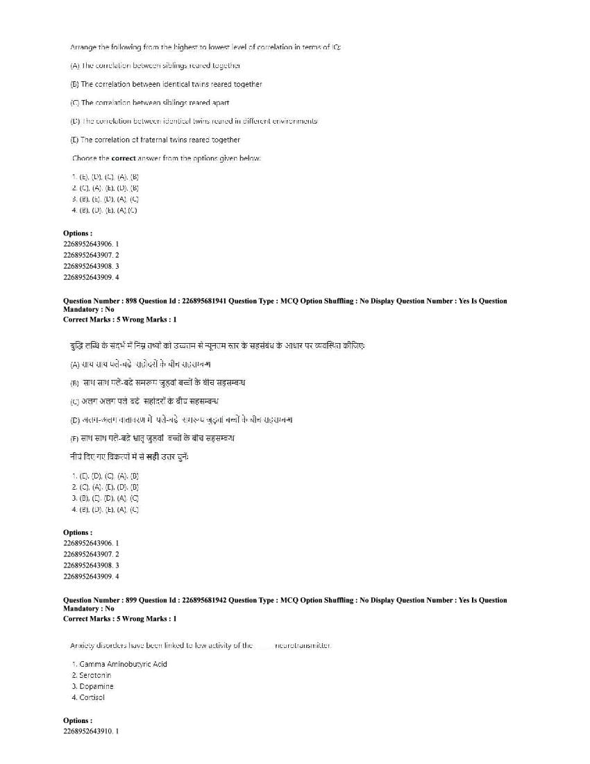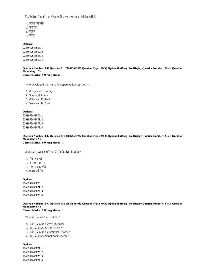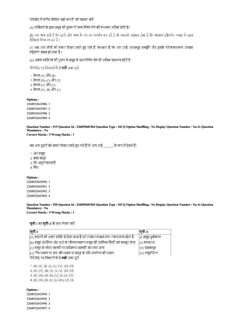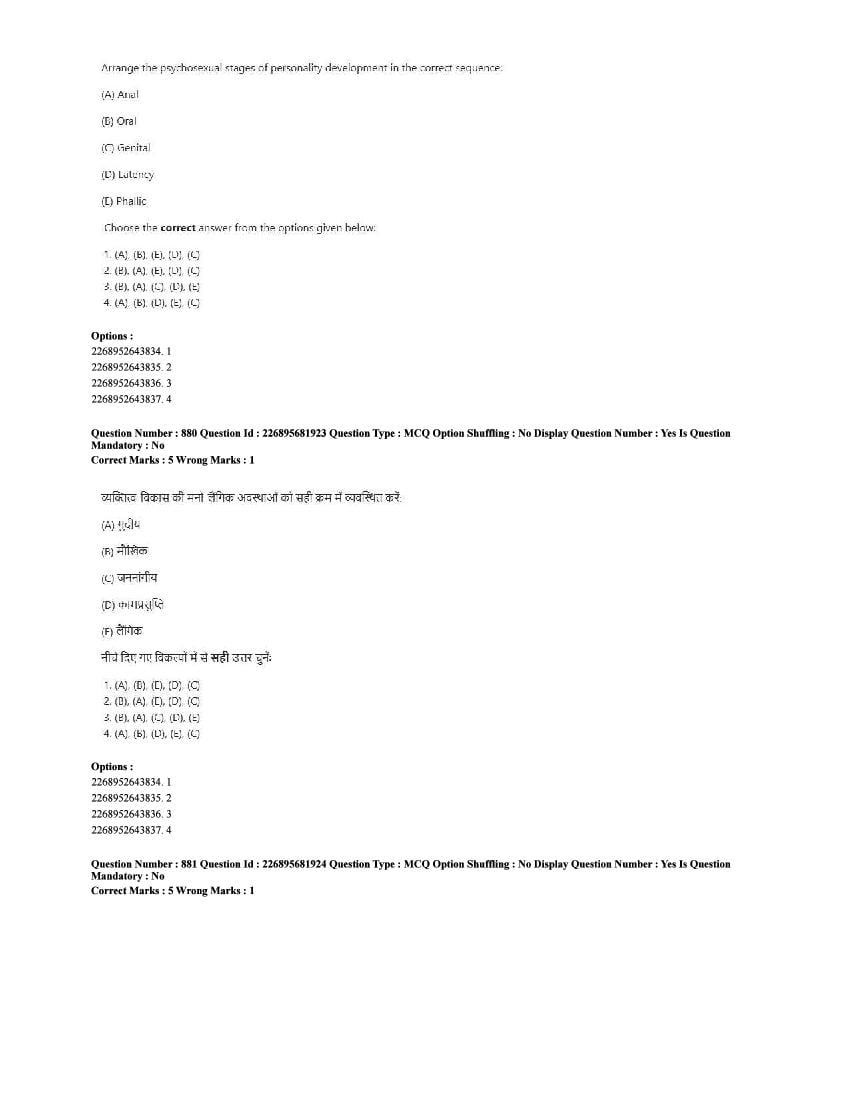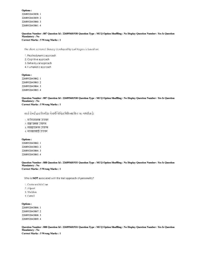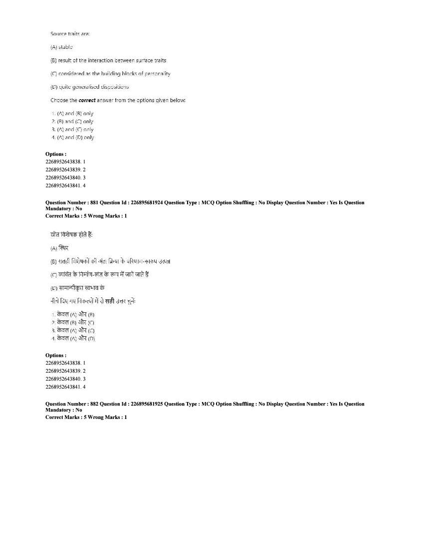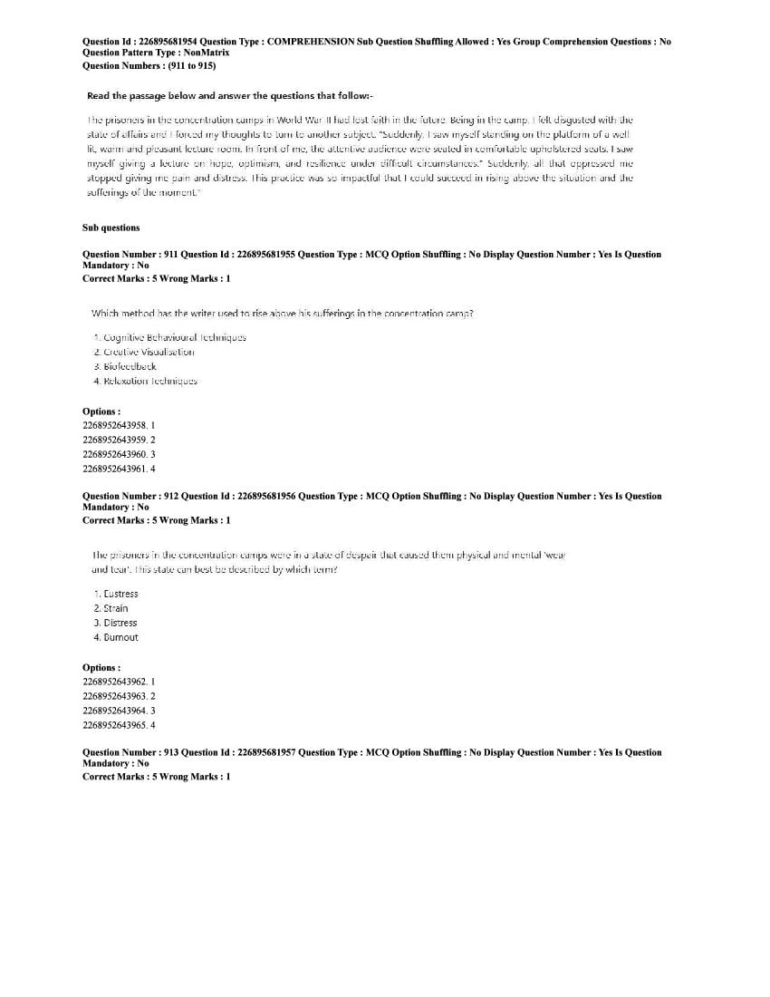 The CUET question paper of Psychology subject held in 2025 and previous years are as follows.