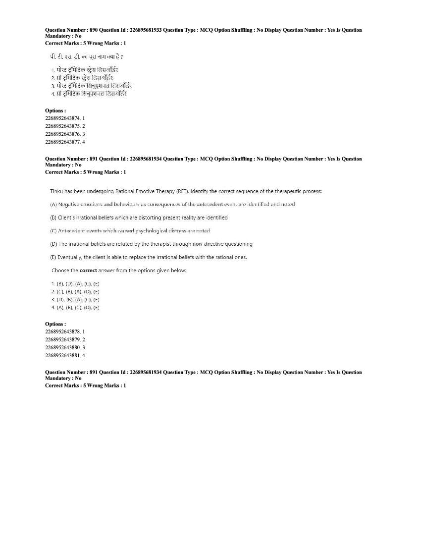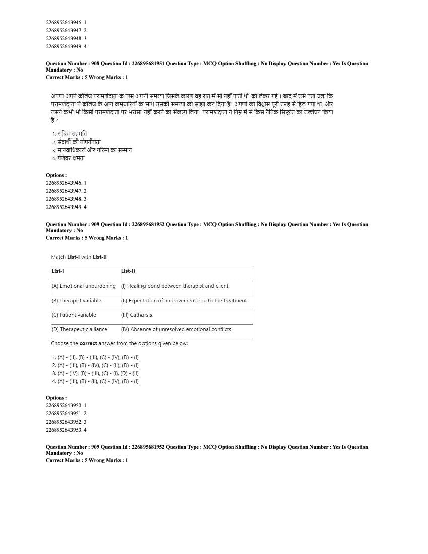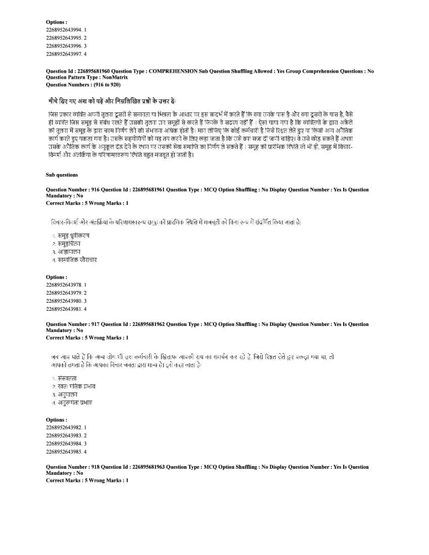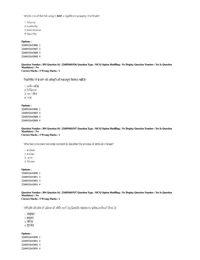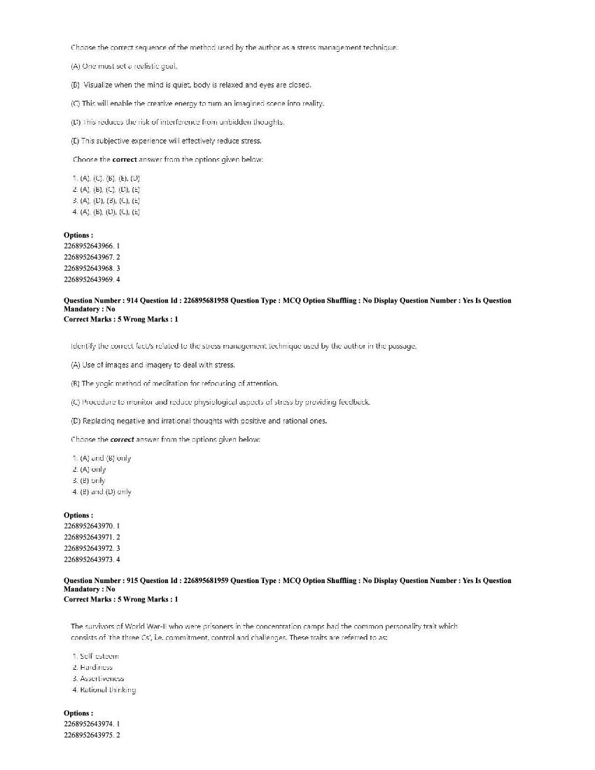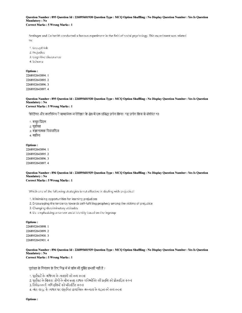 The CUET question paper of Psychology subject held in 2025 and previous years are as follows.