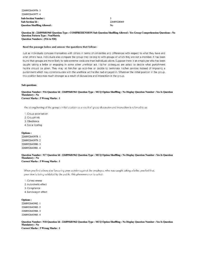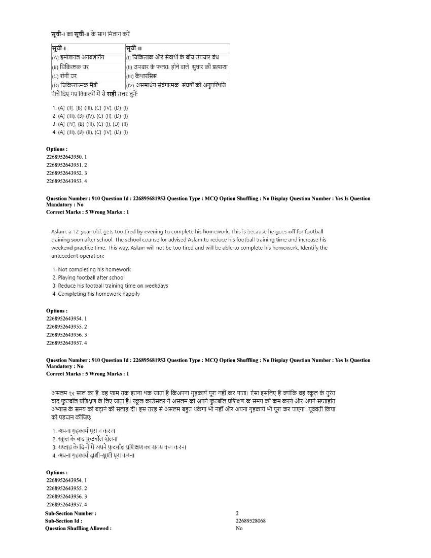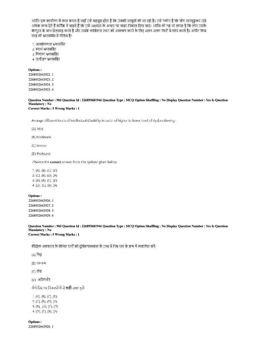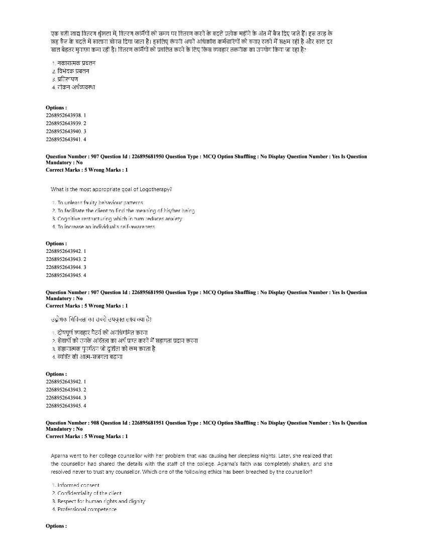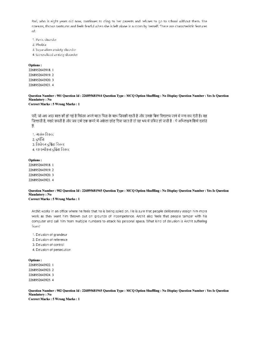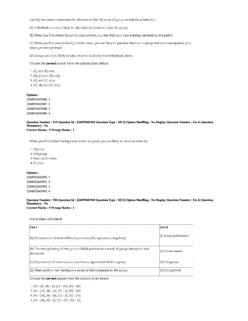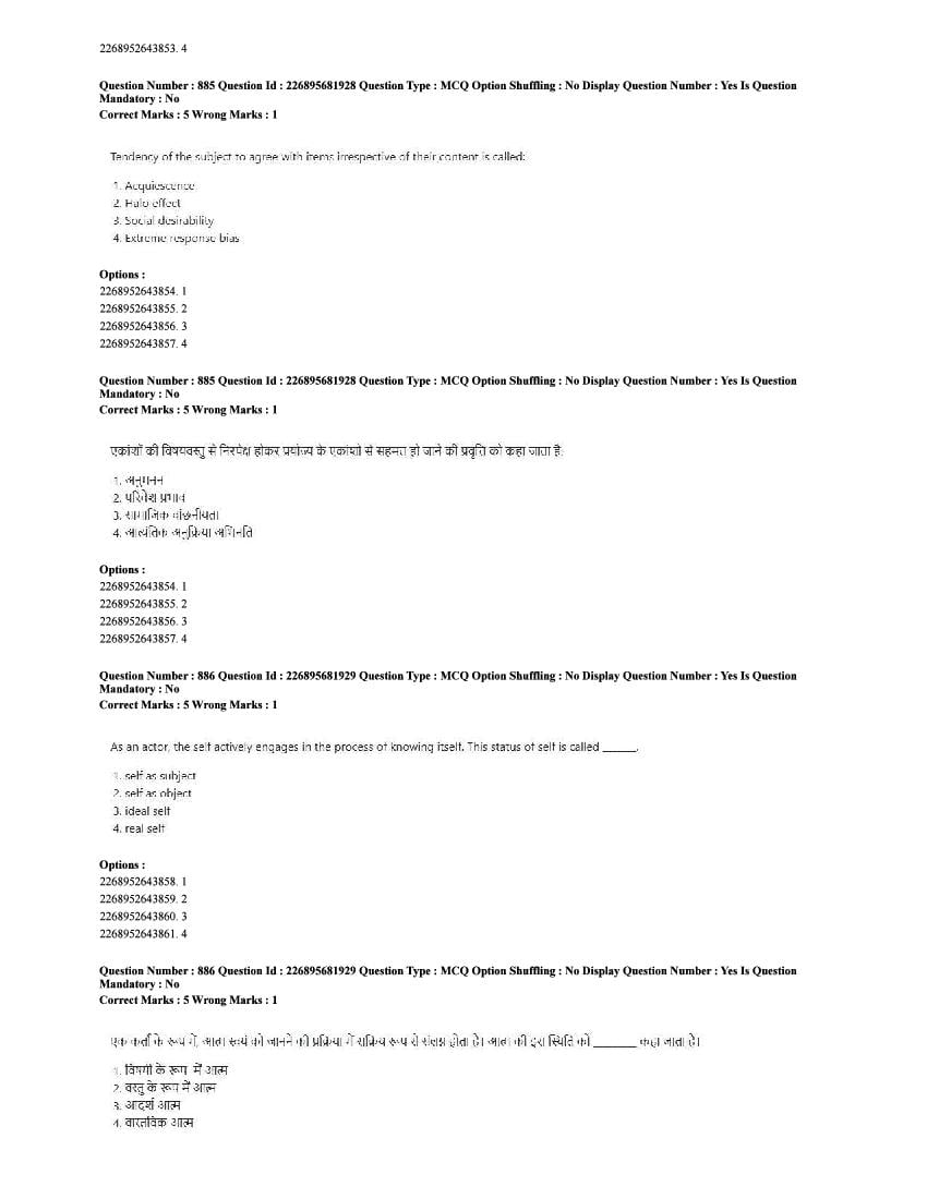 The CUET question paper of Psychology subject held in 2025 and previous years are as follows.