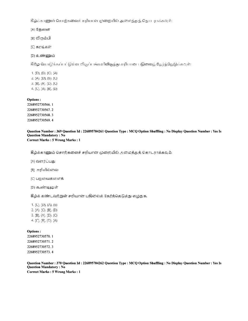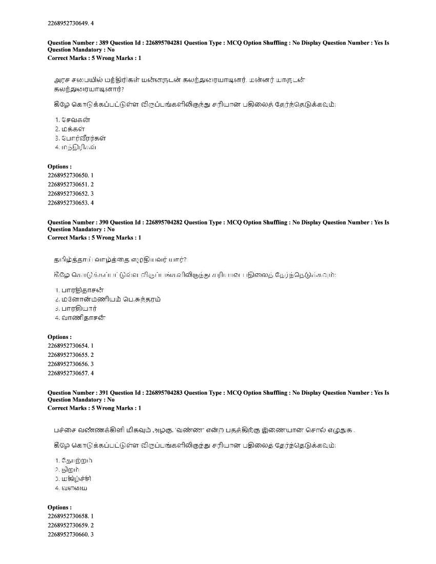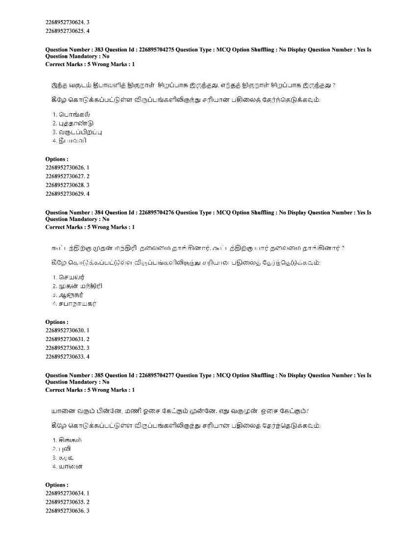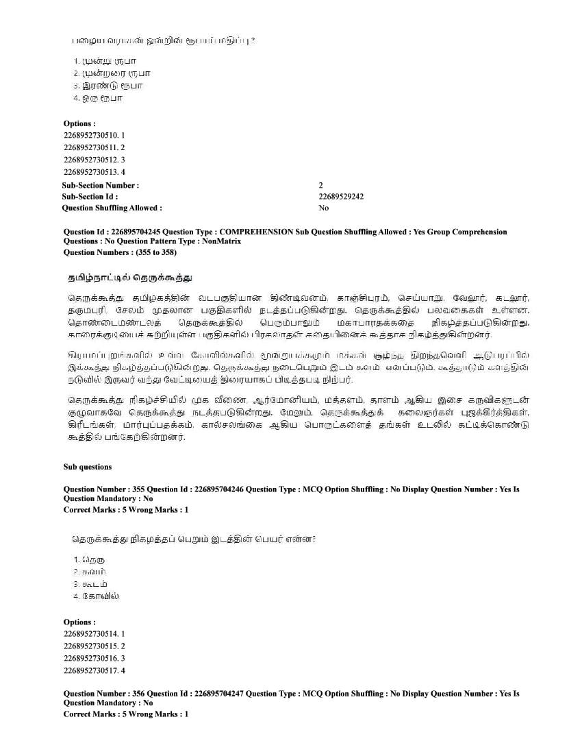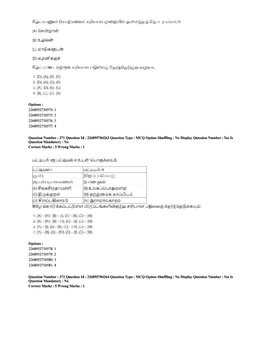 The CUET question paper of Tamil subject held in 2025 and previous years are as follows.