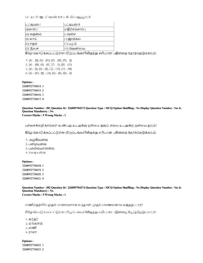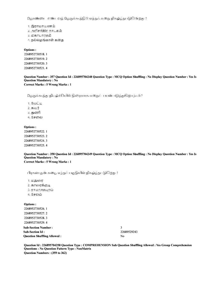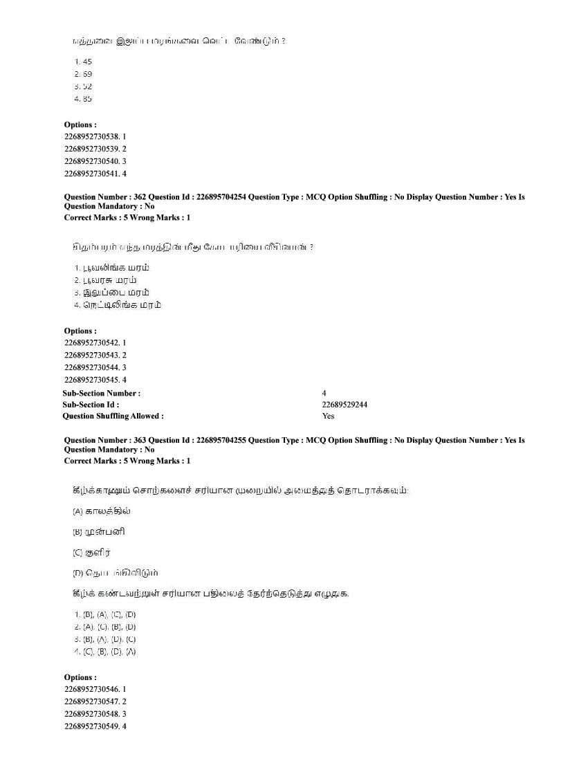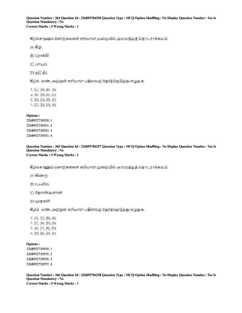 The CUET question paper of Tamil subject held in 2025 and previous years are as follows.