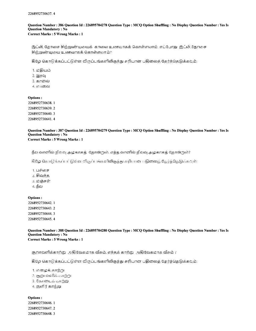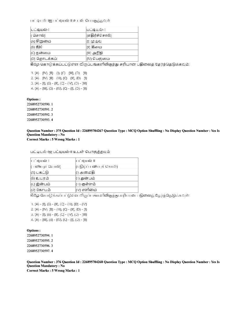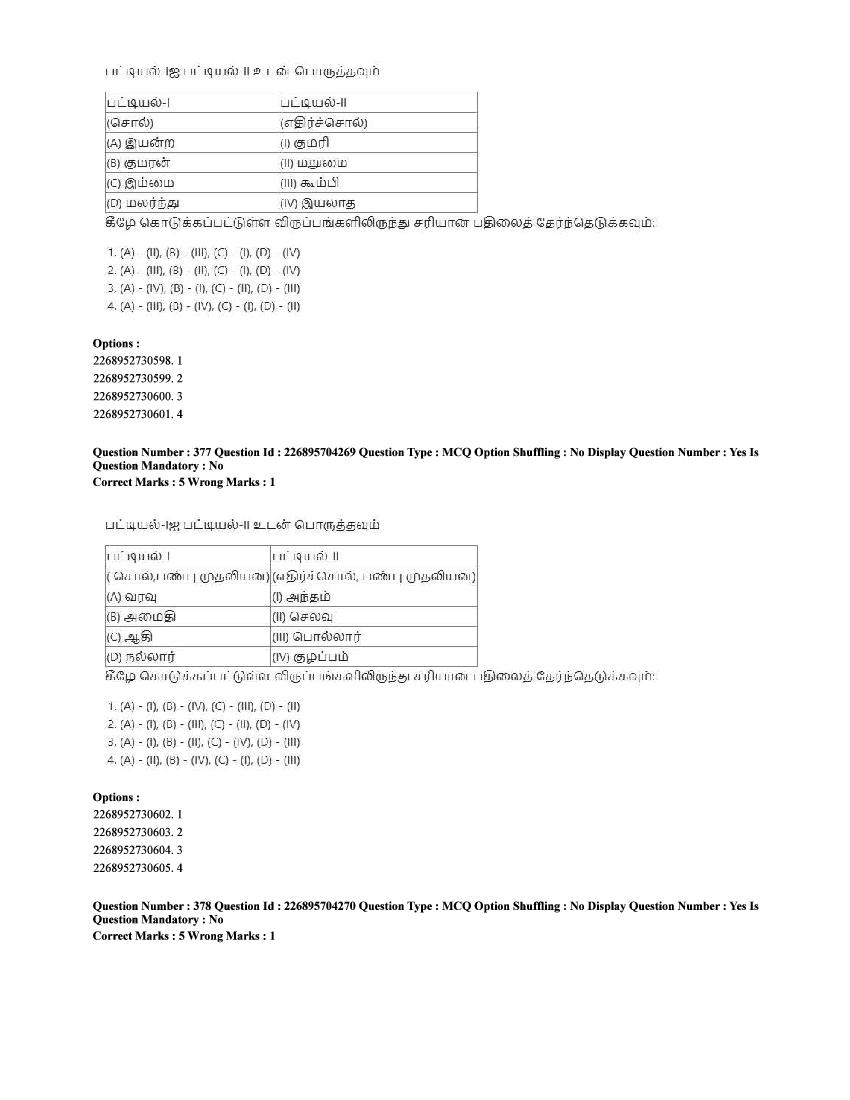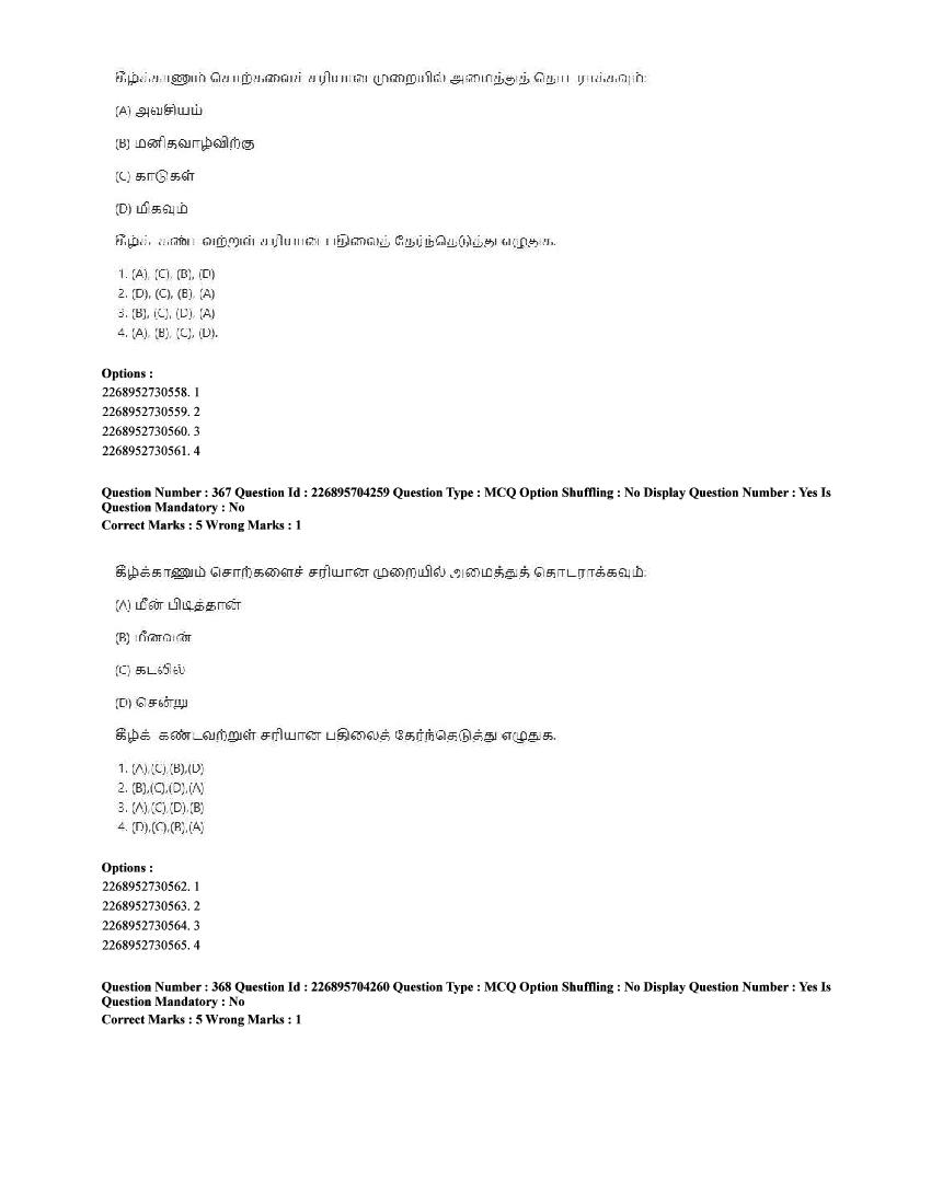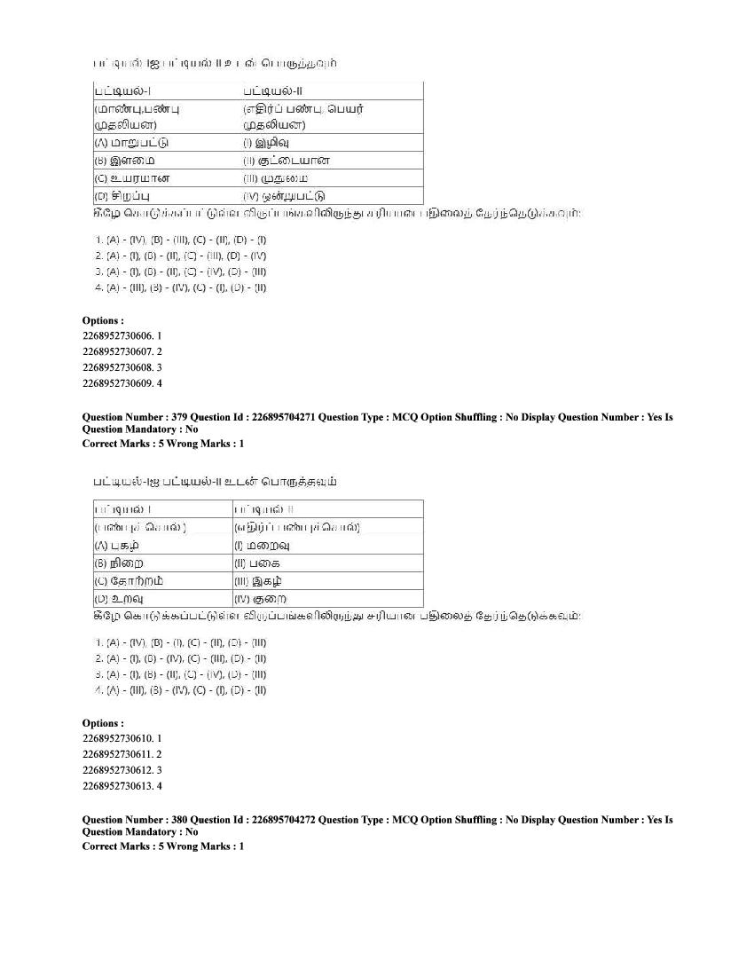 The CUET question paper of Tamil subject held in 2025 and previous years are as follows.