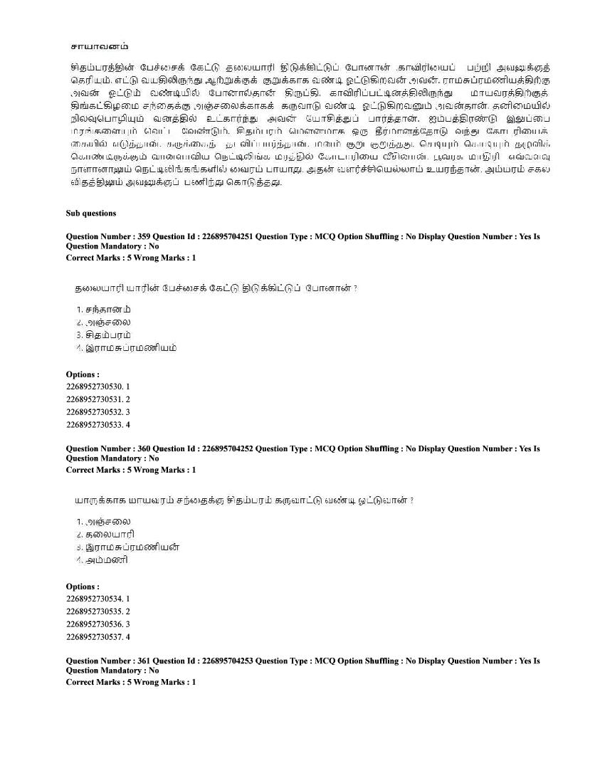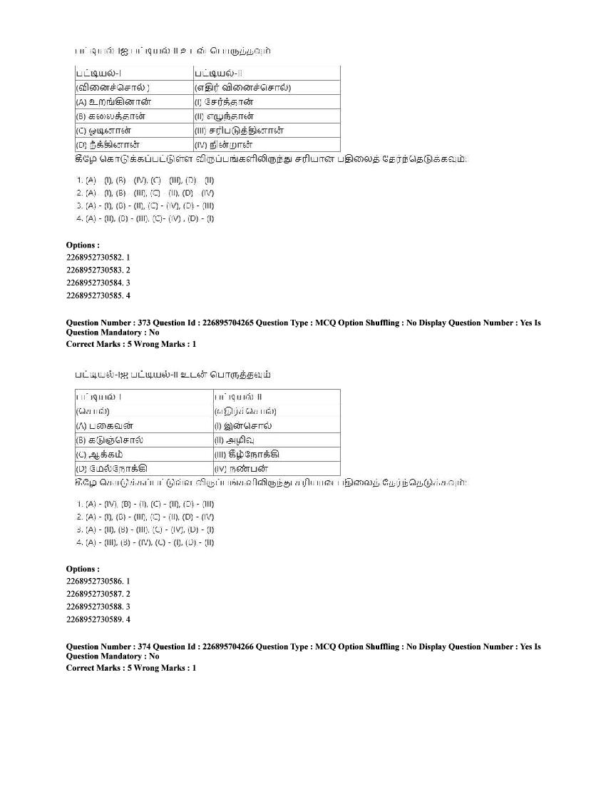 CUET Tamil Question Paper 2025