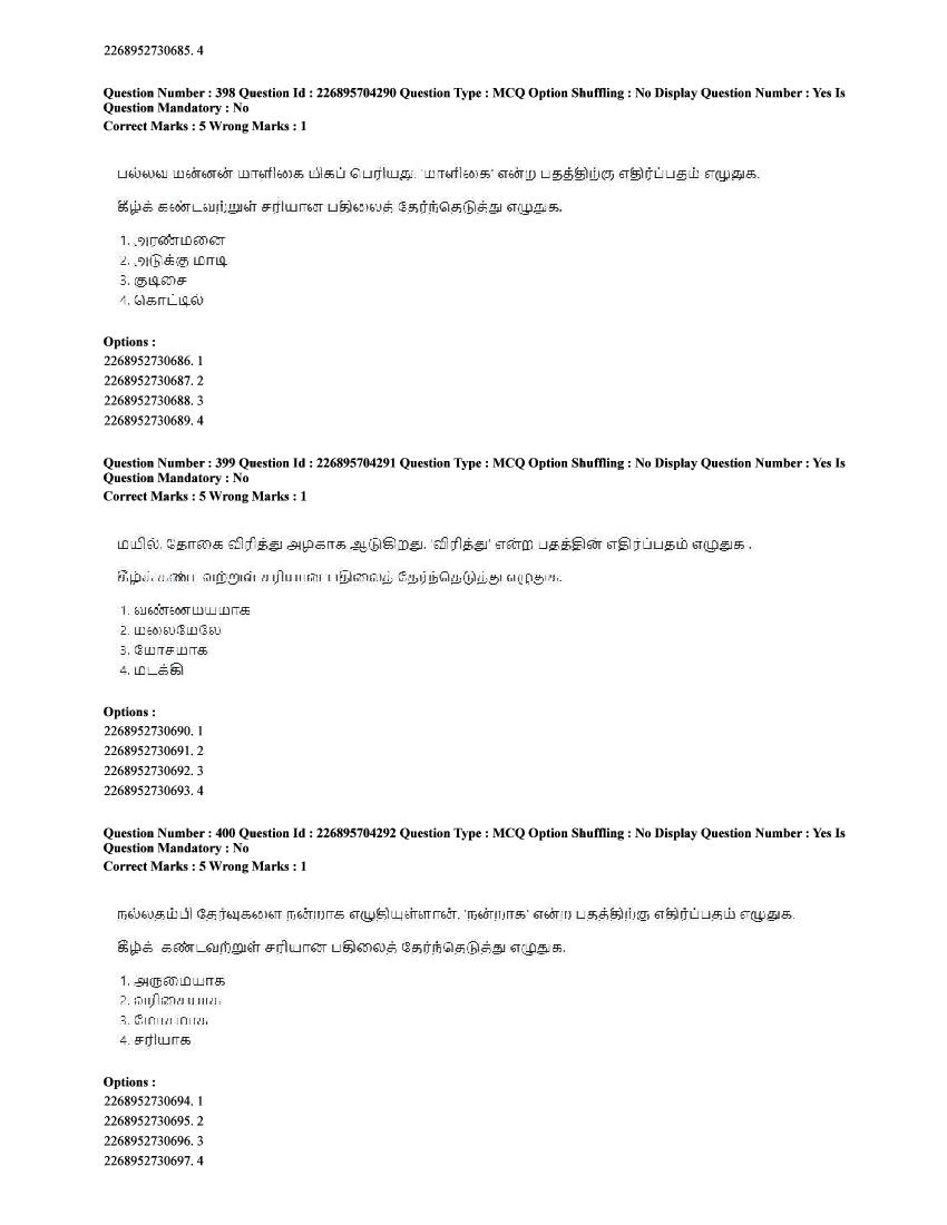 CUET UG 2025 Question Paper Tamil View Download