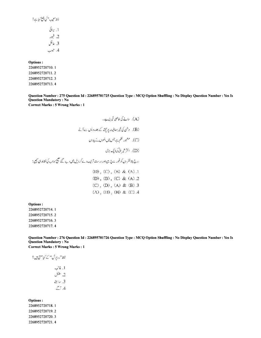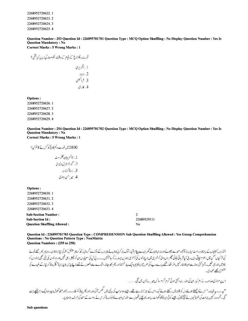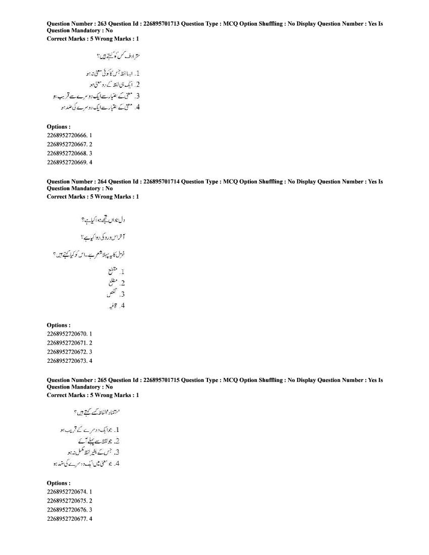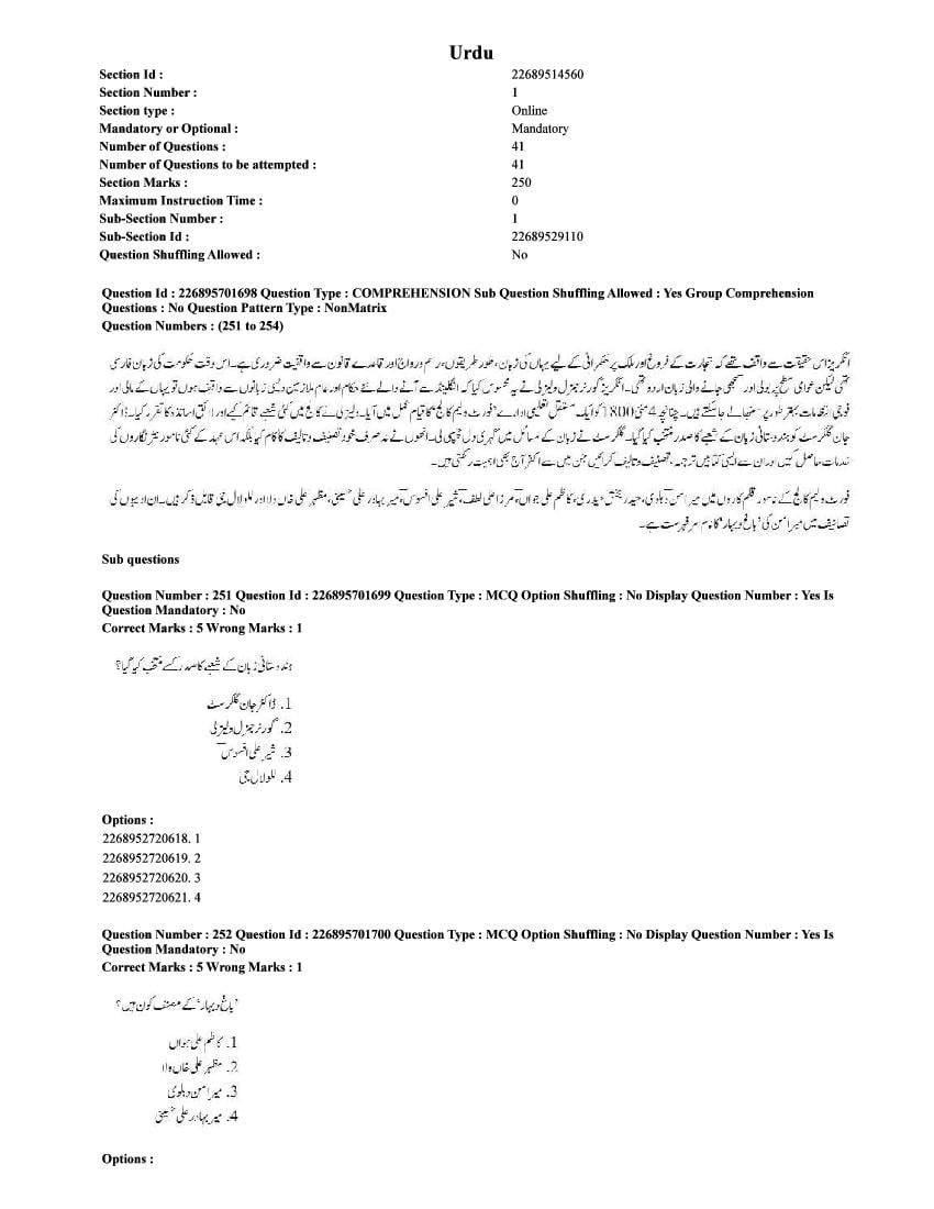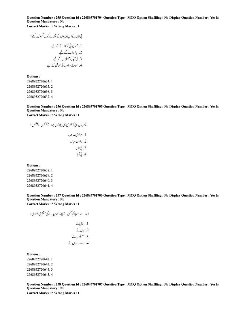 The CUET question paper of Urdu subject held in 2025 and previous years are as follows.