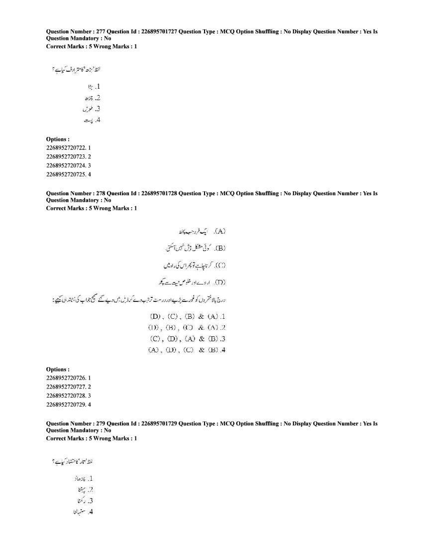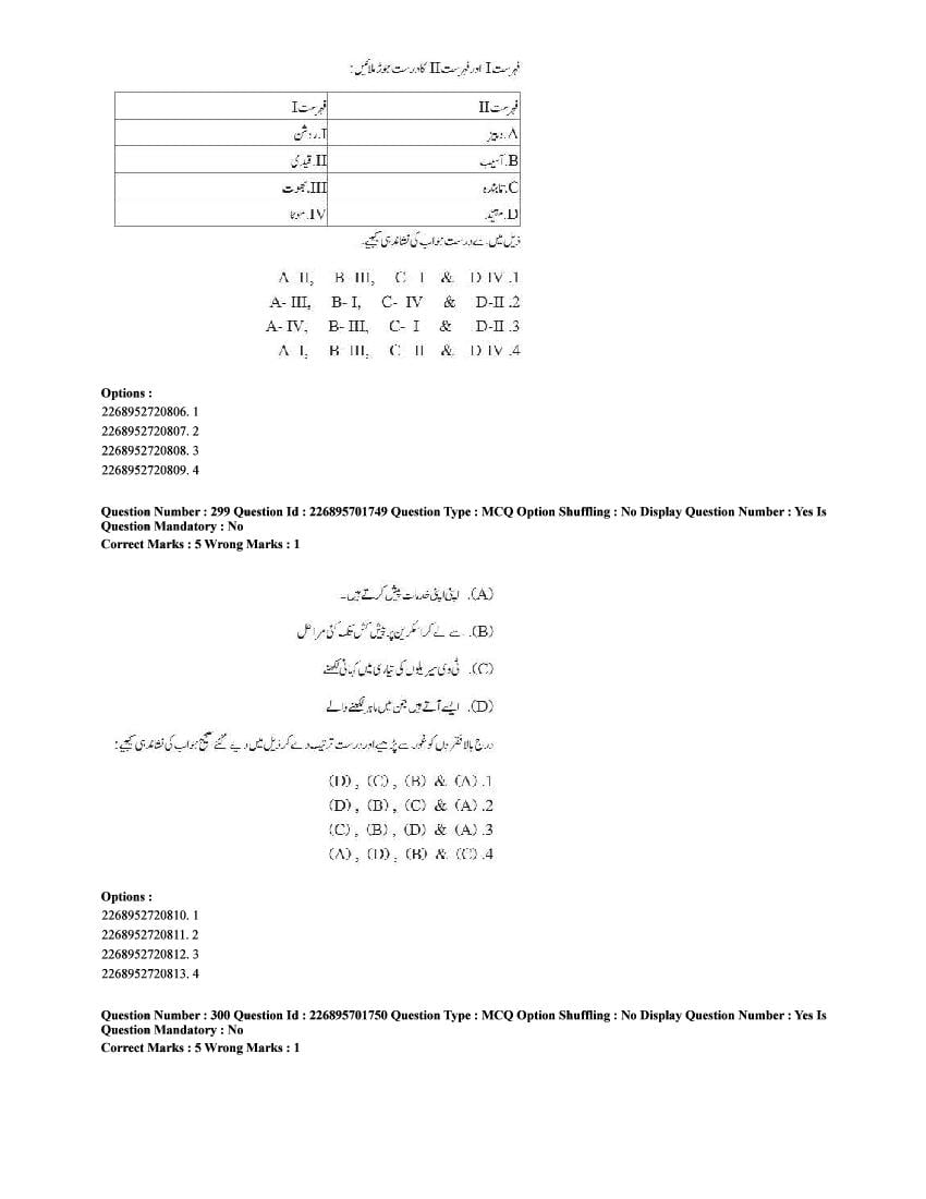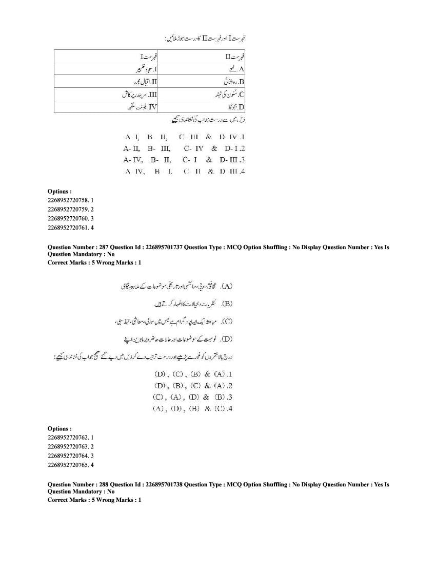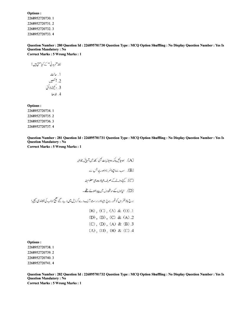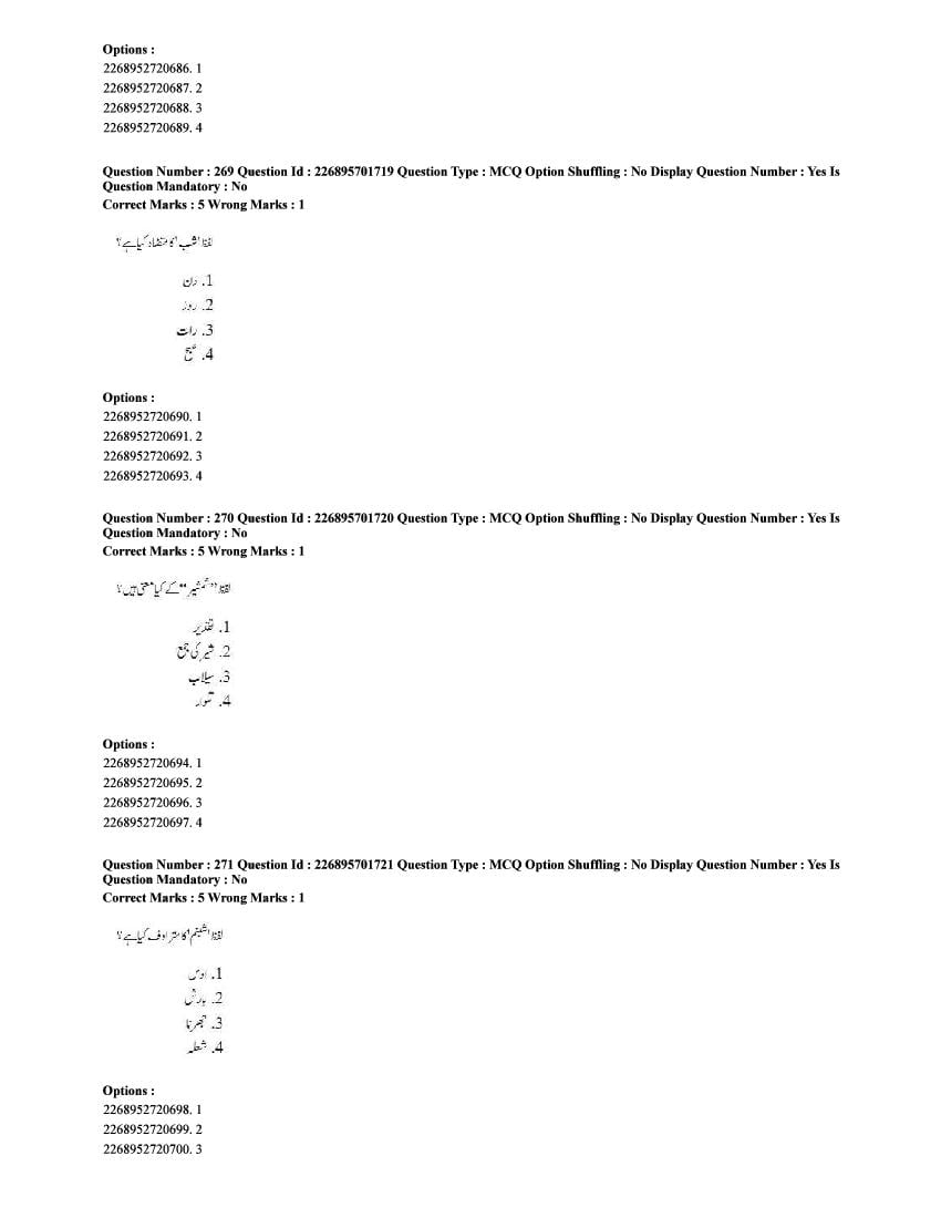 The CUET question paper of Urdu subject held in 2025 and previous years are as follows.