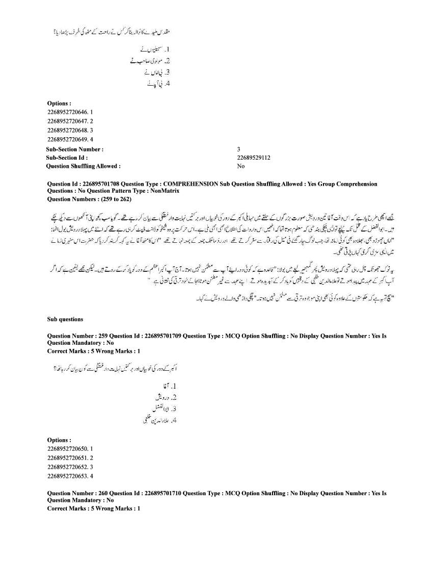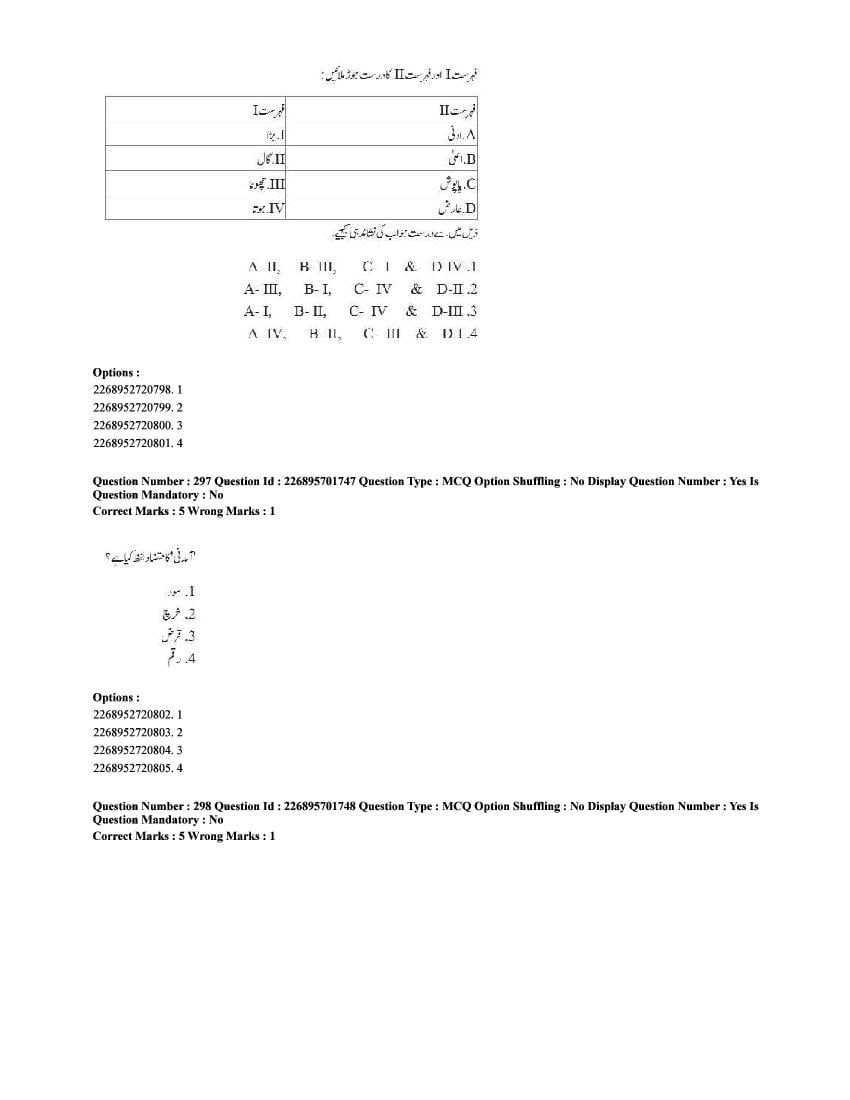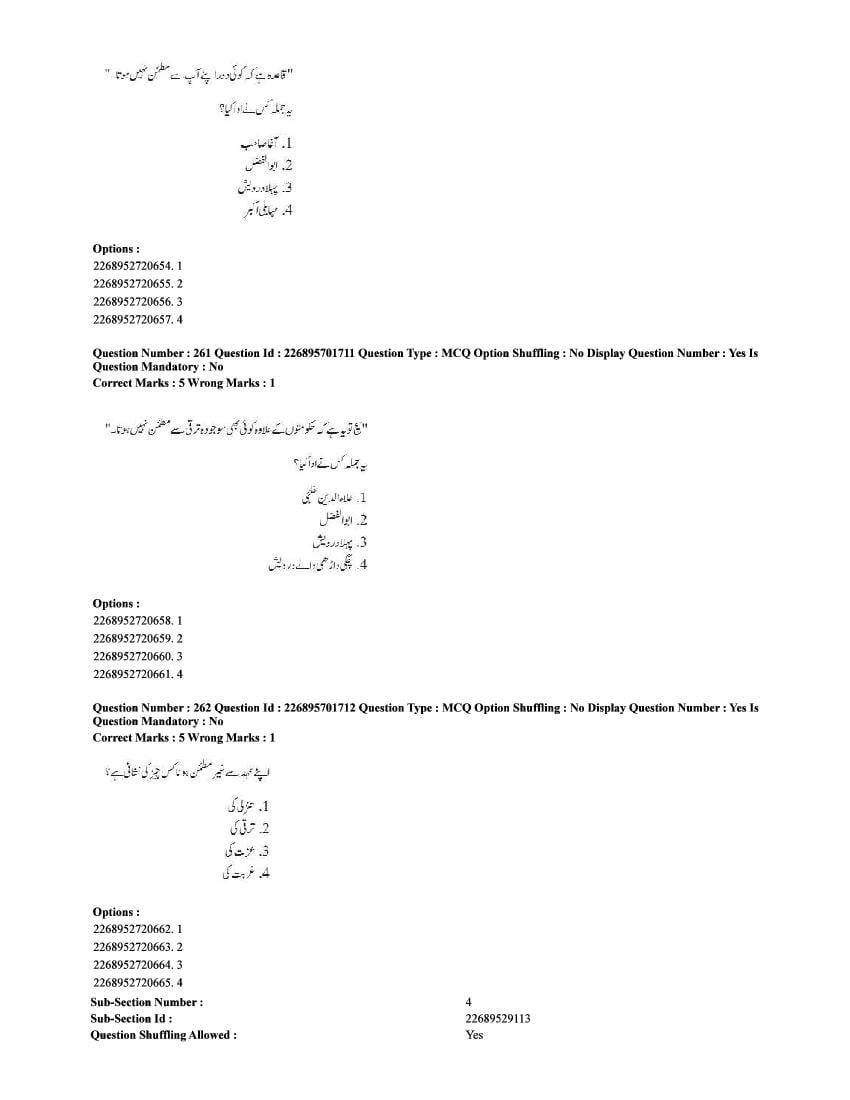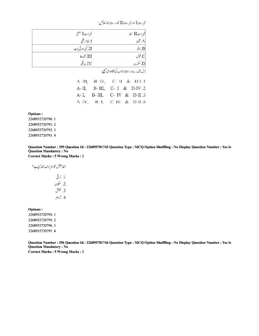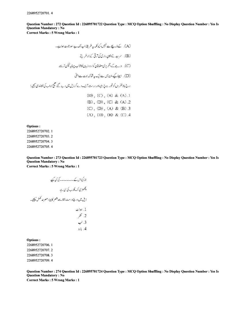 The CUET question paper of Urdu subject held in 2025 and previous years are as follows.