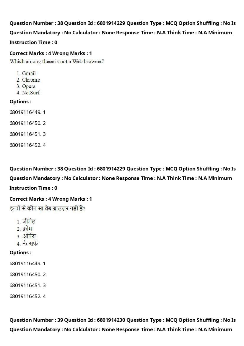 The question paper of CUET PG 2024 is as follows. Common University Entrance Test for Post Graduate (CUET PG) is the National level Common entrance exam for admission to MA, M.Sc, M.Tech, M.Sc B.Ed, Acharya, MPA, M.Des, MFA, MPH, MCA, MP.Ed, MBA, PG Diploma, LLB, B.Lib, BPEd, M.Voc, M.Lib, LLM, M.Ed, B.Ed, M.Lib.ISc, in Central, State, Deemed, Private Universities accepting CUET PG scores.