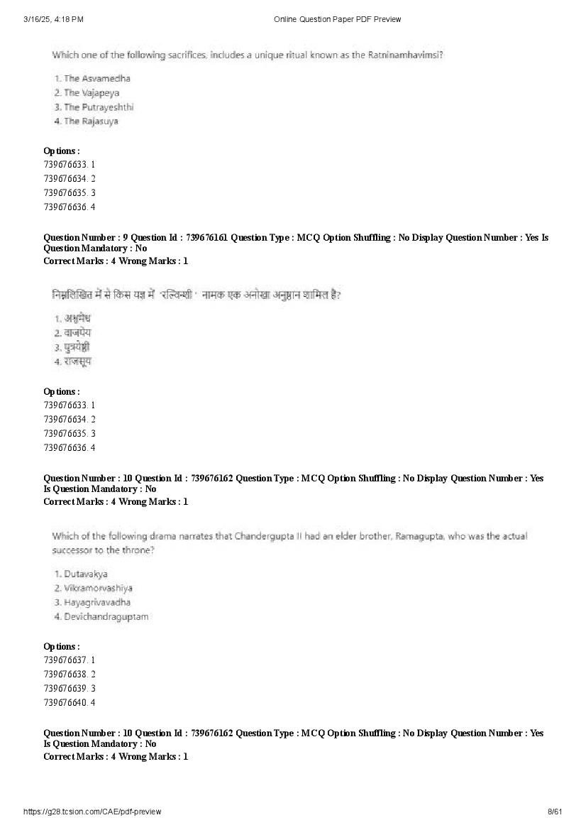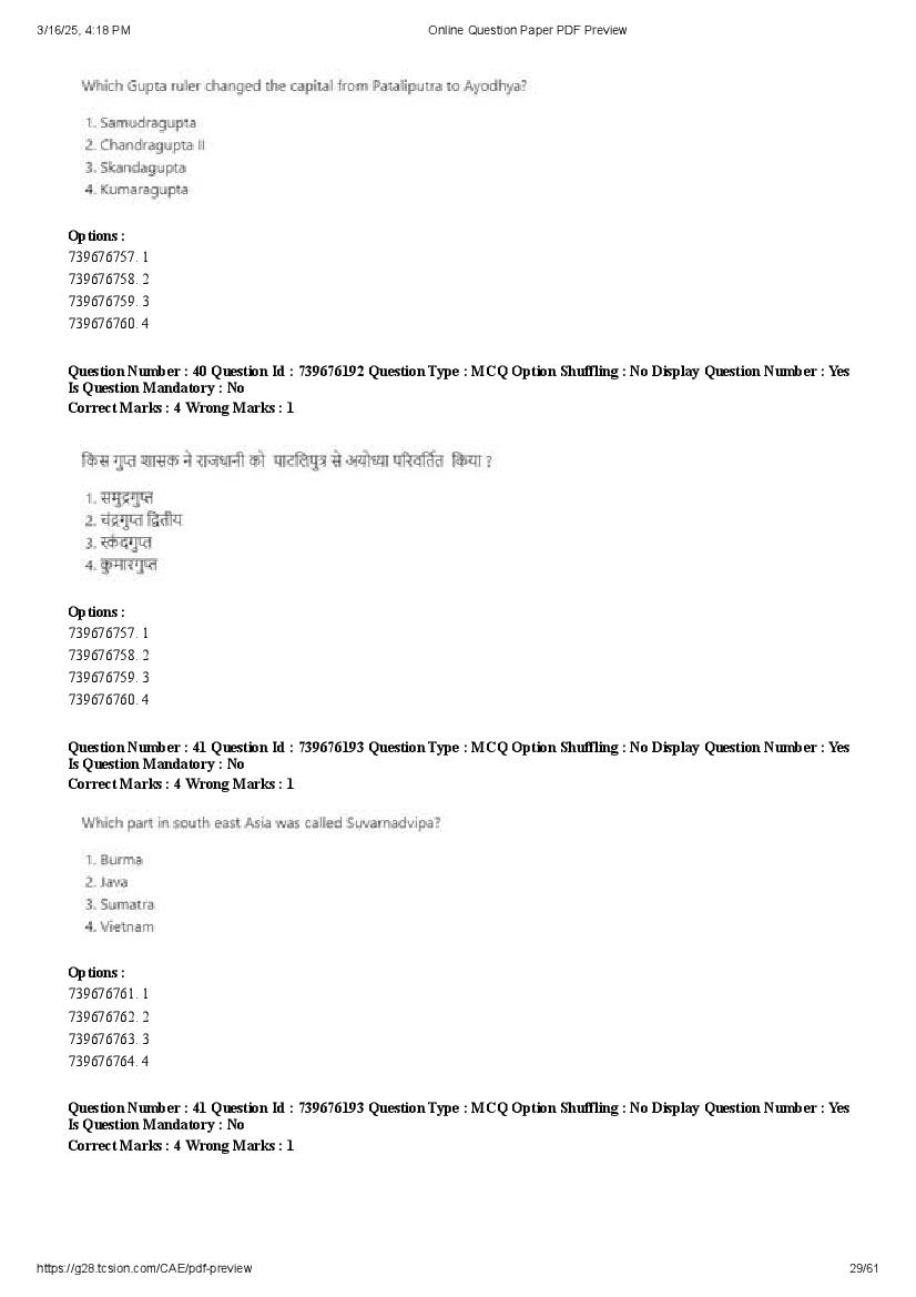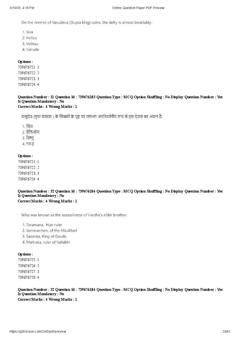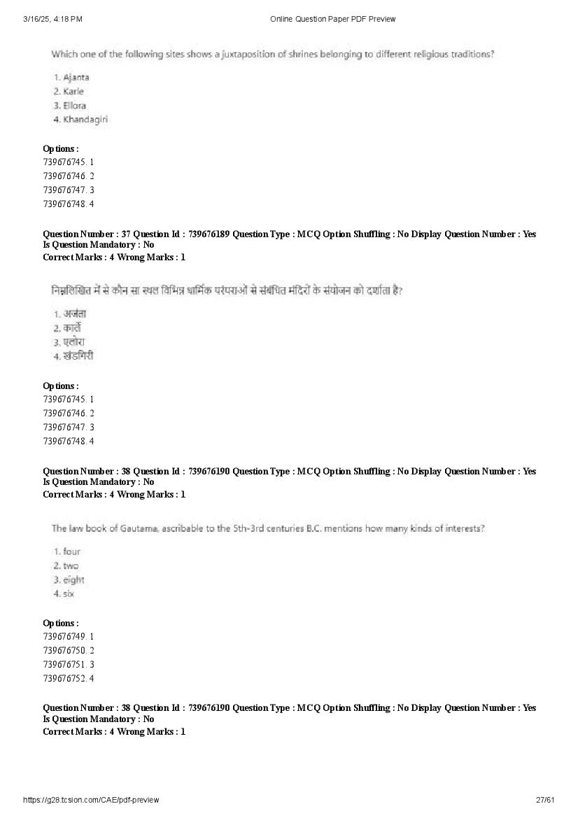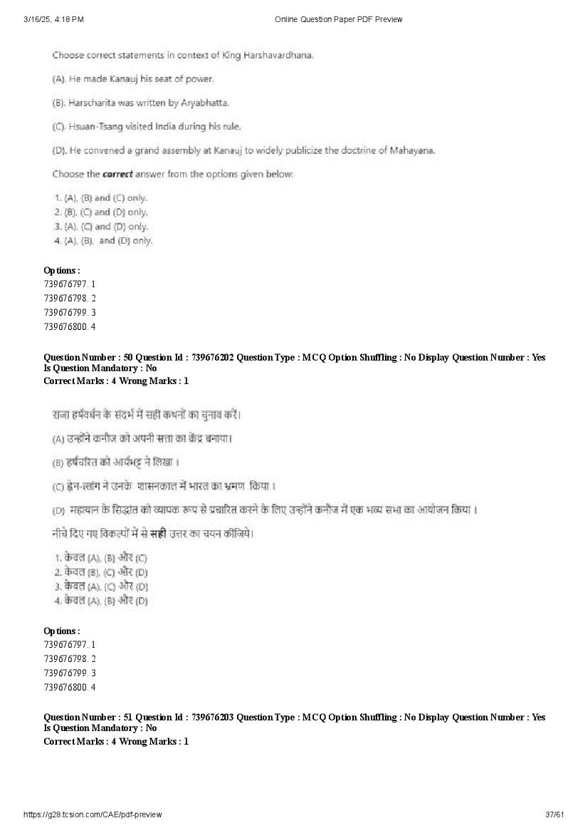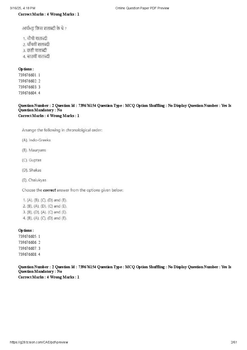 2026 Question papers will be updated soon. The latest available complete cuet pg question paper for Ancient Indian History is given below.